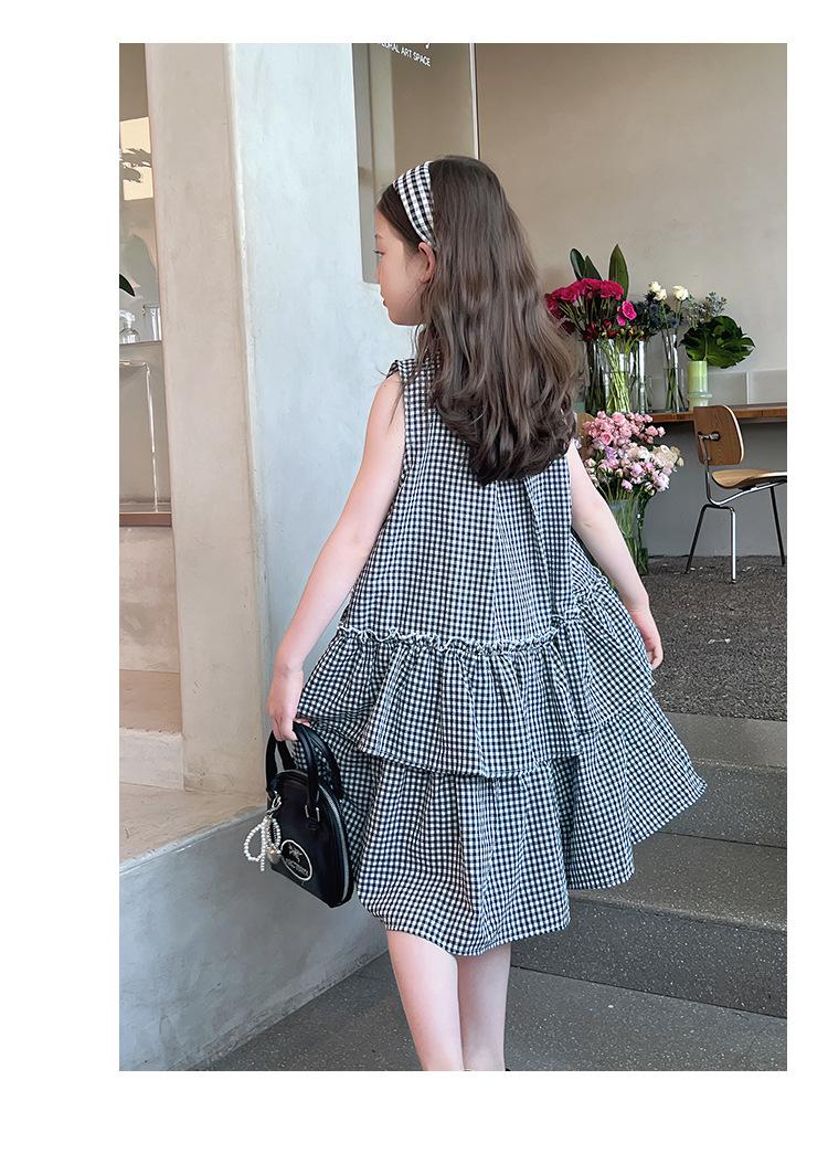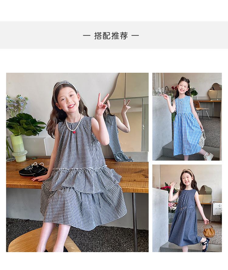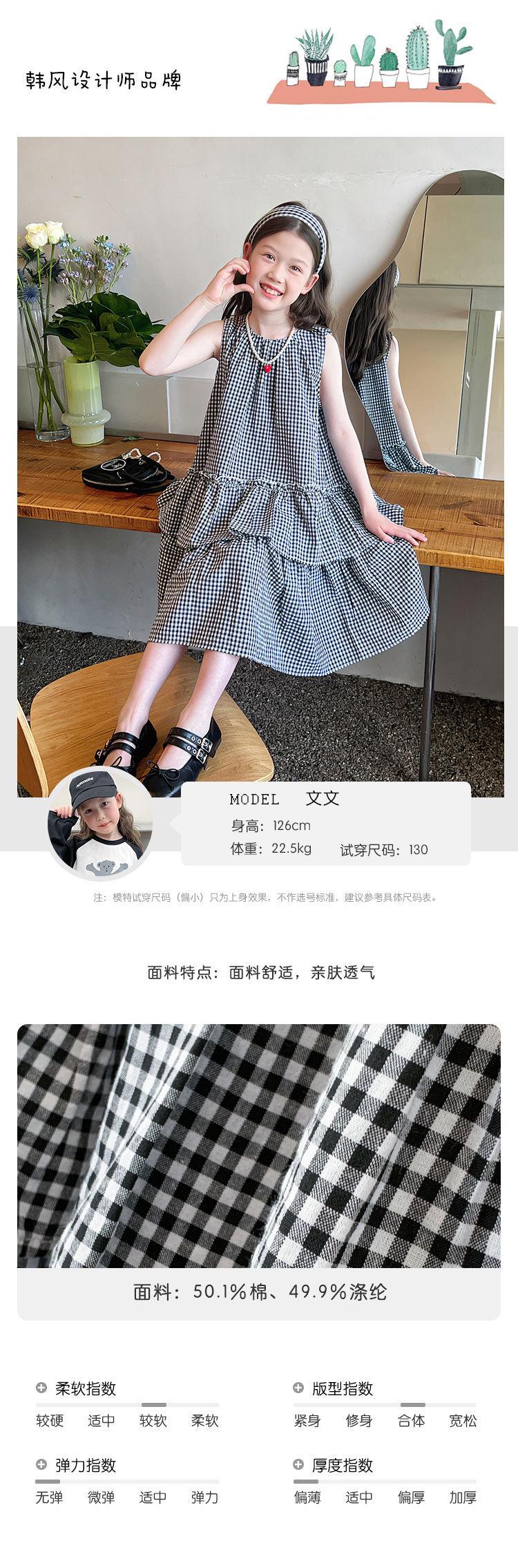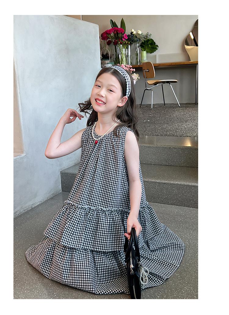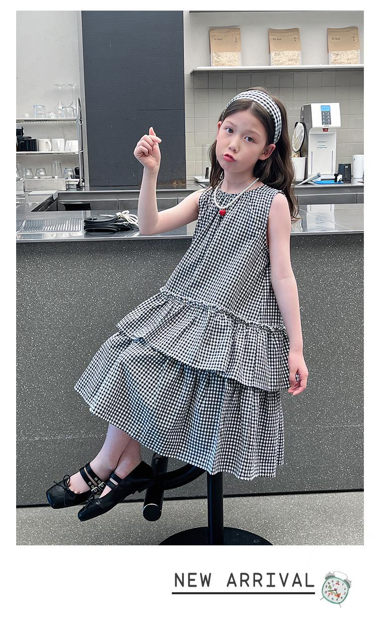 Ropa para Niños Grandes Vestido de Princesa a Cuadros Chaleco de Moda para Niñas Falda Larga sin Mangas para Niños Estilo Nuevo de Verano 2025