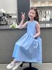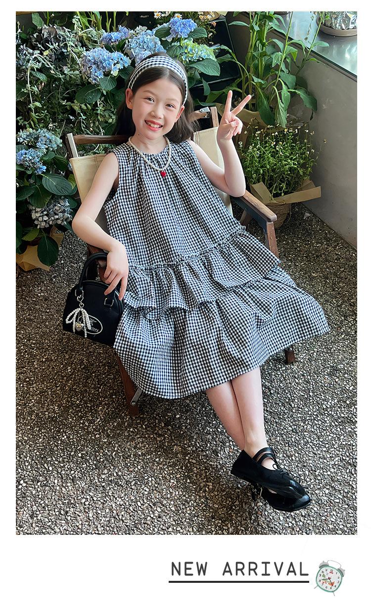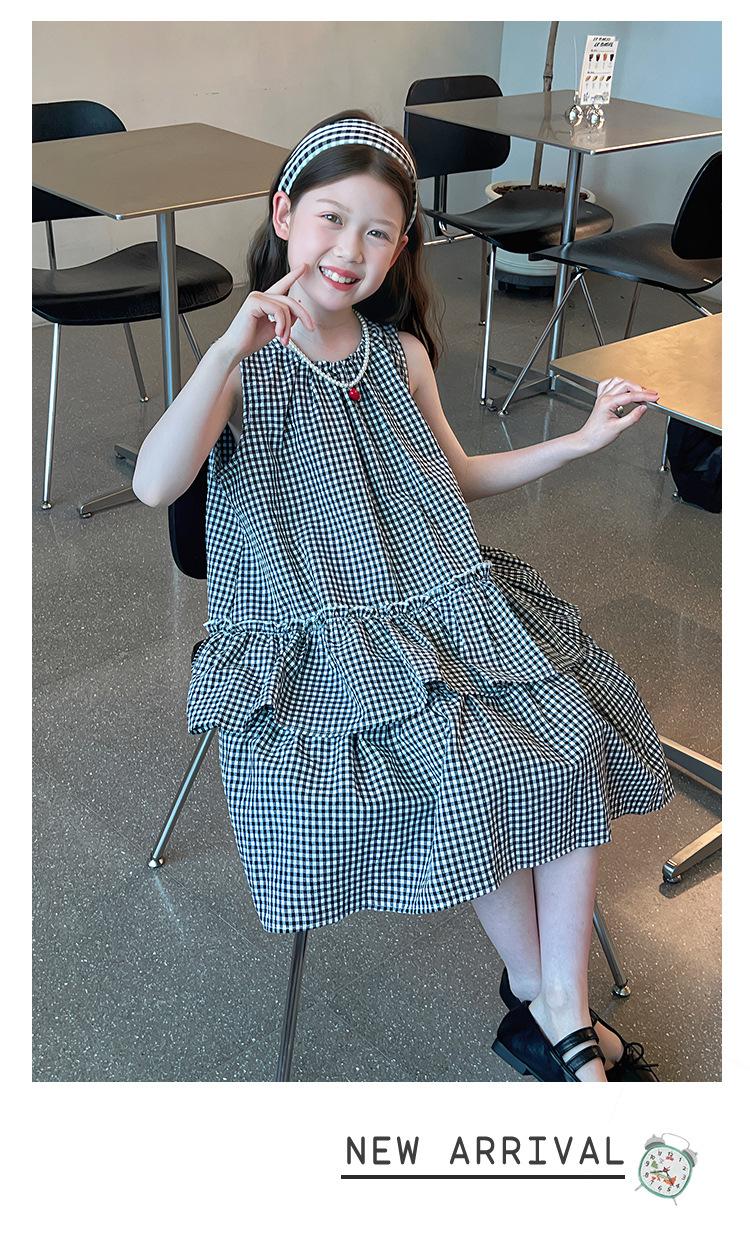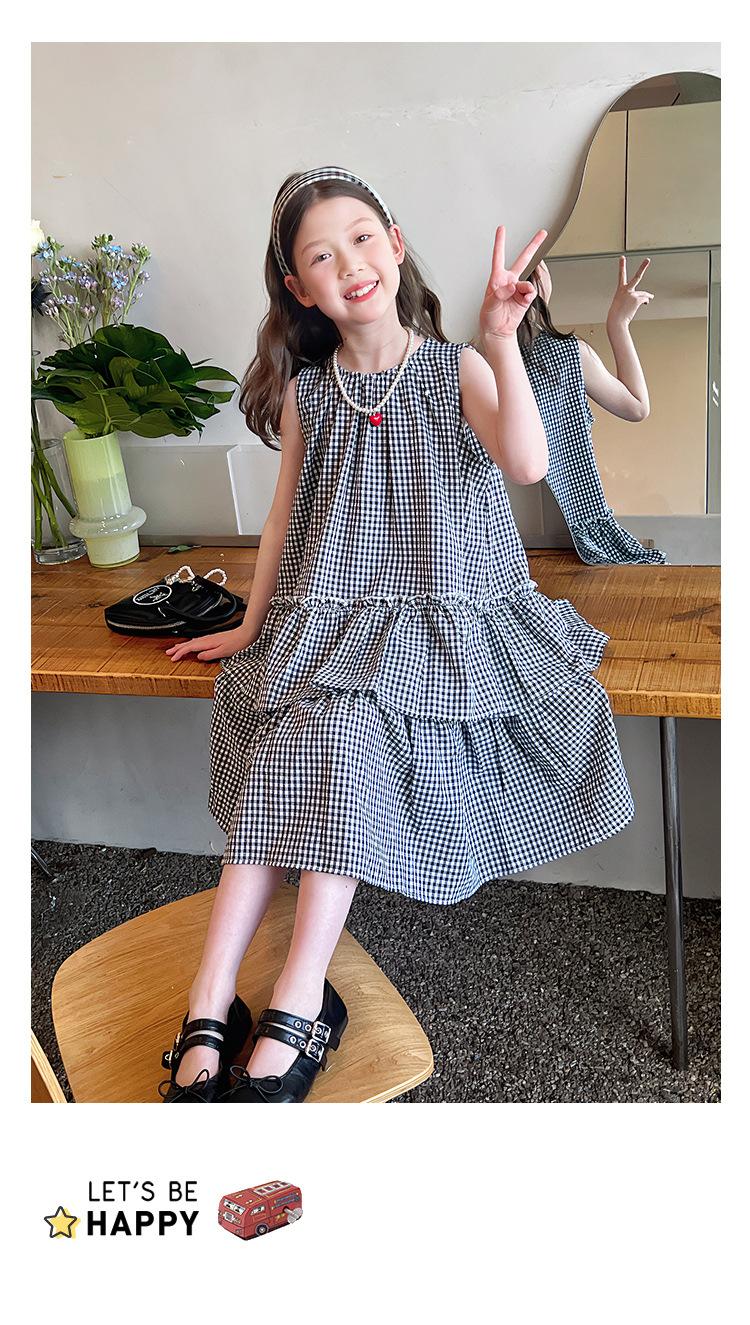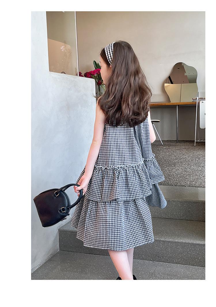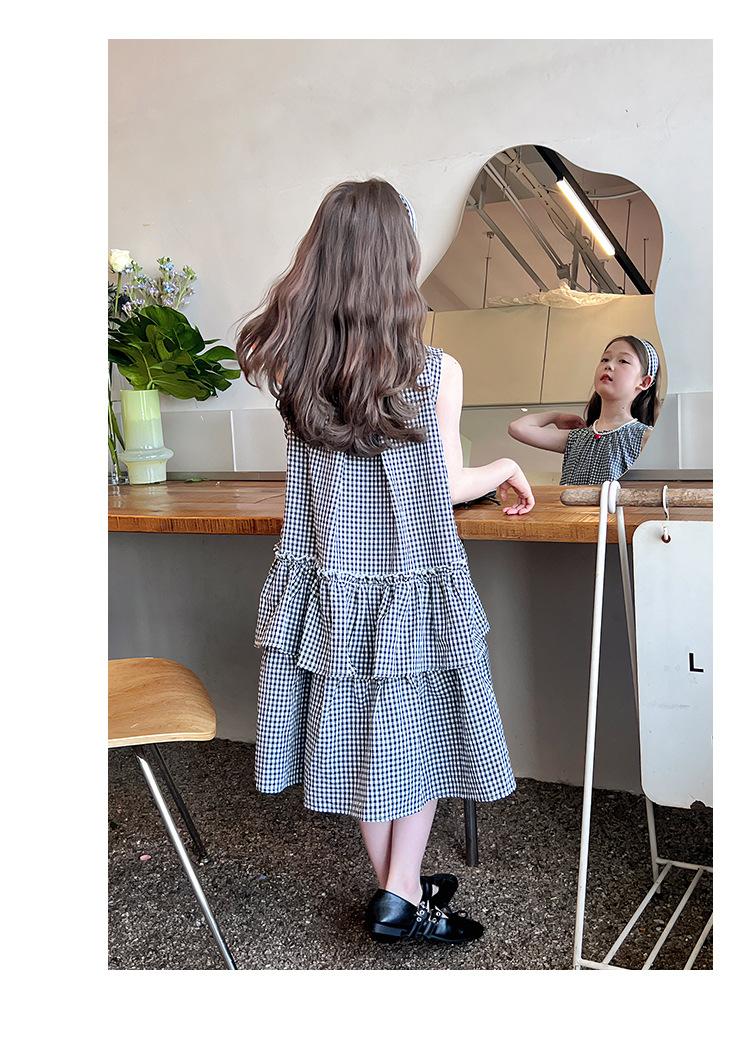 Ropa para Niños Grandes Vestido de Princesa a Cuadros Chaleco de Moda para Niñas Falda Larga sin Mangas para Niños Estilo Nuevo de Verano 2025