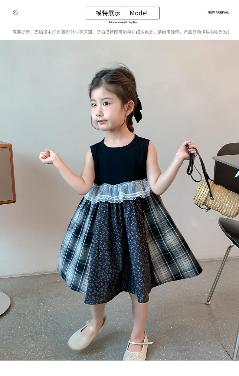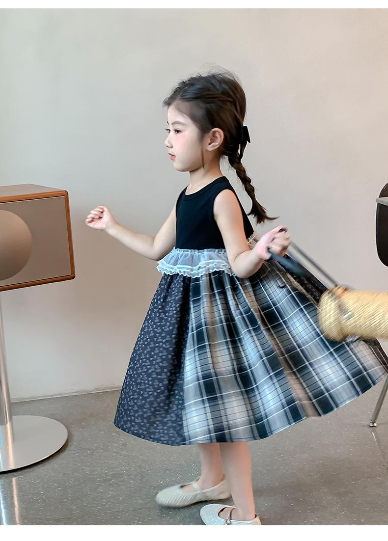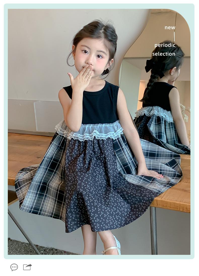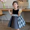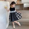 Vestido de Niña Verano 2025 Nuevo Estilo Camisola de Bebé Vestido de Princesa Falda de Cuadros de Verano para Niños