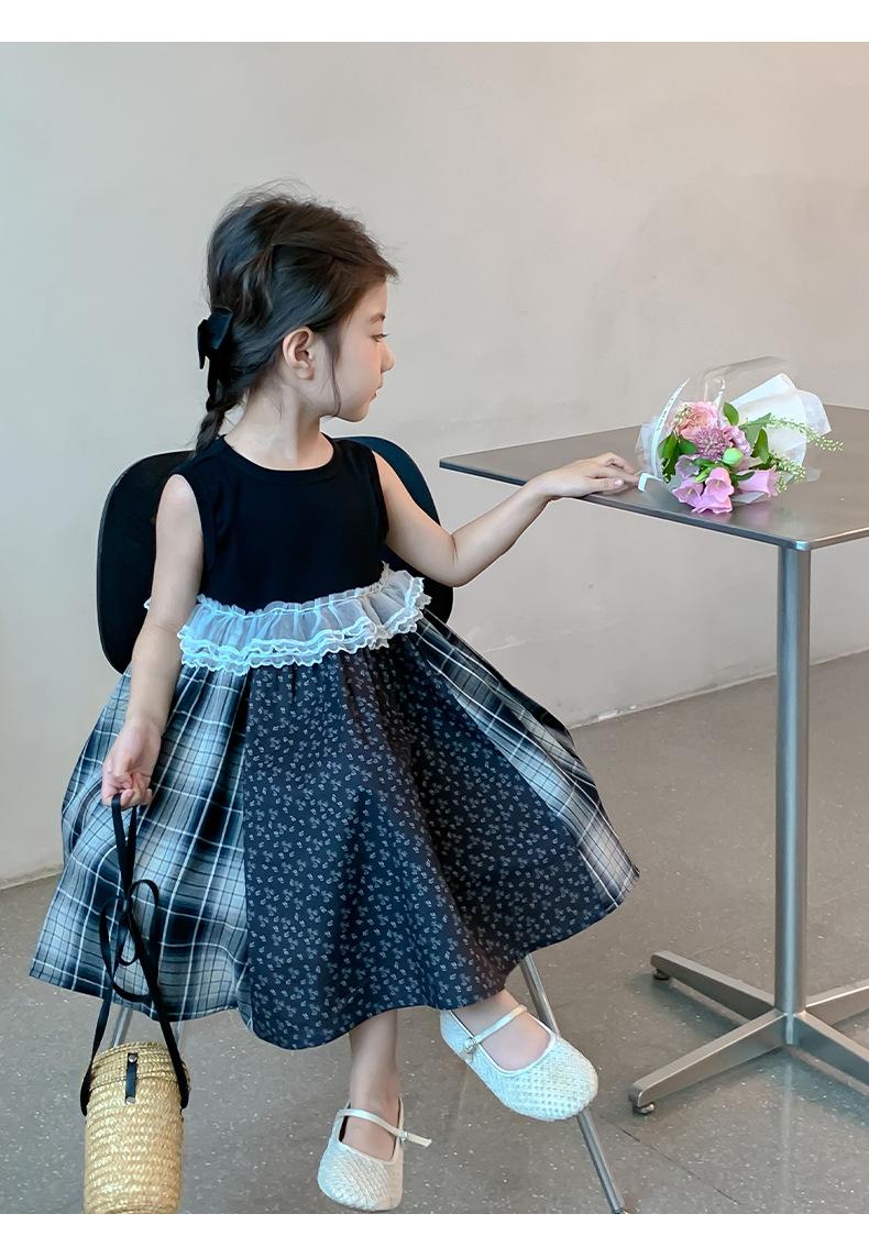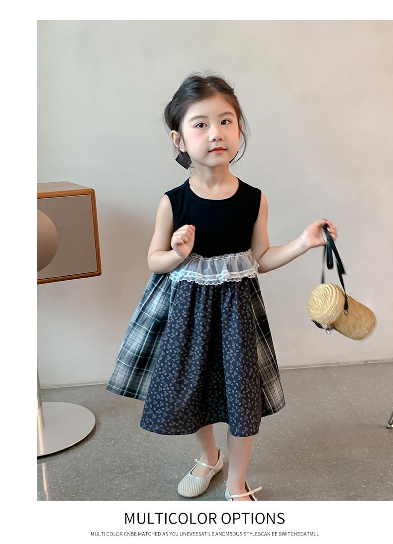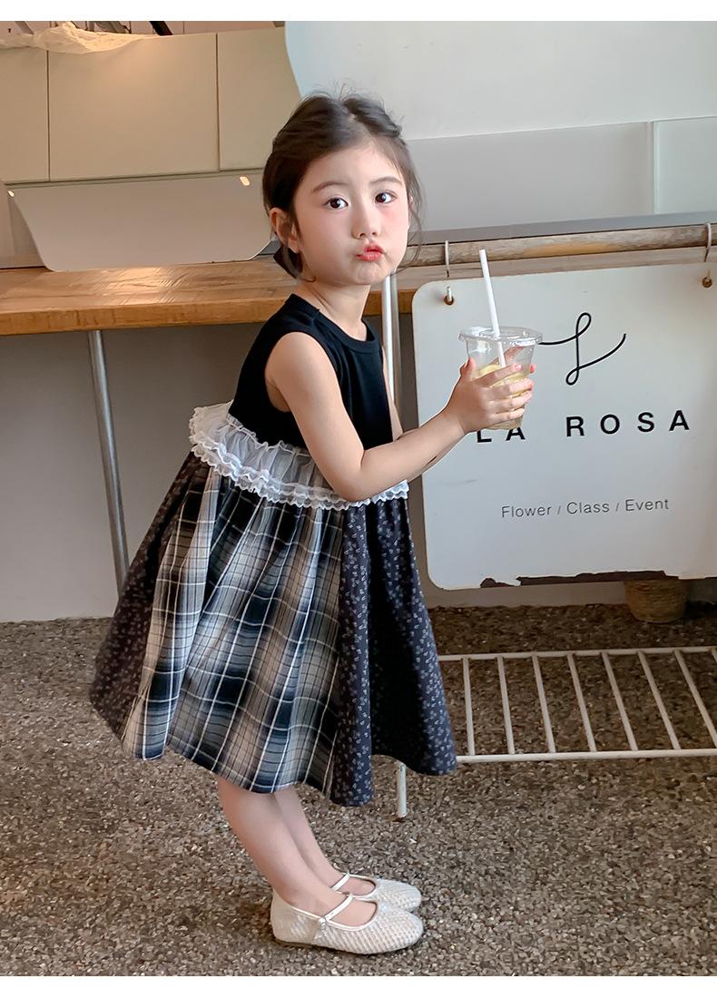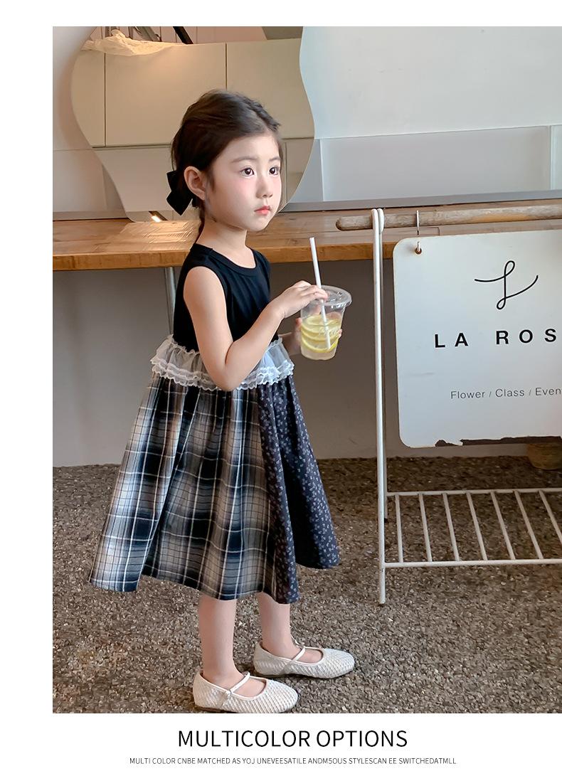 Vestido de Niña Verano 2025 Nuevo Estilo Camisola de Bebé Vestido de Princesa Falda de Cuadros de Verano para Niños