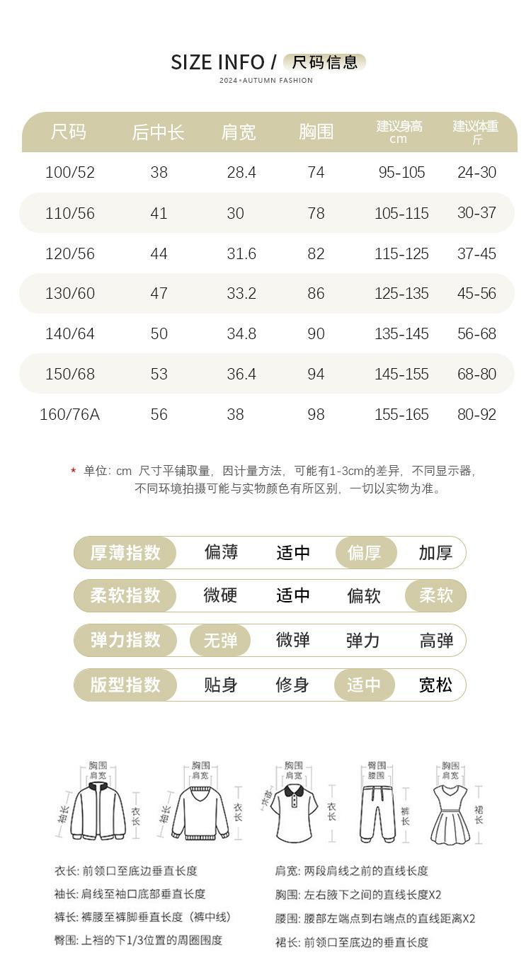Size 100, height about 100cm, Size 110, height about 110cm, Size 120, height about 120cm, Size 130, height abo...