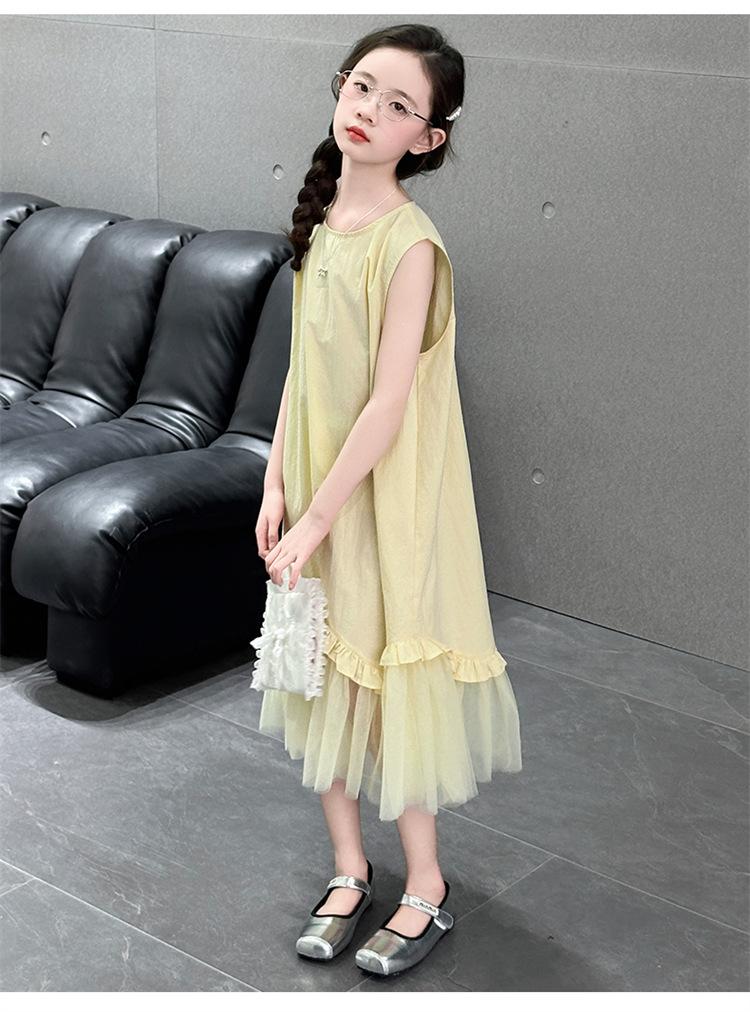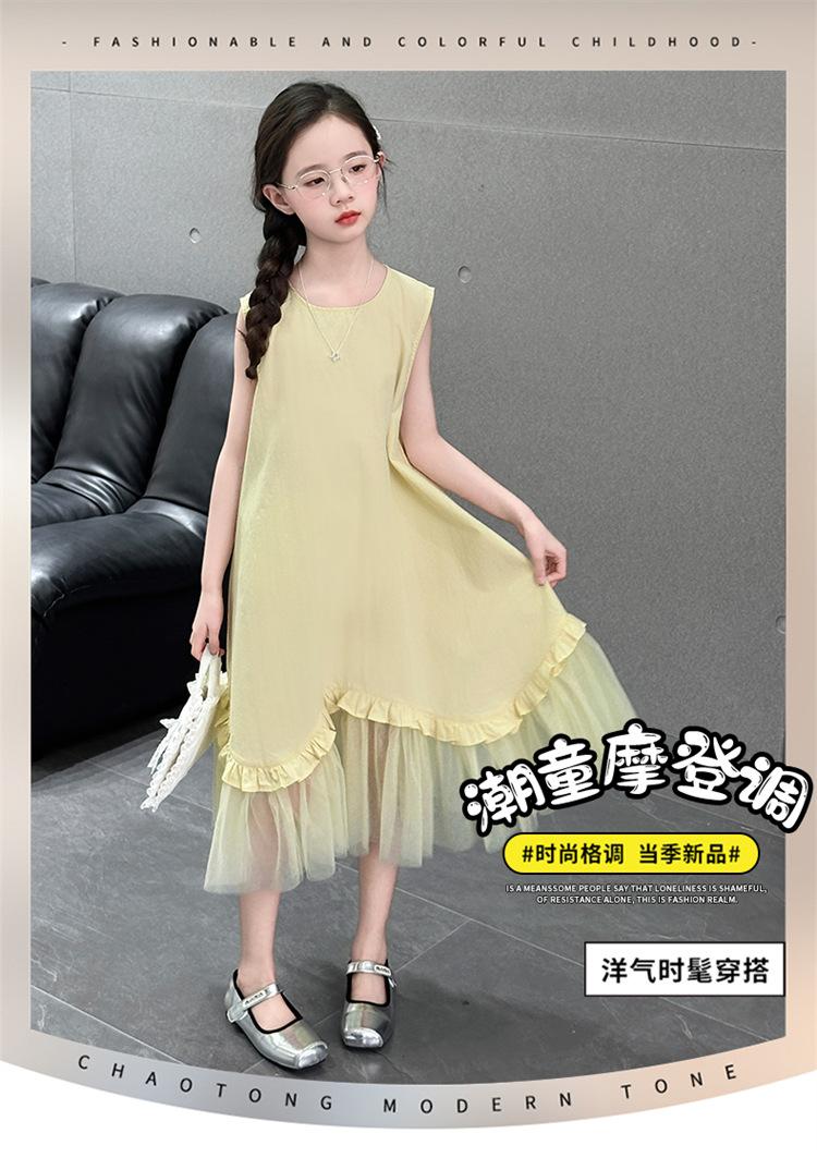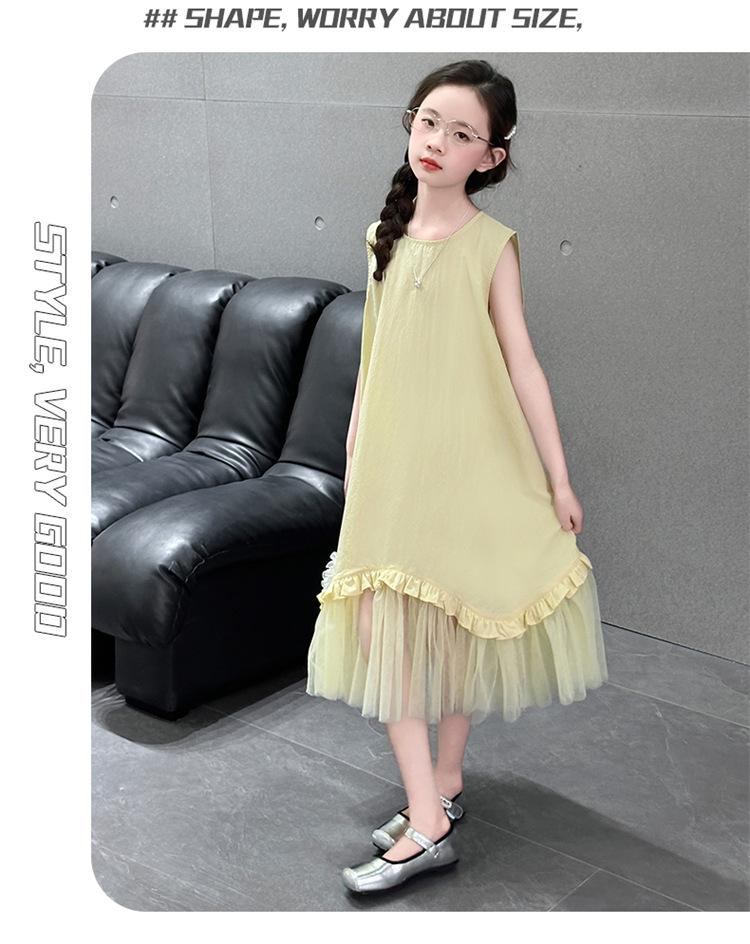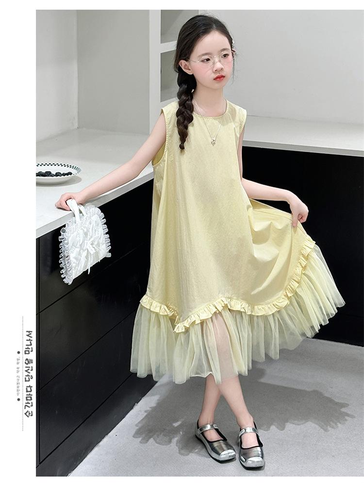 Vestido sin mangas para niñas 2025 Nuevo Vestido de Chaleco de Verano para Niñas Falda de Verano para Niños Falda de Algodón de Princesa