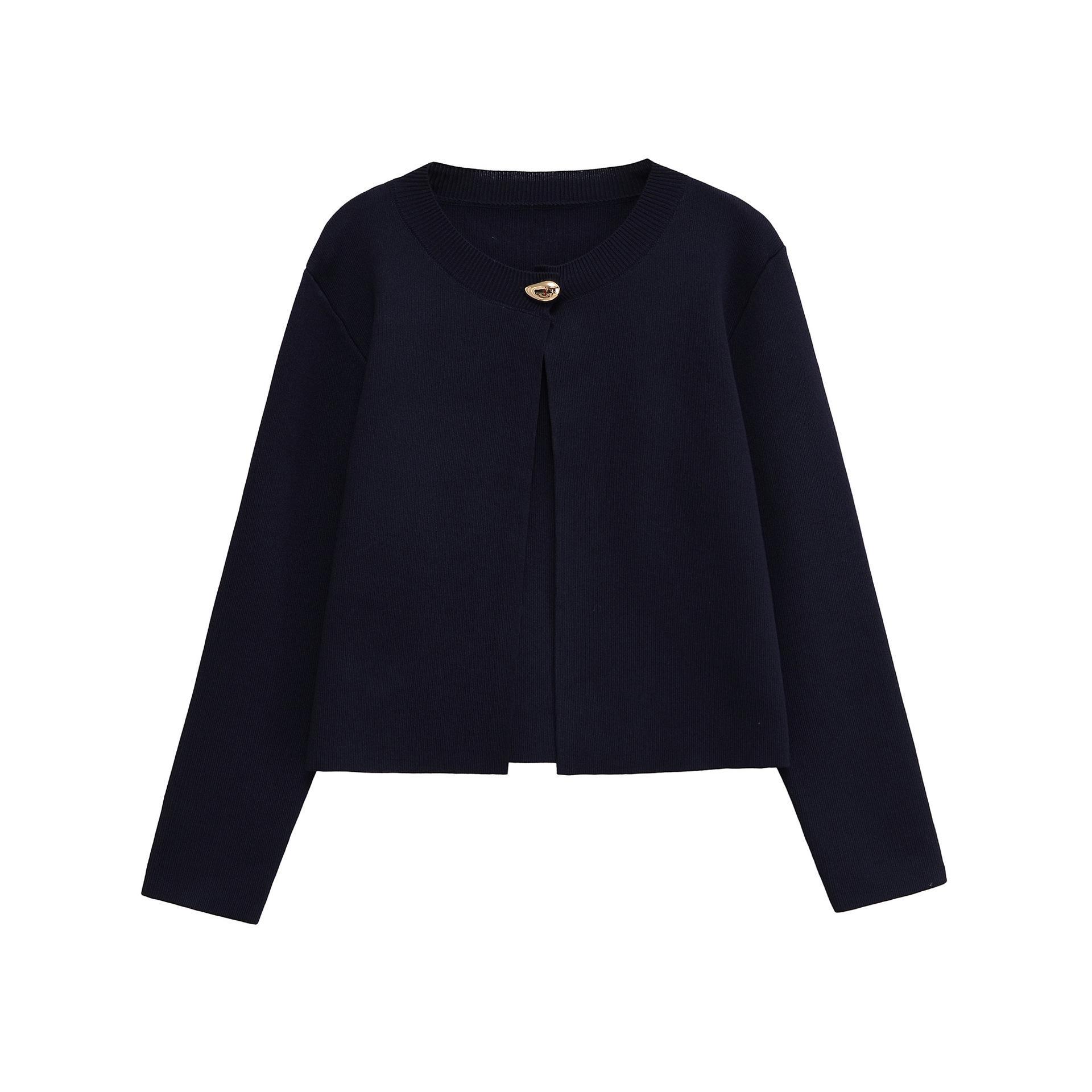 Pb&Za Principios de Otoño Nuevo Estilo Commuter Un Botón Cuello Redondo Manga Larga Cárdigan de Punto Chaqueta Suéter Versátil 6427013