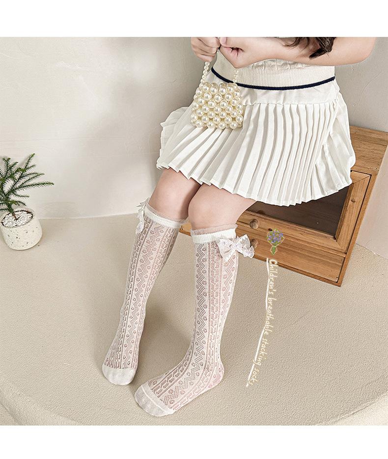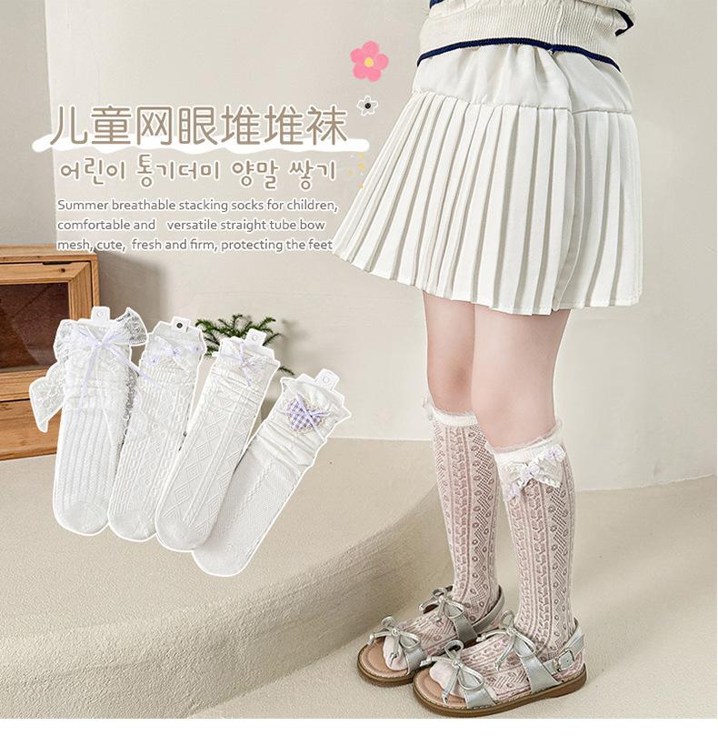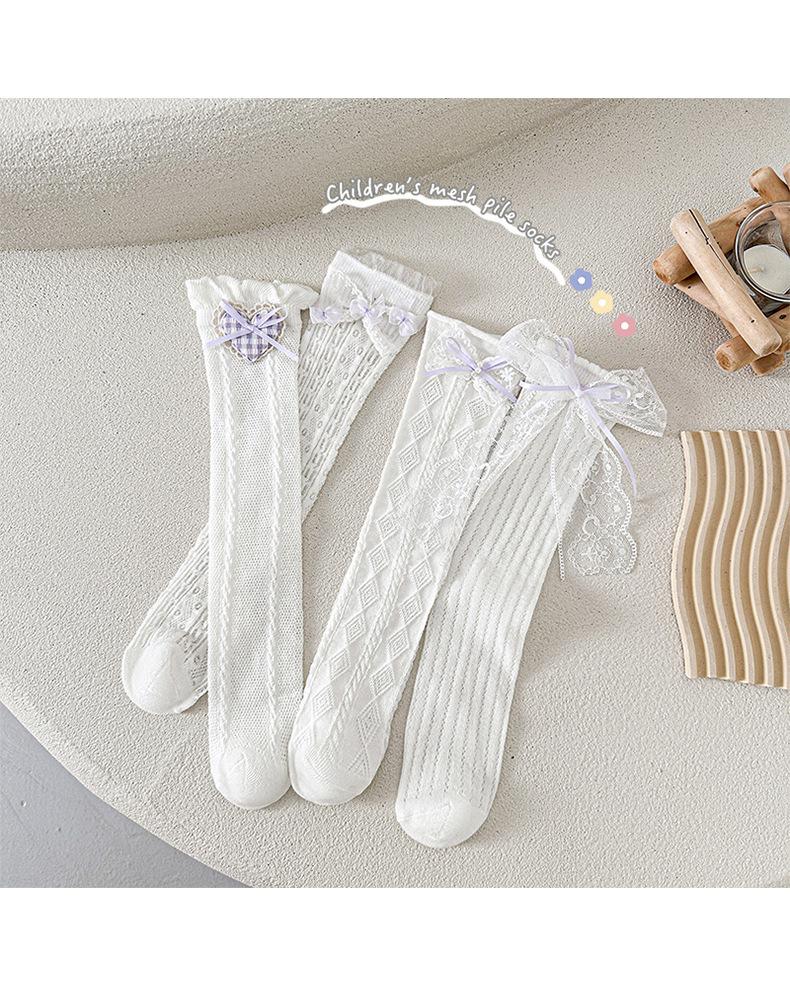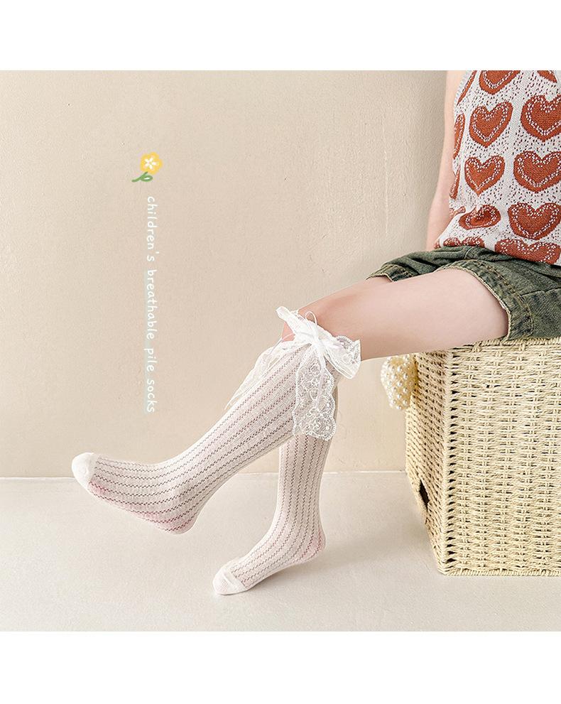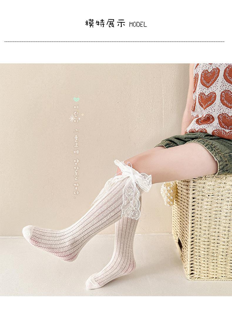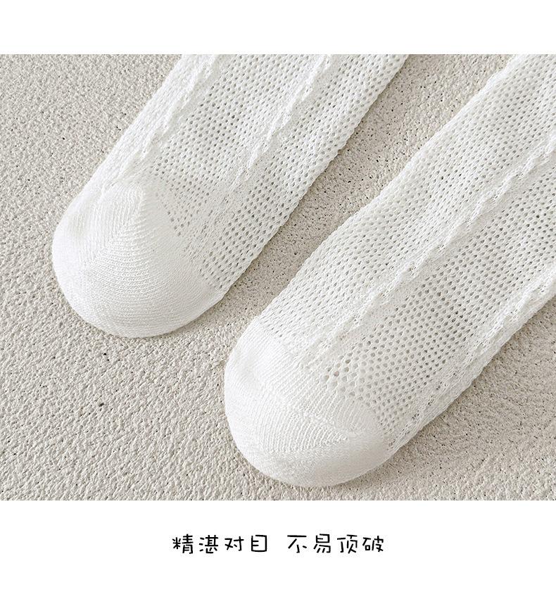 Calcetines blancos de media caña con lazo para mujer, ribete de encaje, calcetines holgados de malla calada de algodón fino de verano