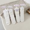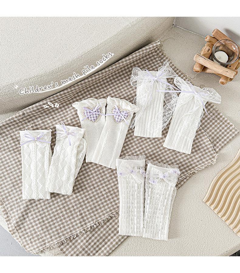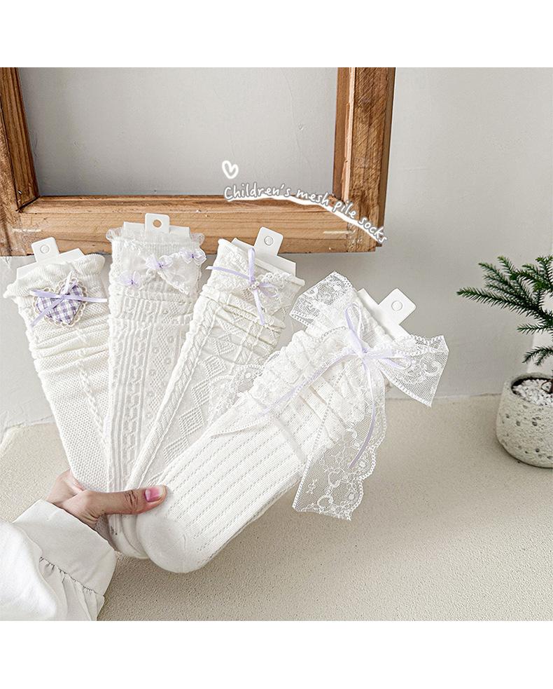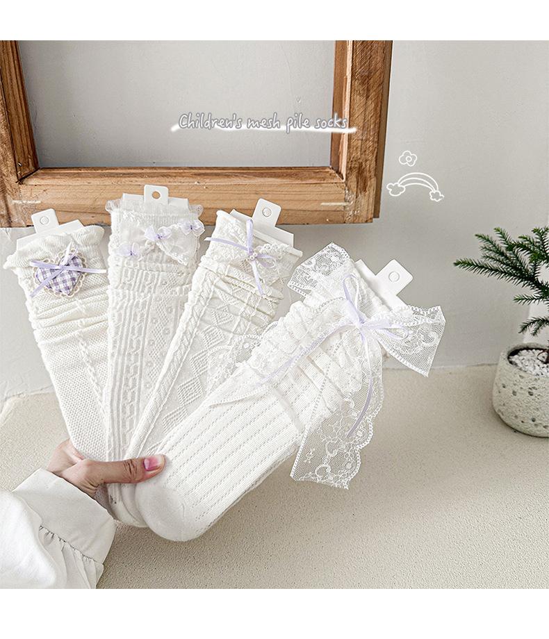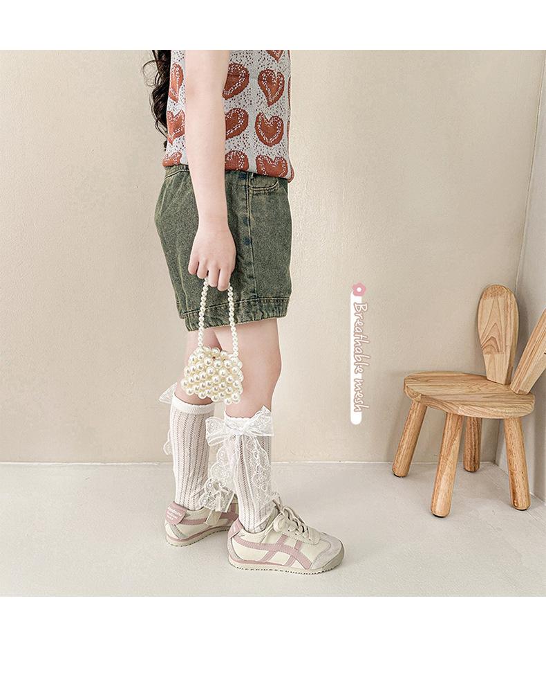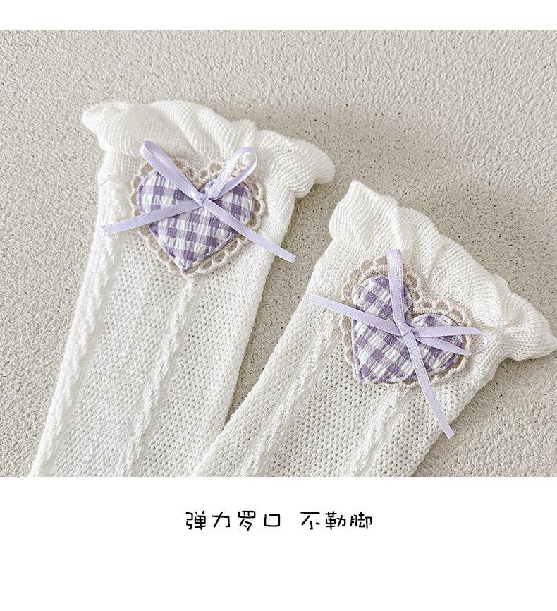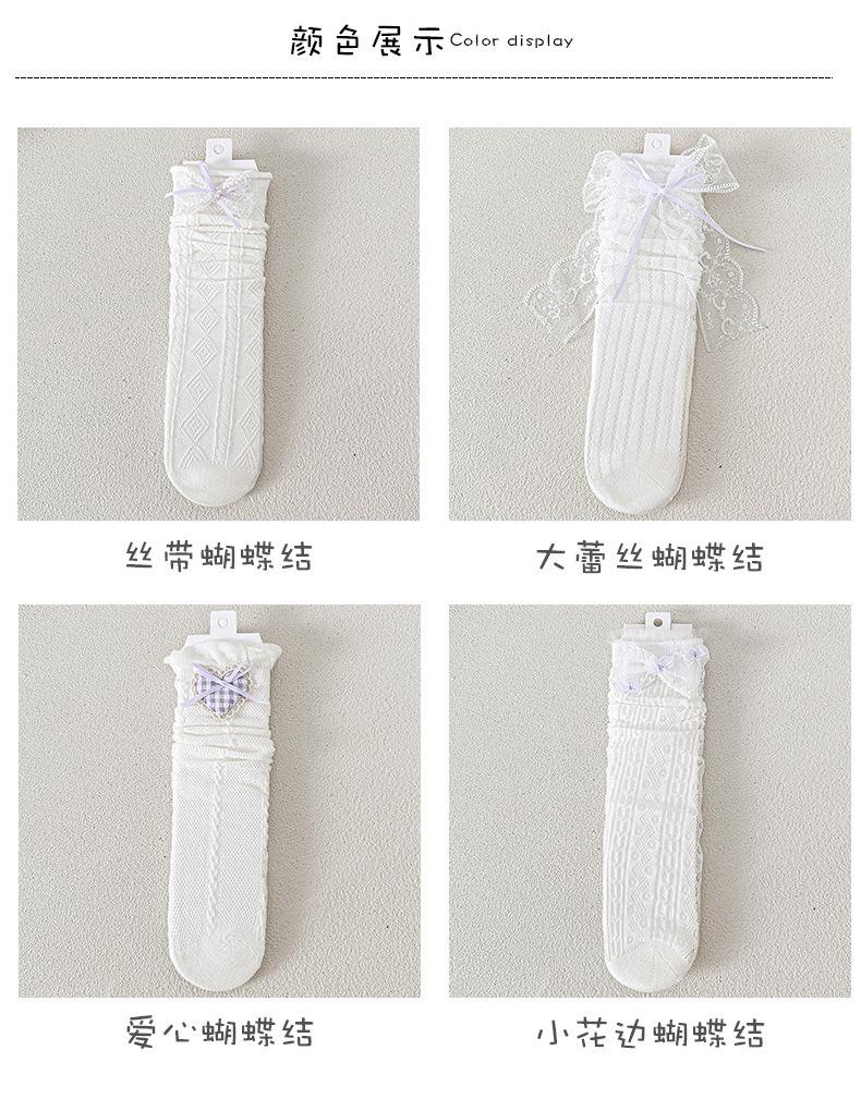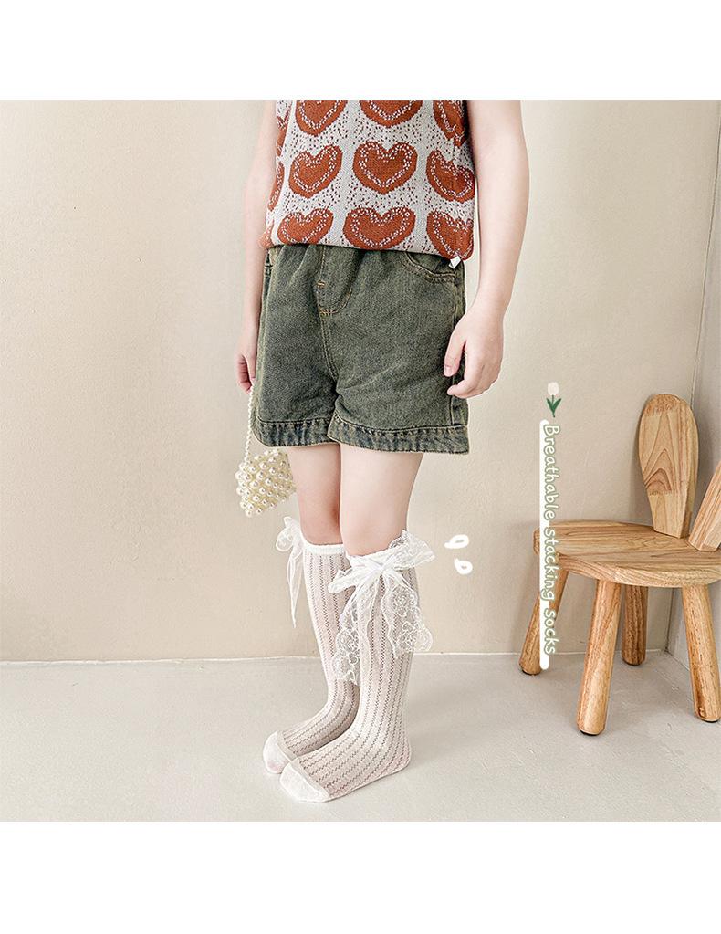Calcetines blancos de media caña con lazo para mujer, ribete de encaje, calcetines holgados de malla calada de algodón fino de verano