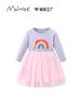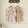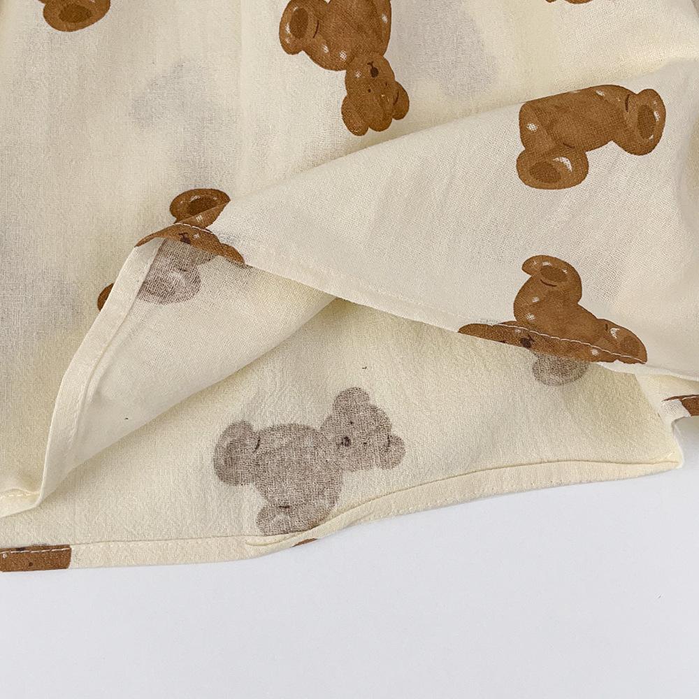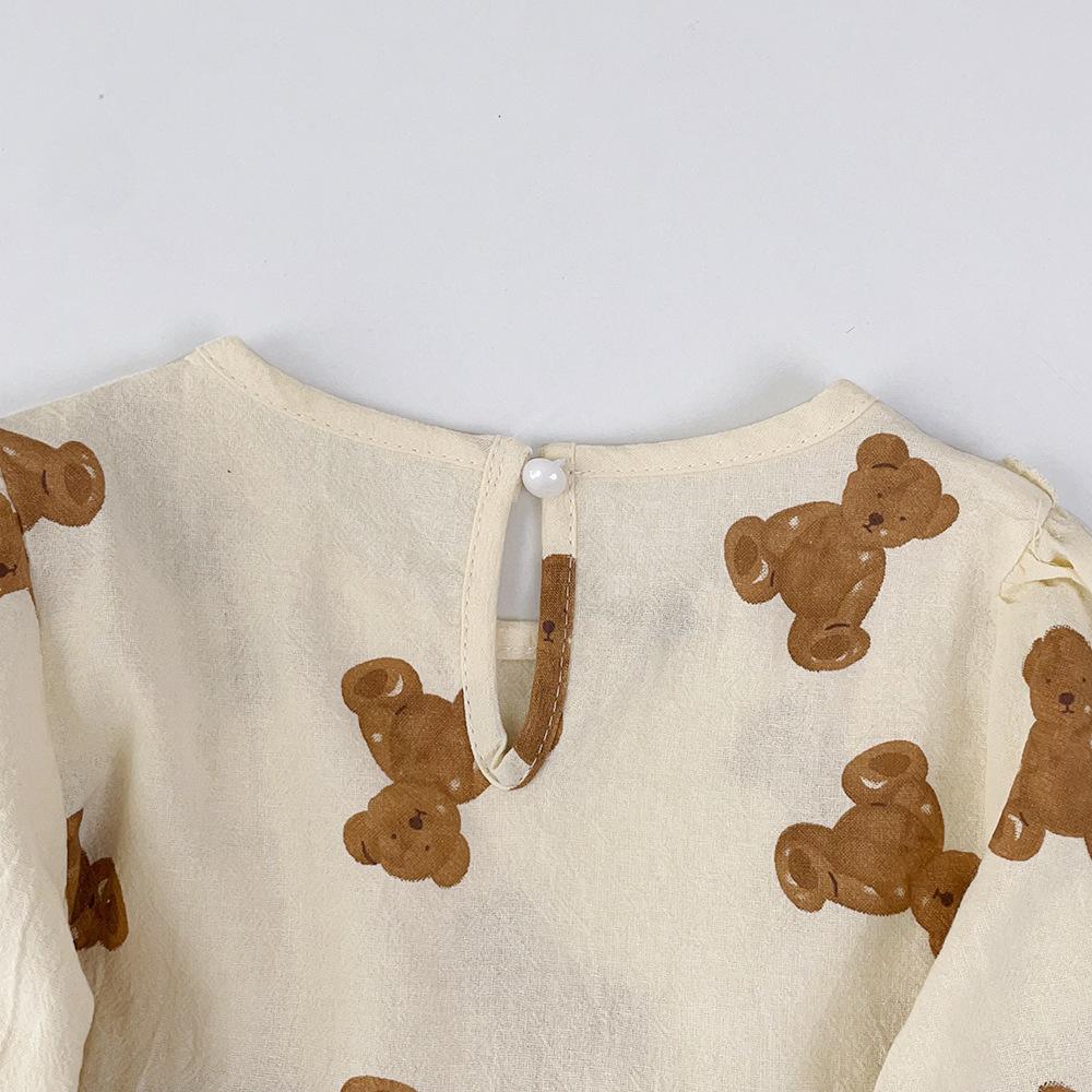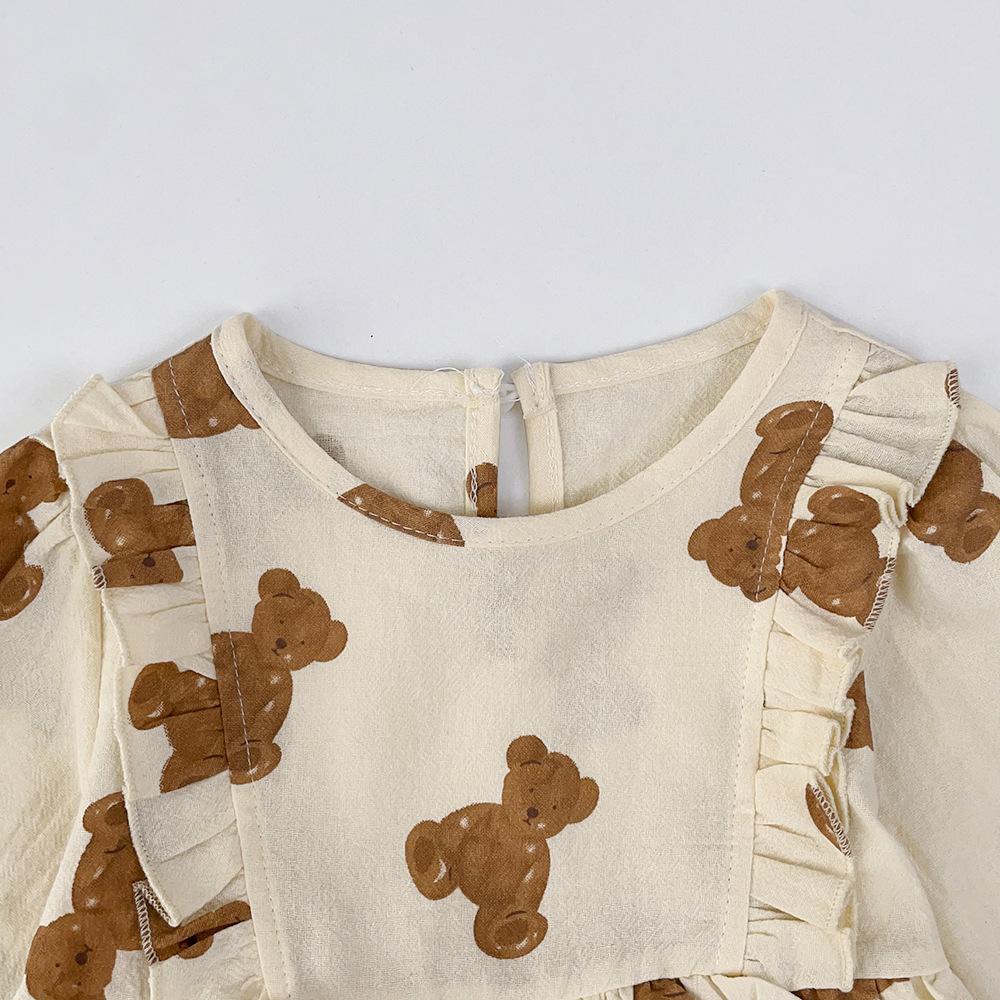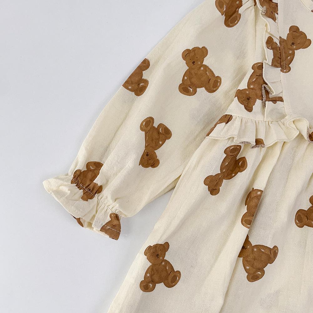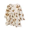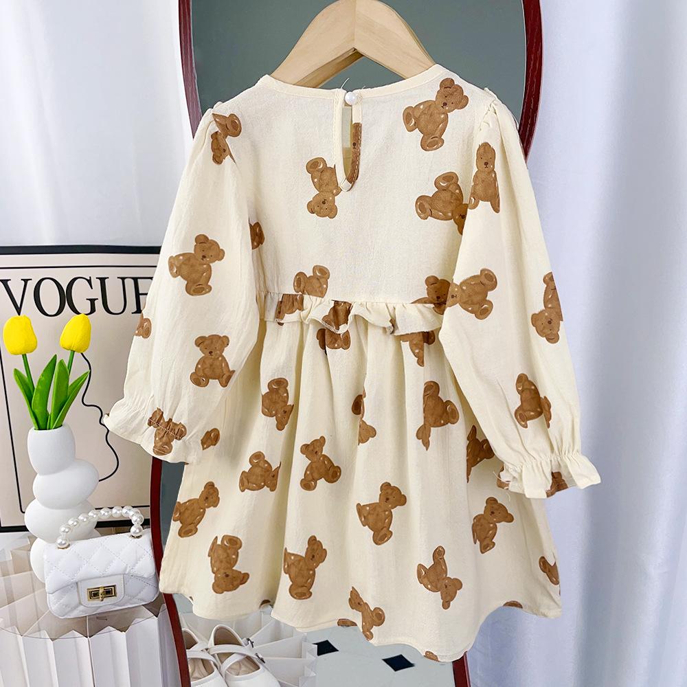 Ropa infantil estilo coreano vestido de niña de manga larga con estampado de oso otoño dulce con volantes cuello redondo vestido infantil comercio exterior