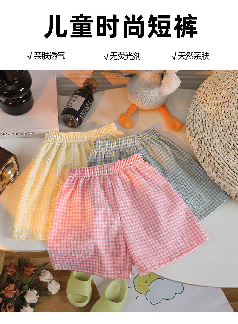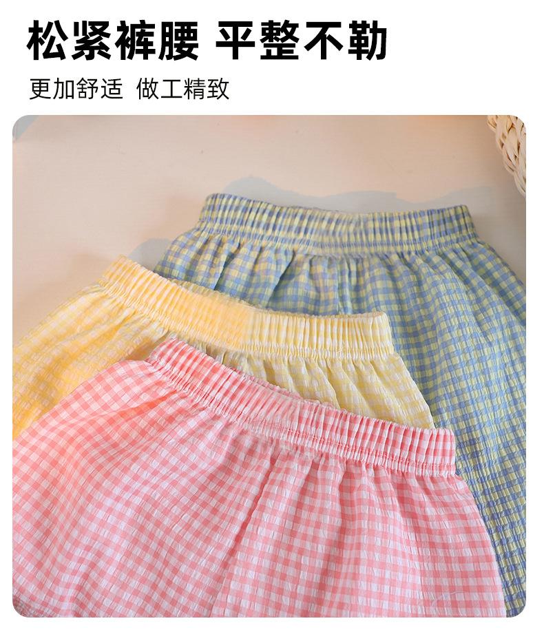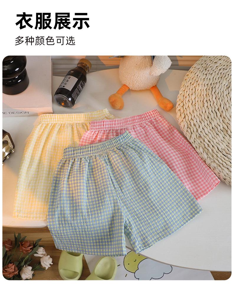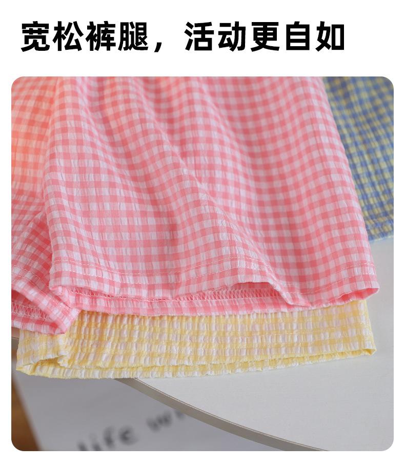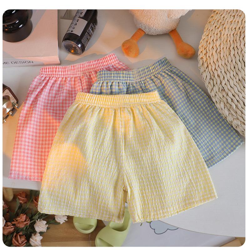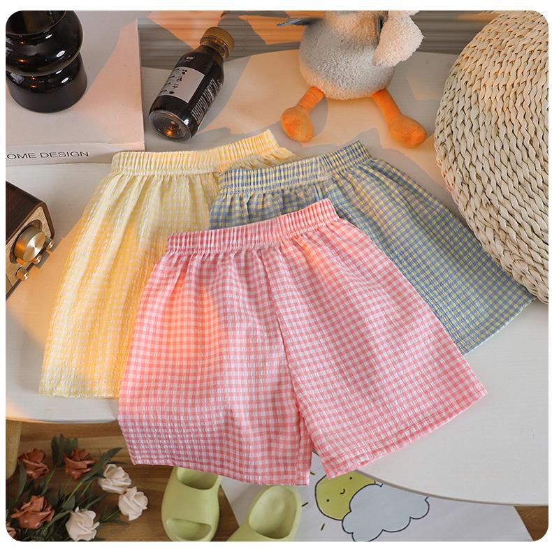 Pantalones cortos de verano para niños color caramelo a cuadros de pierna ancha pantalones casuales nuevos para niños y niñas pantalones sueltos con cintura holgada