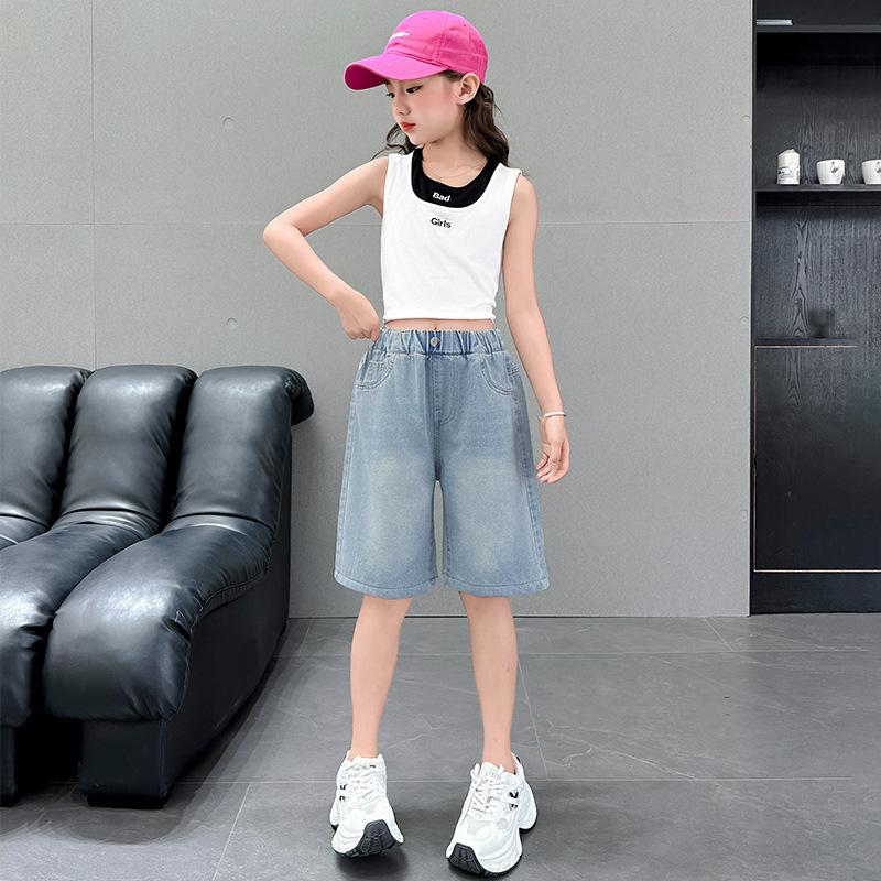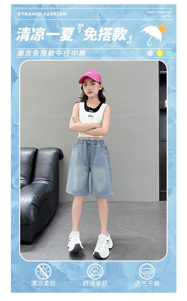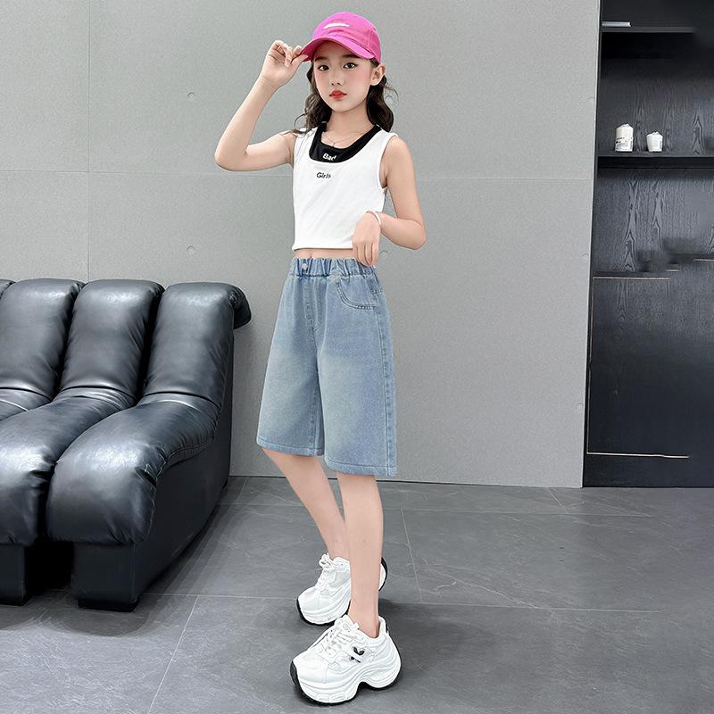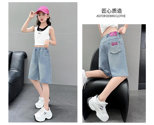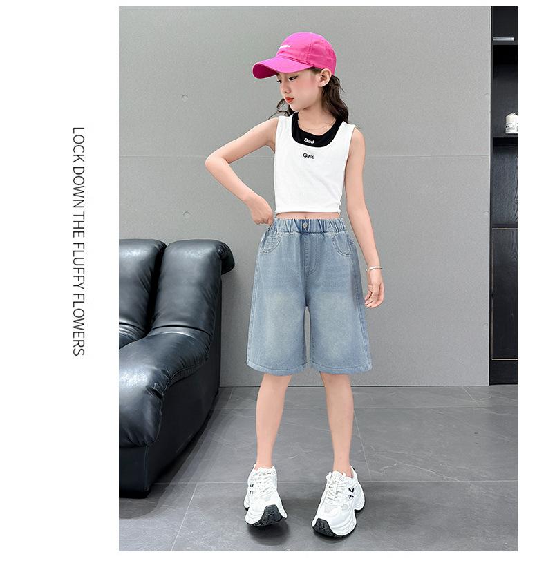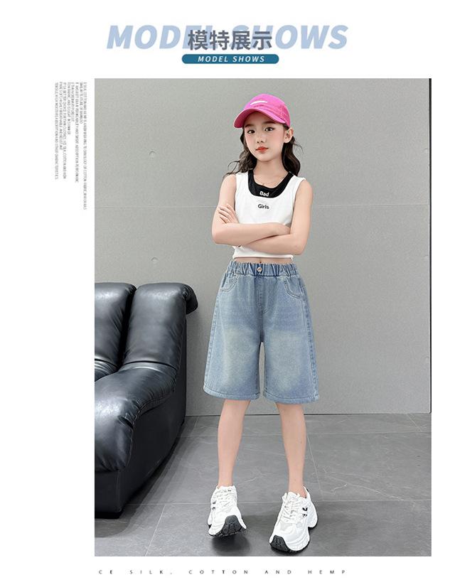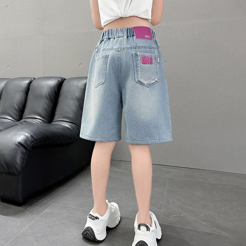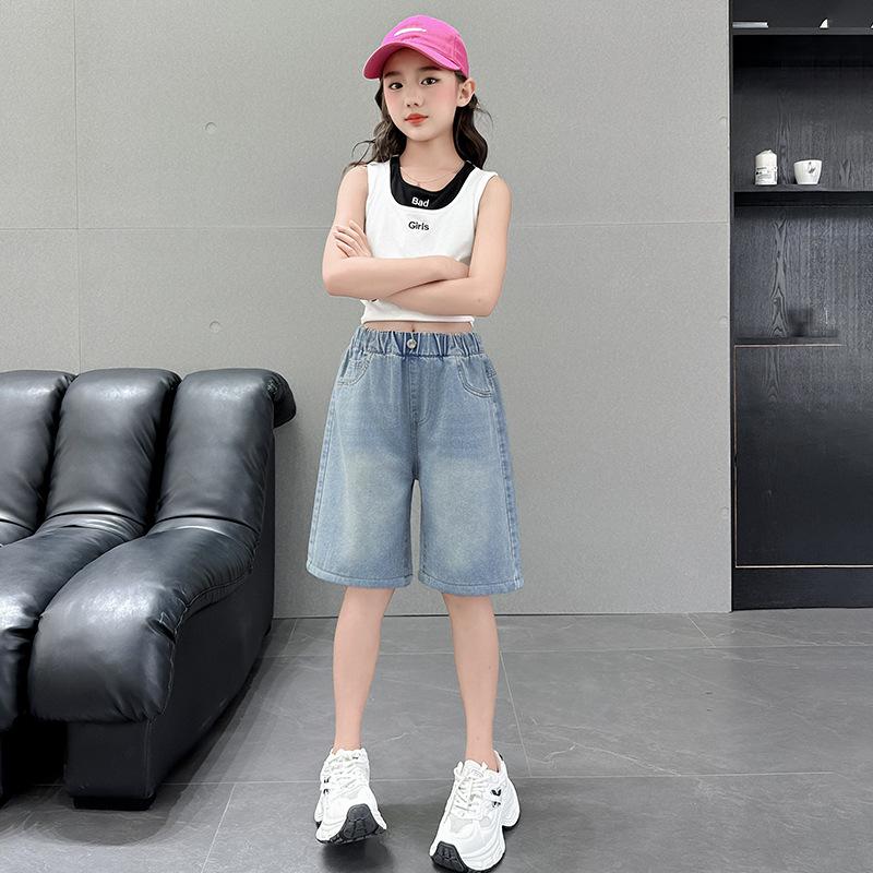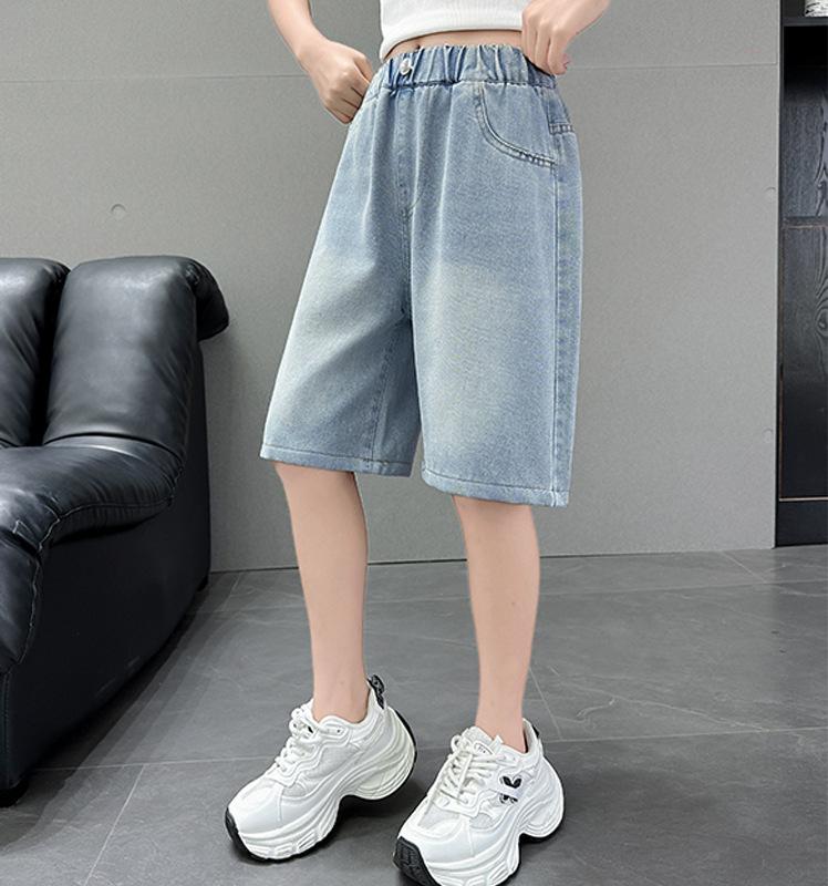 Shorts de Niña Verano 2025 Nuevos Pantalones de Mezclilla de Verano para Niños Ropa Exterior Transpirable a la Moda Pantalones para Niños Medianos y Grandes