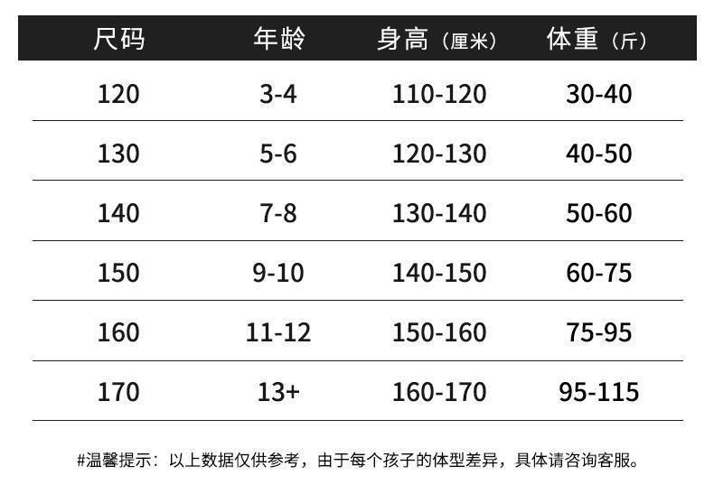 120cm, 130cm, 140cm, 150cm, 160cm, 170cm