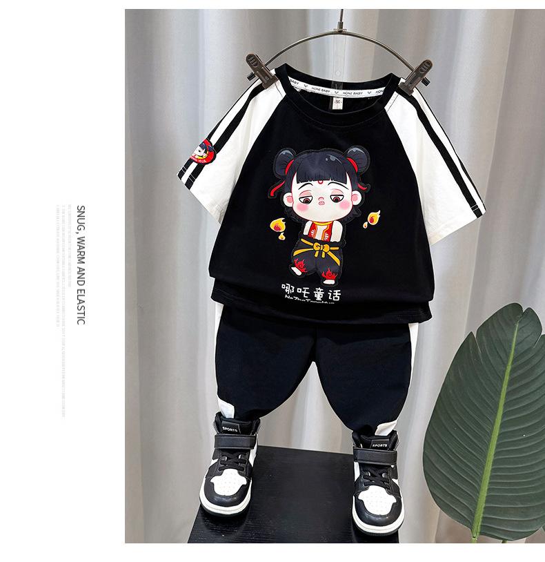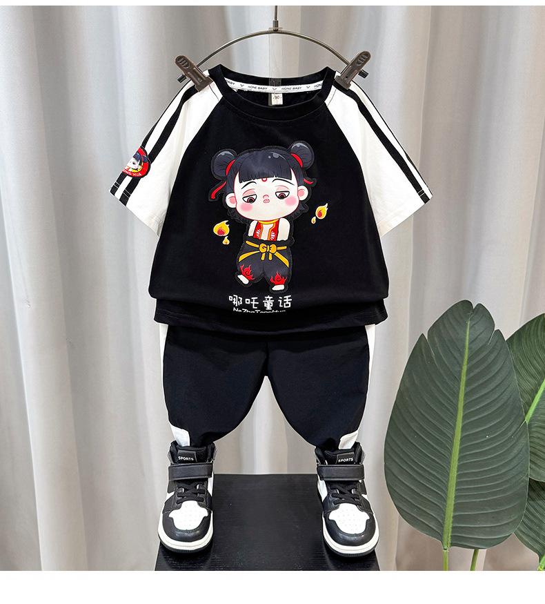 Ropa para niños verano traje de manga corta 2025 nuevo guapo genial bebé pantalones mosquitero conjunto de dos piezas ropa para niños