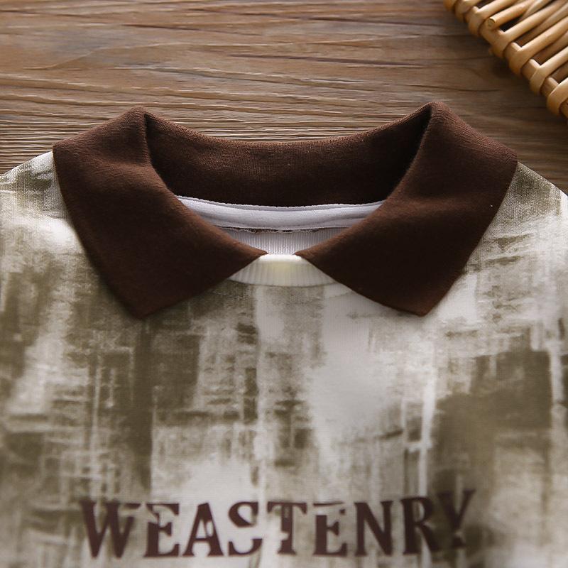 Brown q2025027-gradient letter polo shirt long-sleeved two-piece set, Blue q2025027-gradient letter polo shirt...