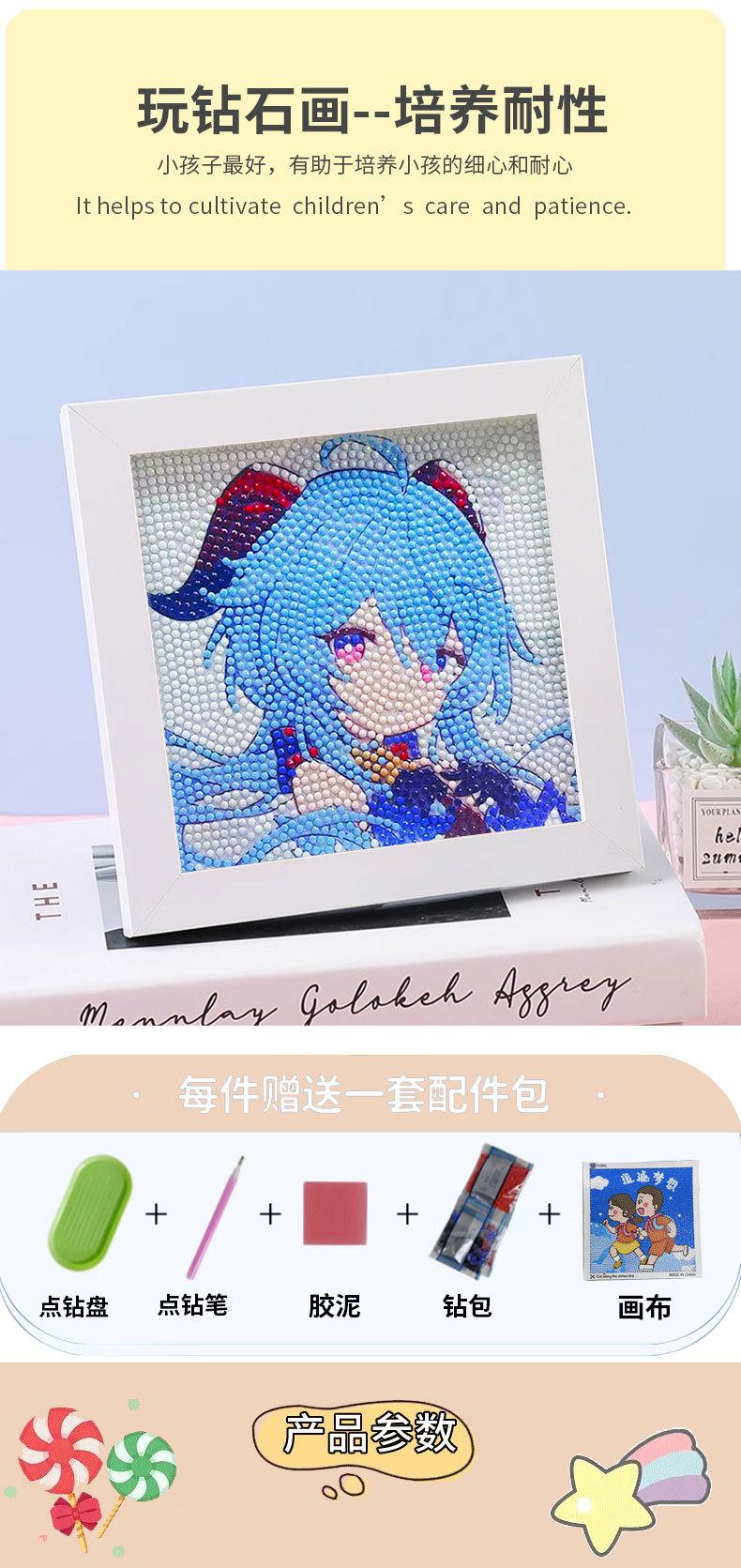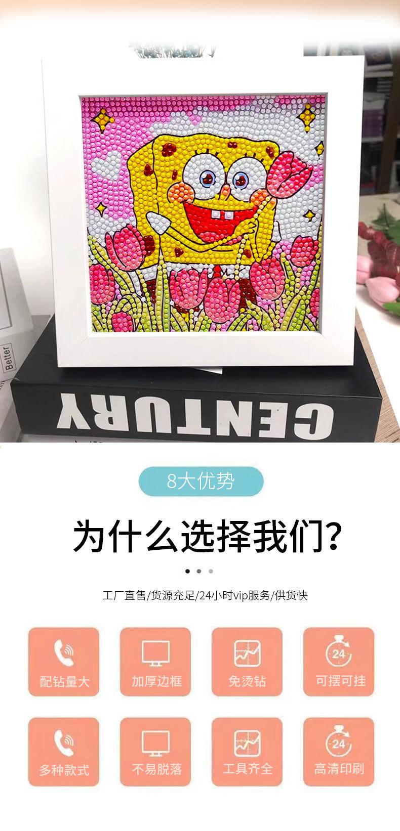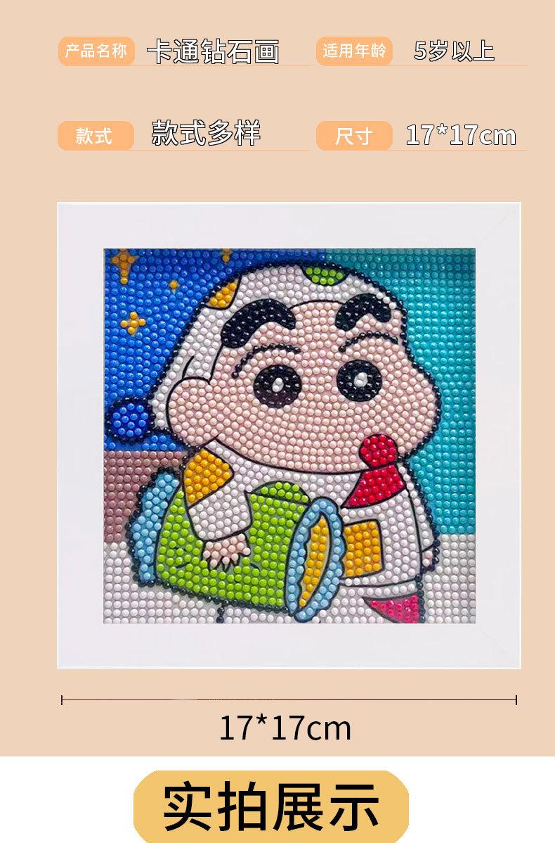 Pintura de Diamantes DIY de Dibujos Animados Transfronteriza con Marco de Fotos 17*17 Pintura de Puntos de Diamantes Hecha a Mano para Niños Pintura con Pegamento de Diamantes Venta al por Mayor