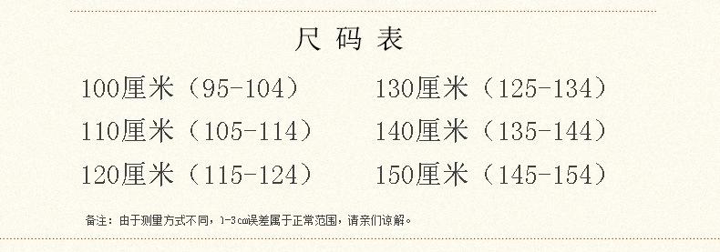 100cm, 110cm, 120cm, 130cm, 140cm, 150cm