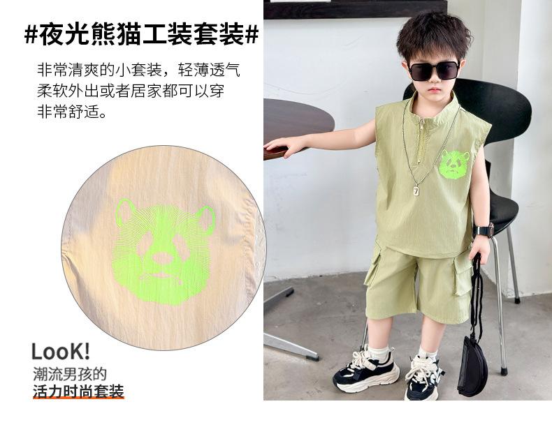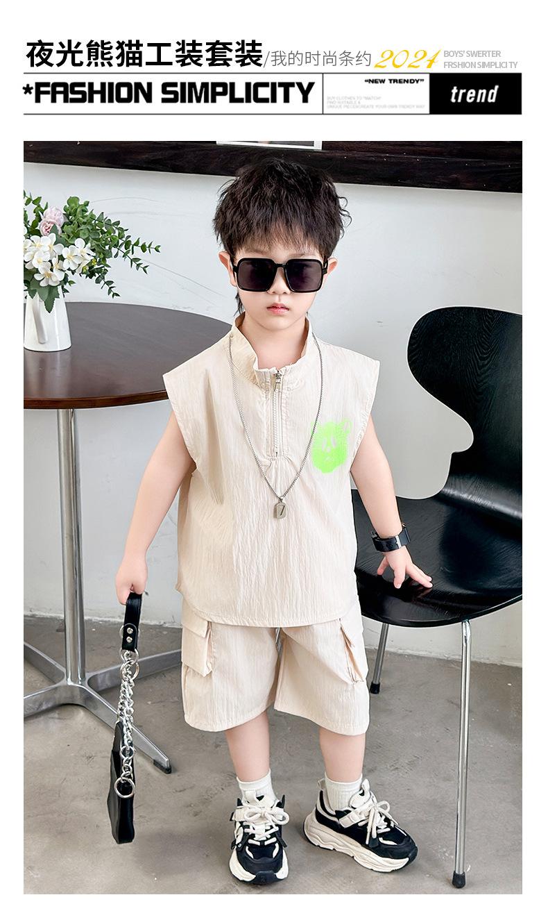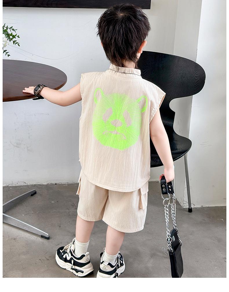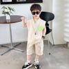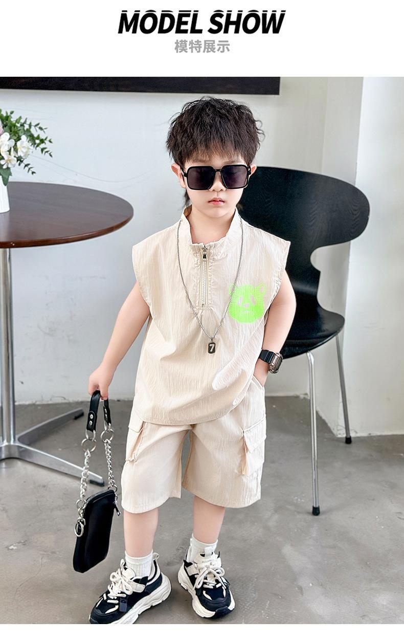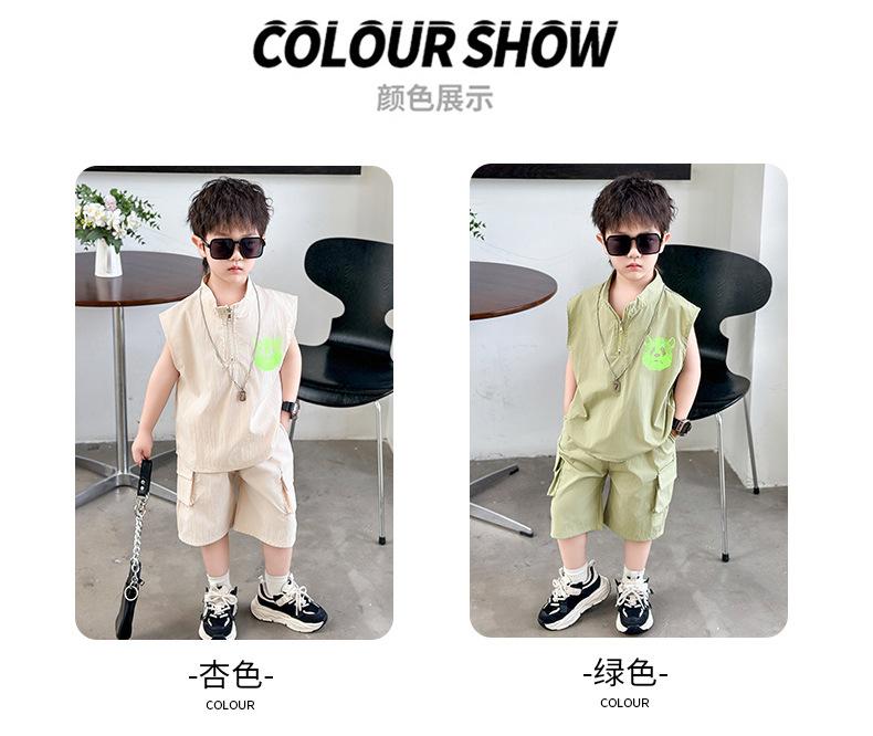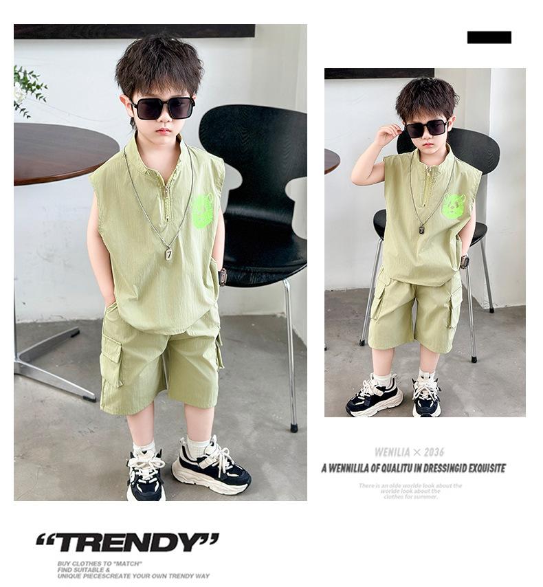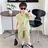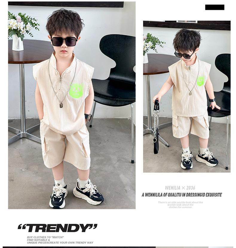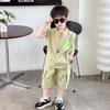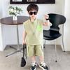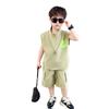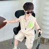 Traje de Verano para Niño 2025 Nuevo Niño Guapo Ropa de Verano sin Mangas Pantalones Cortos Delgados para Niños Conjunto de Dos Piezas