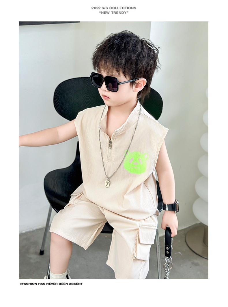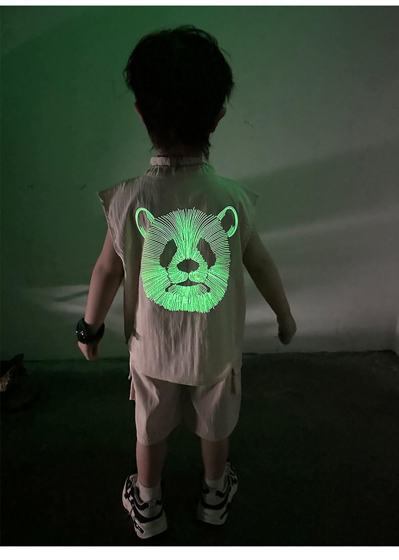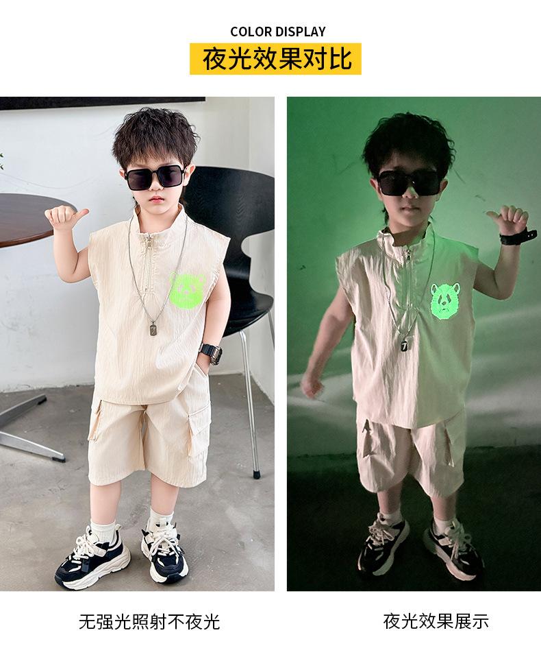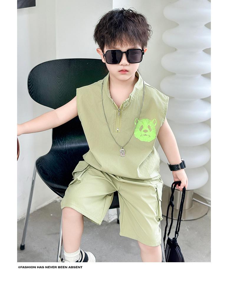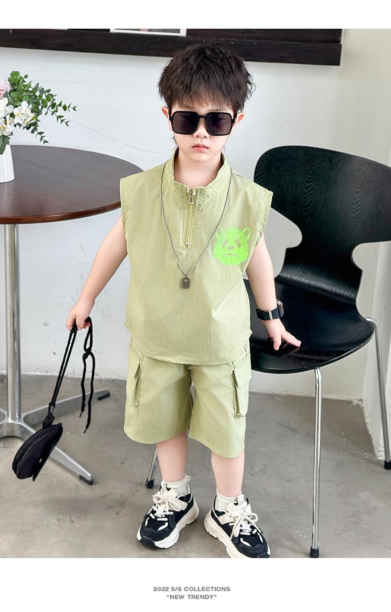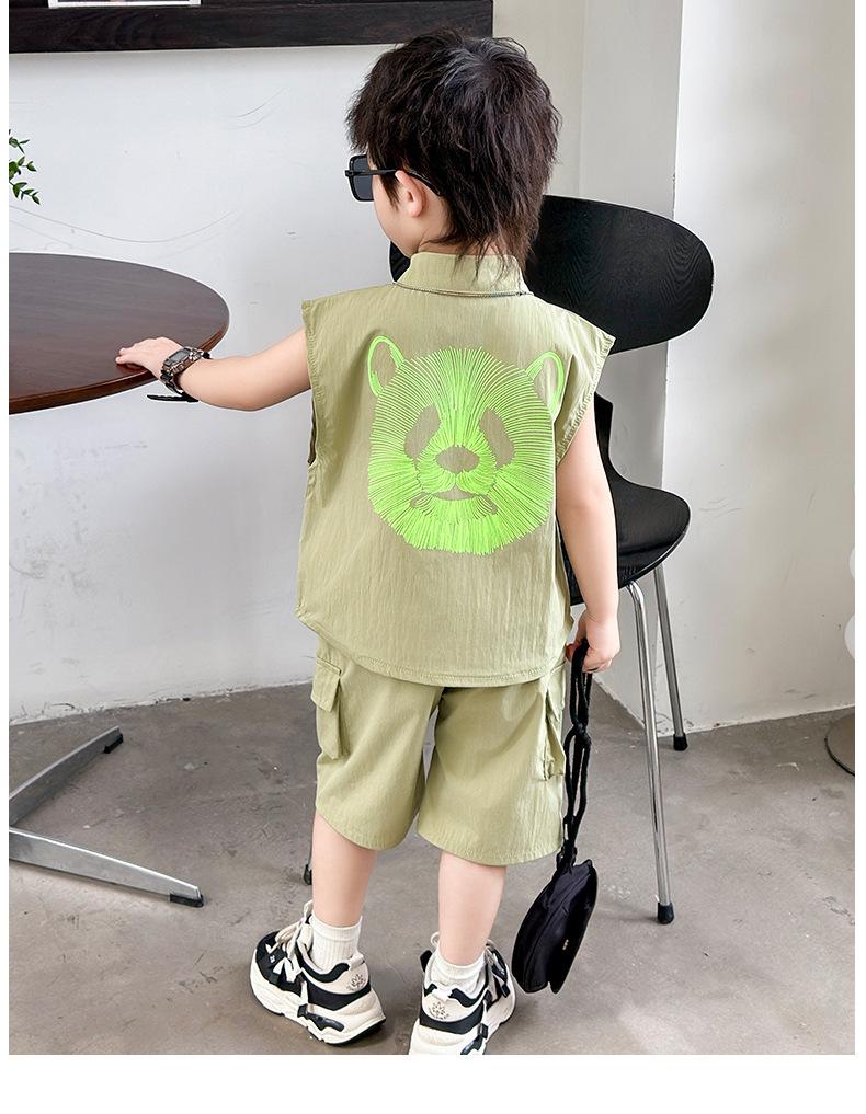 Traje de Verano para Niño 2025 Nuevo Niño Guapo Ropa de Verano sin Mangas Pantalones Cortos Delgados para Niños Conjunto de Dos Piezas