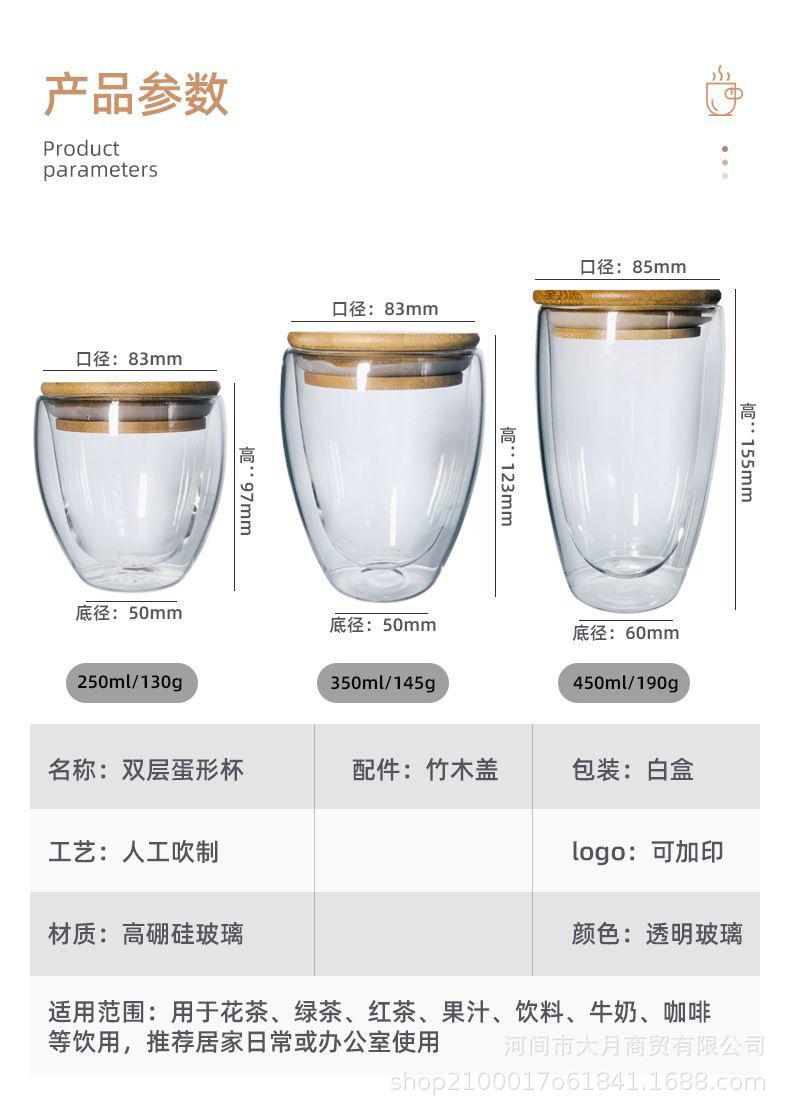 Vaso de vidrio de doble capa engrosado, vaso con forma de huevo, vaso de café doméstico aislado, vaso de agua, vaso de jugo, vaso de leche, vaso de café