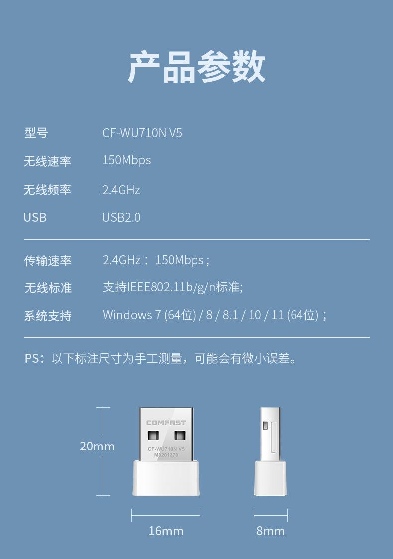 COMFAST CF-WU710N mini tarjeta de red USB 150m tarjeta de red inalámbrica receptor wifi portátil para computadora