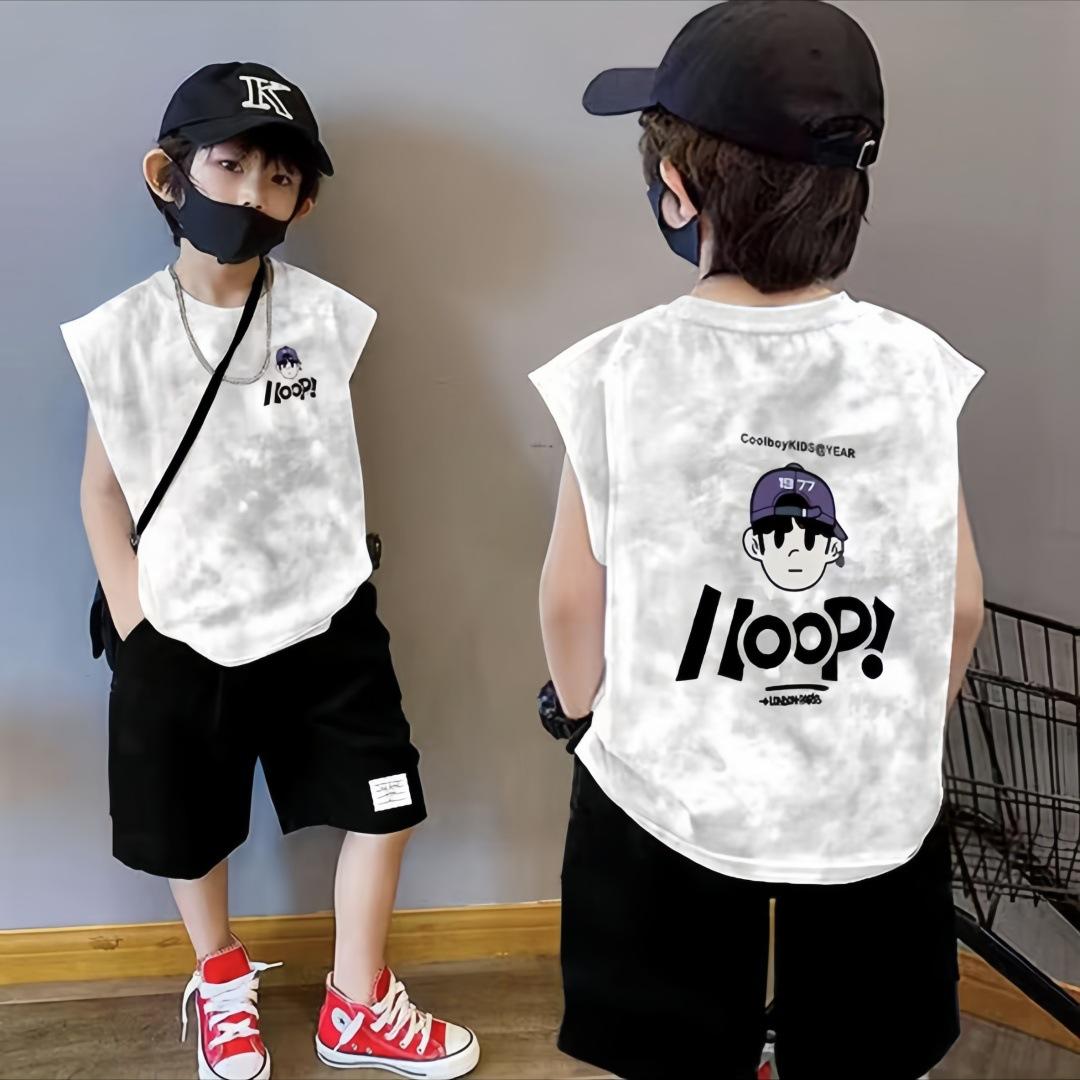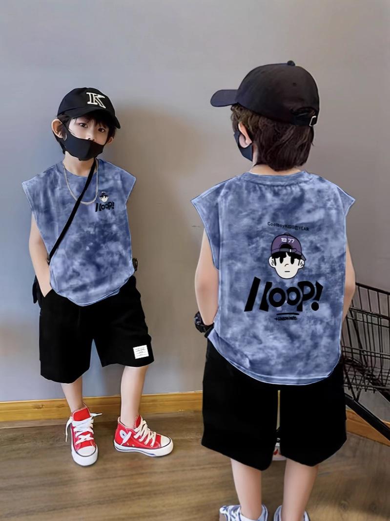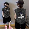 Chaleco sin mangas de algodón puro teñido anudado estilo americano para niños y niñas, nuevo chaleco fresco de moda de verano para niños mayores