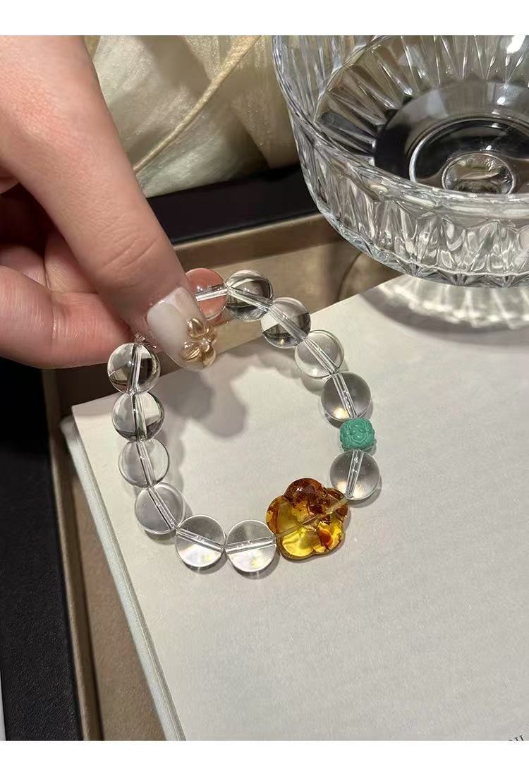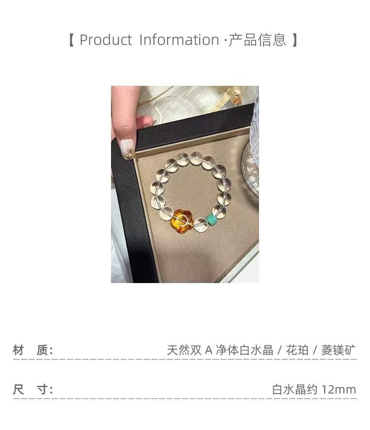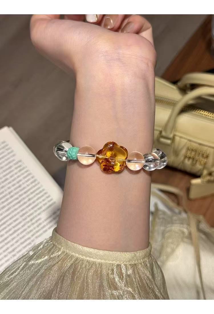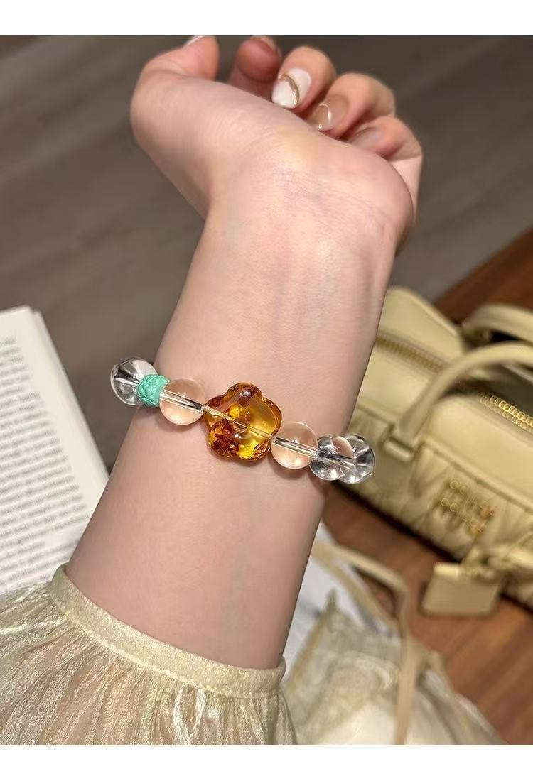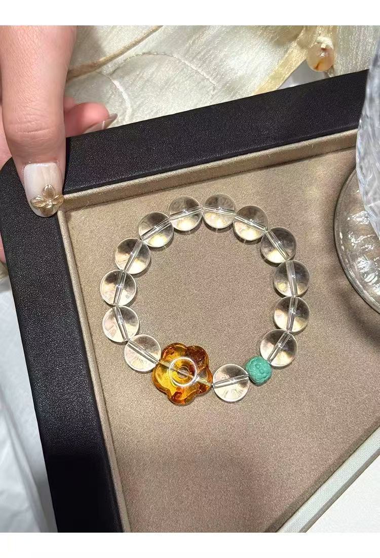 Pulsera Original de Cristal Blanco Natural con Flor de Ámbar, Lujo Ligero, Nicho, Exquisita, Simple, Versátil para Mujer
