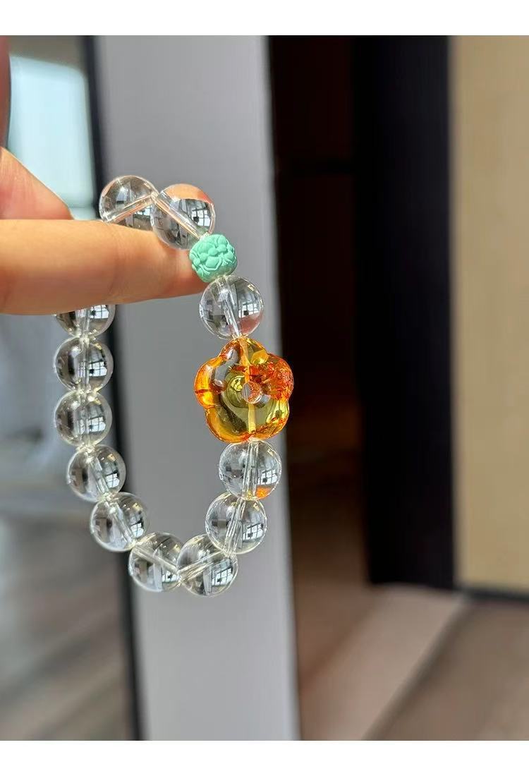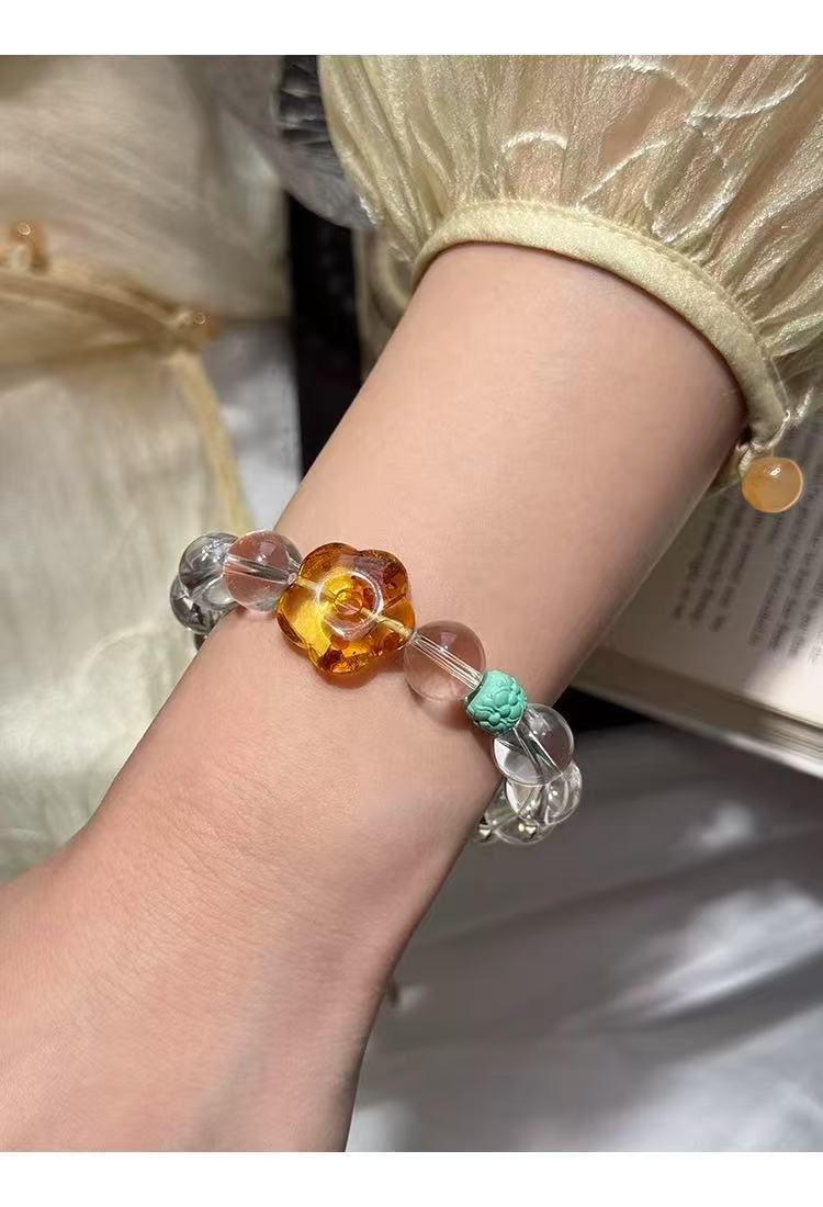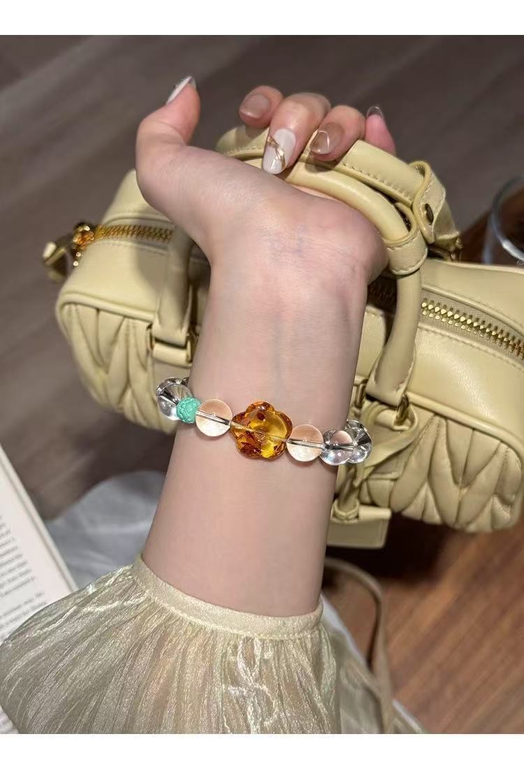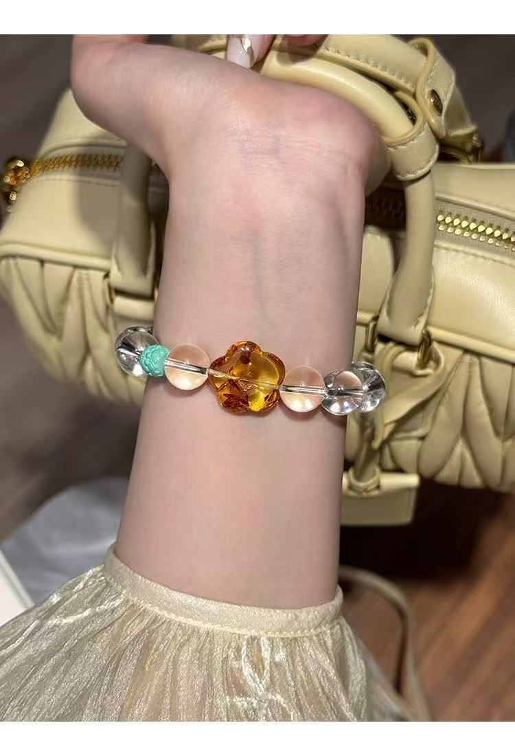 Pulsera Original de Cristal Blanco Natural con Flor de Ámbar, Lujo Ligero, Nicho, Exquisita, Simple, Versátil para Mujer