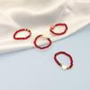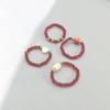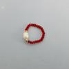 Anillo de Concha de Perla con Cuentas de Cristal Rojo de Moda Diseño Nicho Anillo de Dedo de Cuerda Apretada Juego de Anillos Anillo Ins