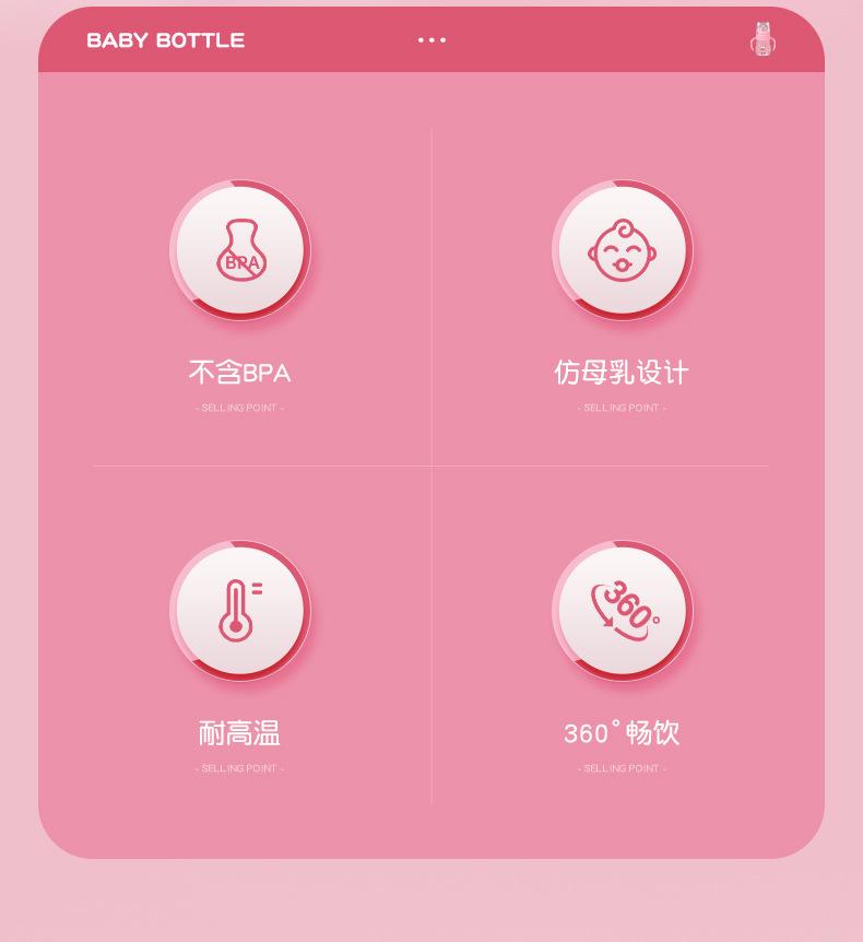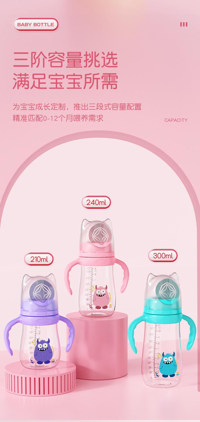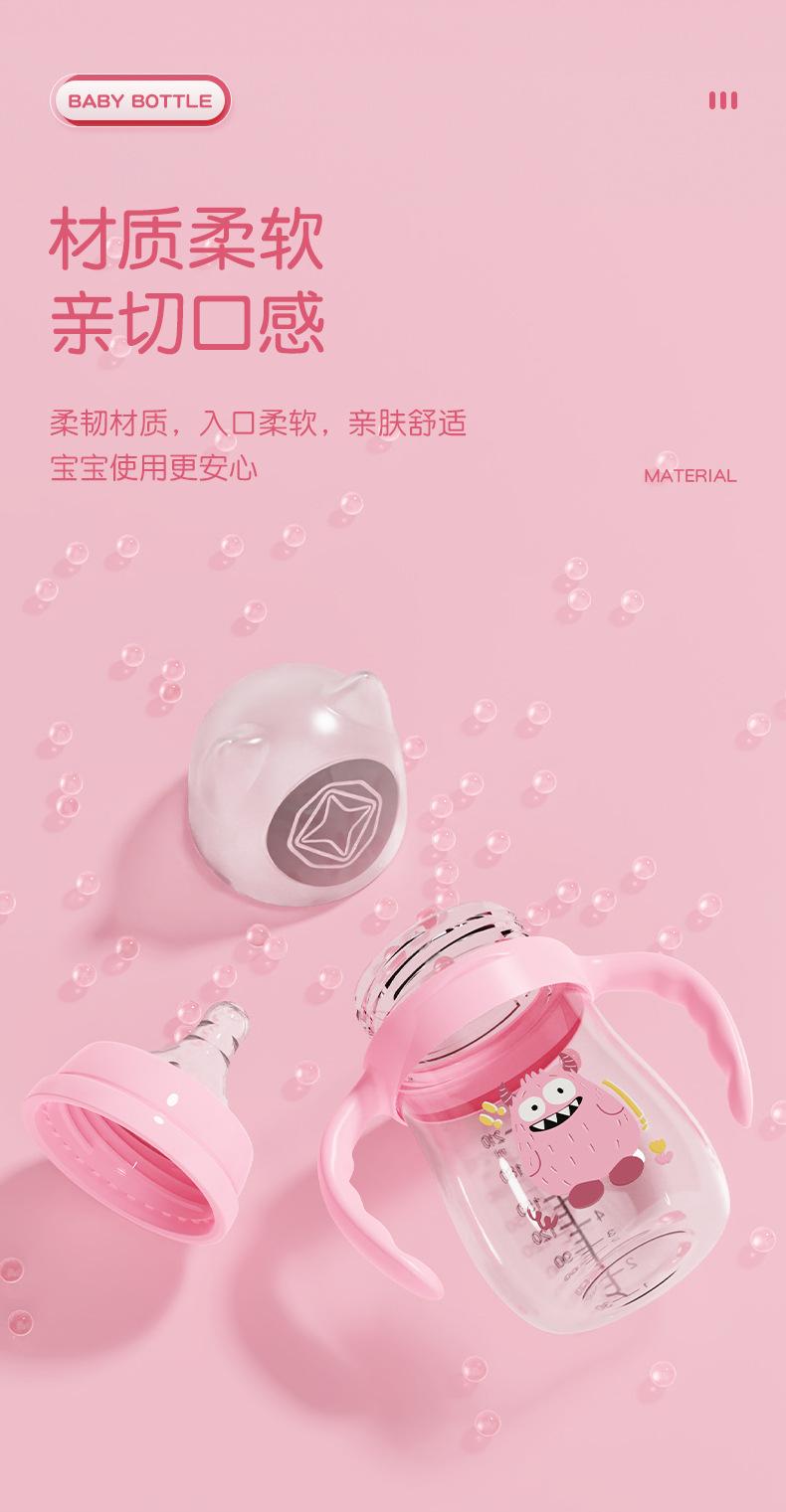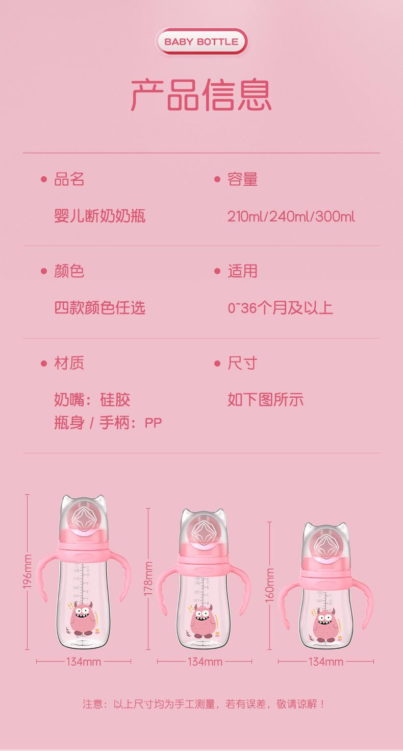 Material: Botella / PP de grado alimenticio, Tetina / silicona de grado alimenticio, Mango / PP de grado alimenticio