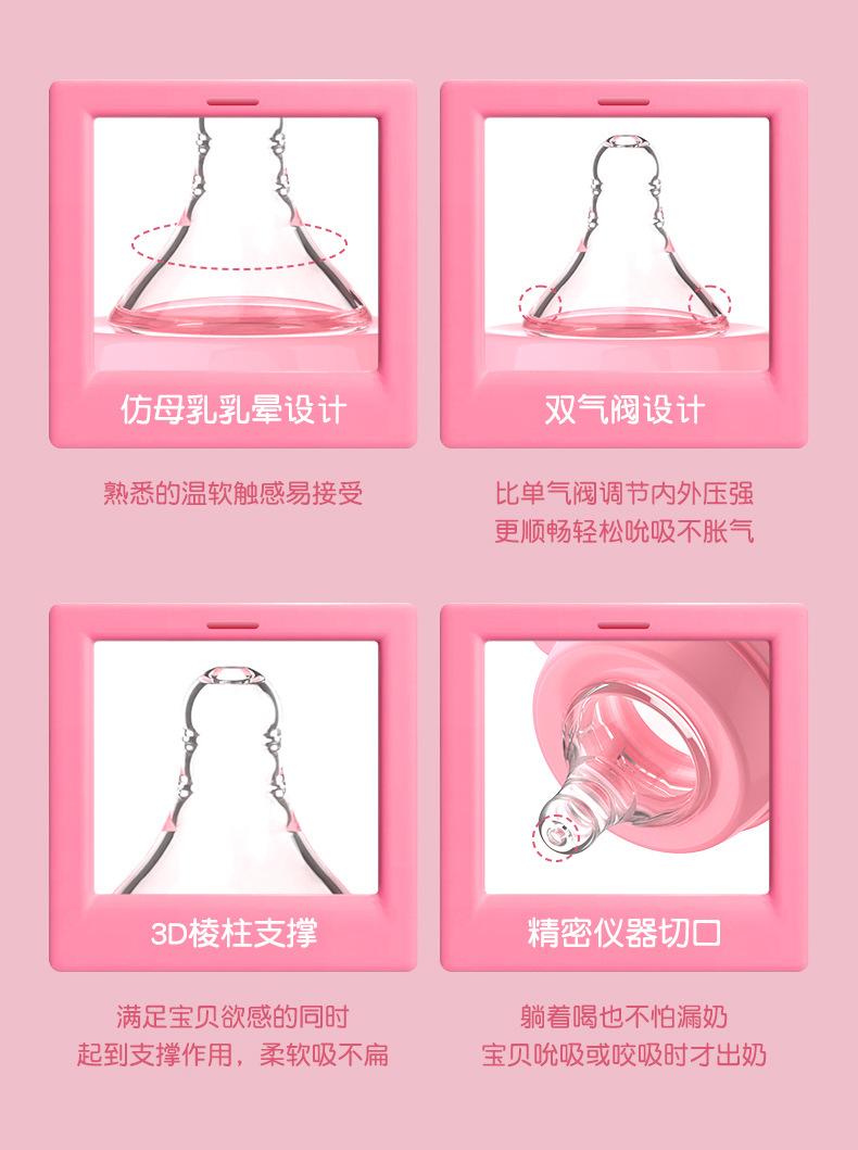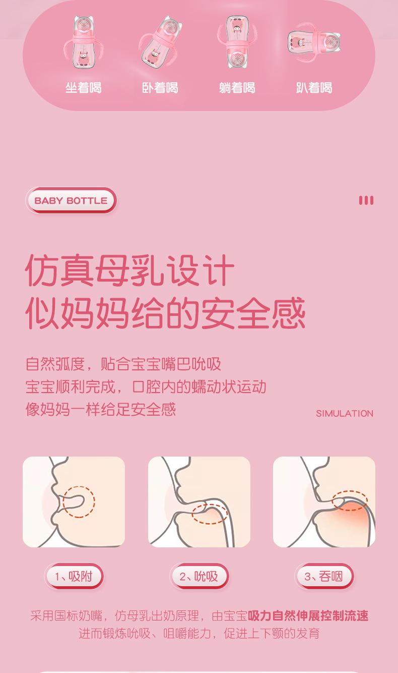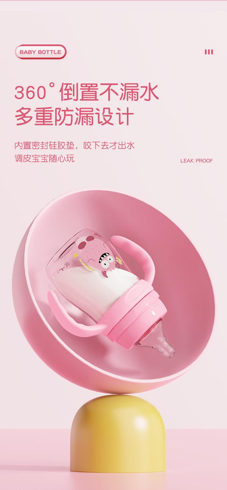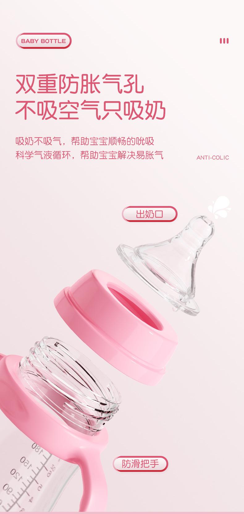Material: Botella / PP de grado alimenticio, Tetina / silicona de grado alimenticio, Mango / PP de grado alimenticio