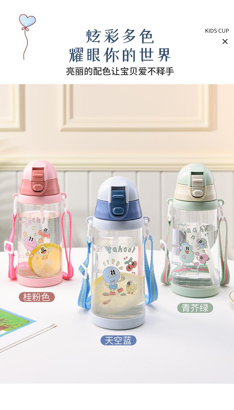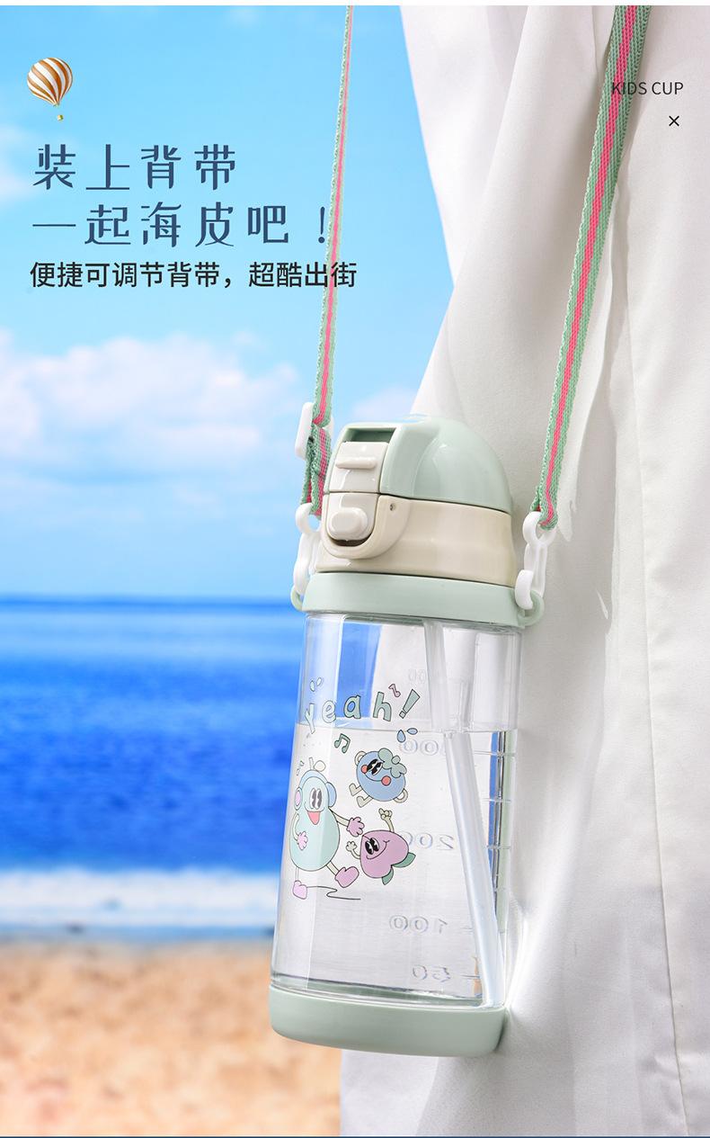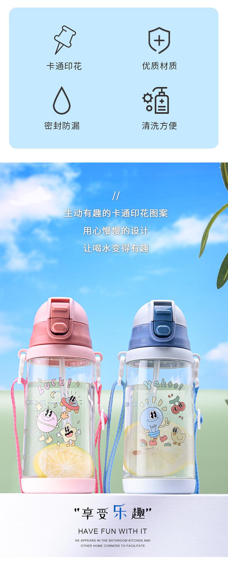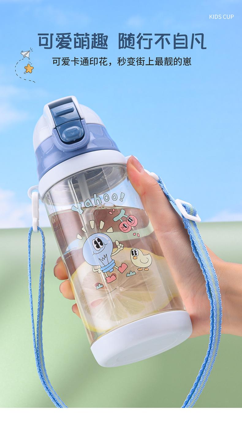 Vaso de Agua para Niños Verano Niños y Niñas Escuela Especial Portátil Correa Vaso de Plástico con Pajita Estudiantes de Primaria Olla para Beber Directamente