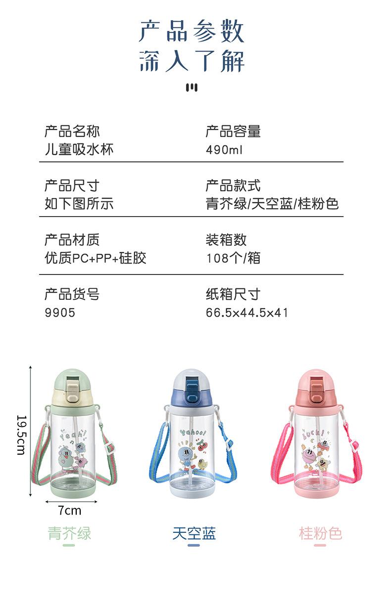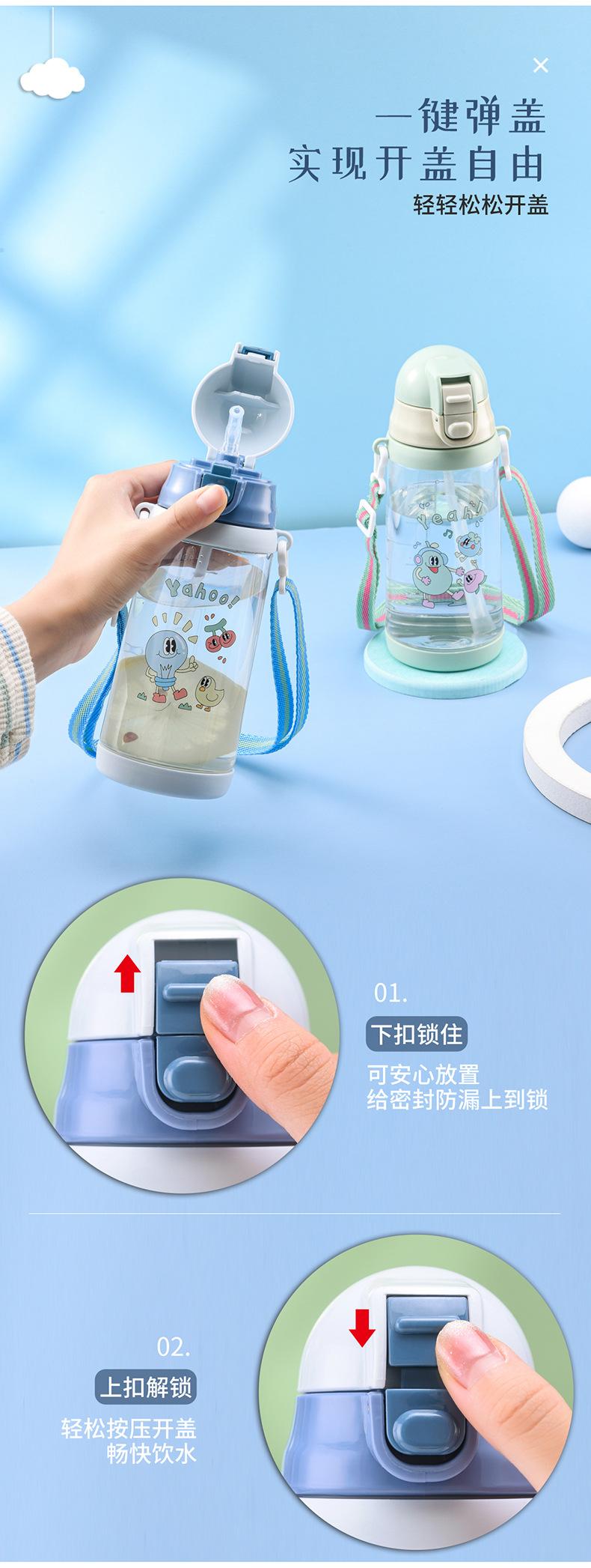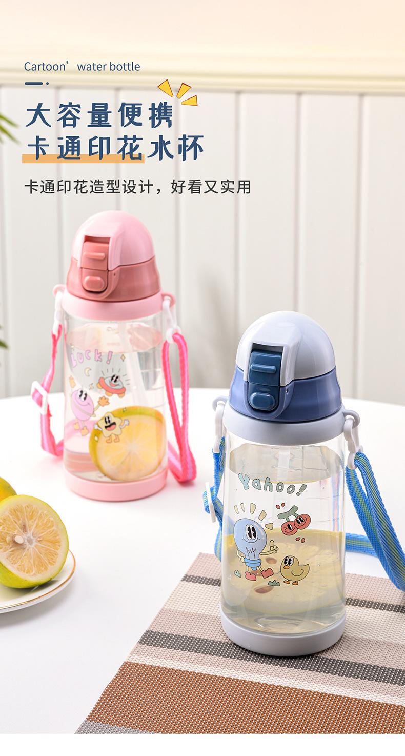 Vaso de Agua para Niños Verano Niños y Niñas Escuela Especial Portátil Correa Vaso de Plástico con Pajita Estudiantes de Primaria Olla para Beber Directamente