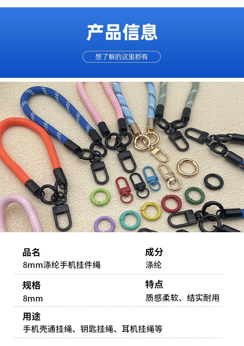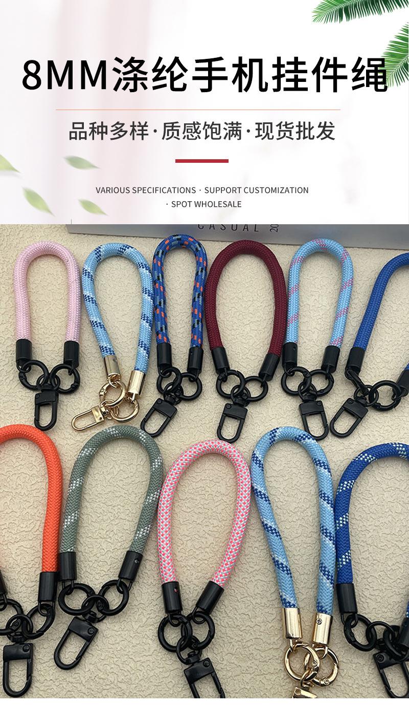 En stock 8mm Poliéster Cuerda Colgante para Teléfono Móvil Cordón Trenzado Llavero Bolsa Decoración Colgante para Funda de Teléfono Móvil Cordón para Teléfono Móvil