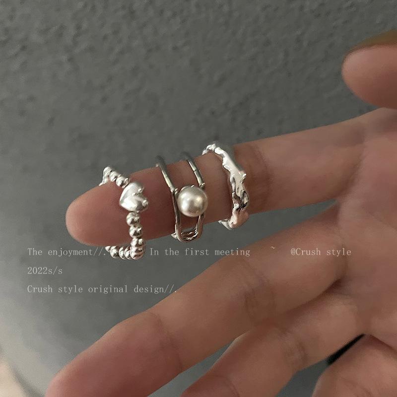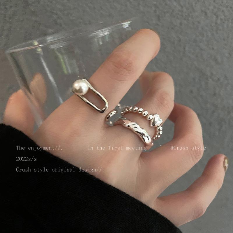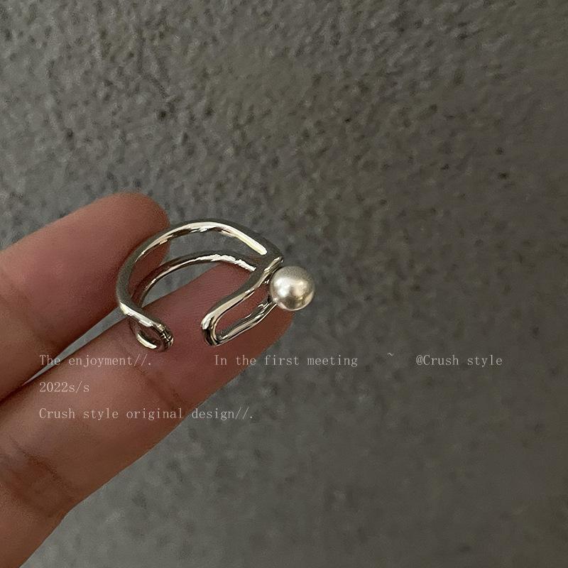 Anillo de perla de doble capa con diseño irregular encantador para mujer, anillo de alta gama con diseño de nicho, anillo de dedo índice personalizado de moda