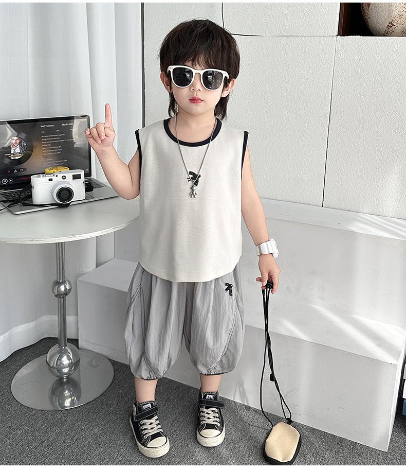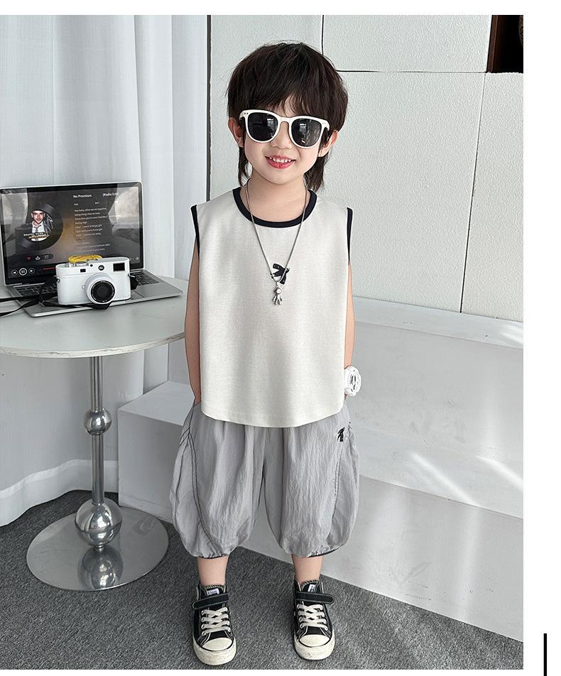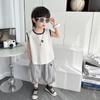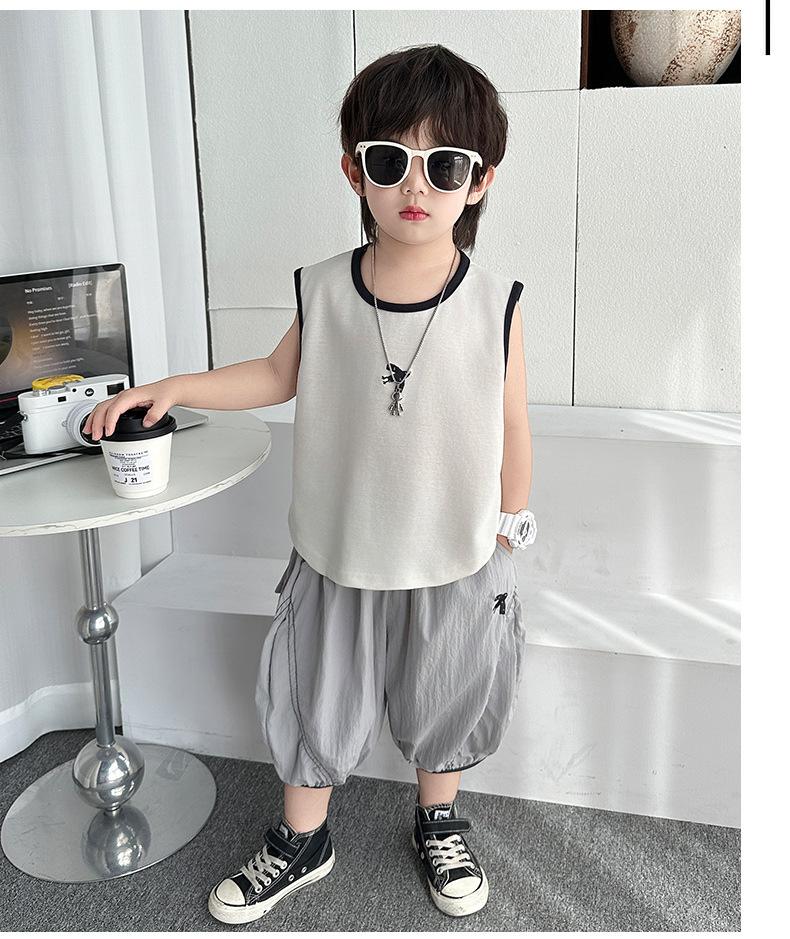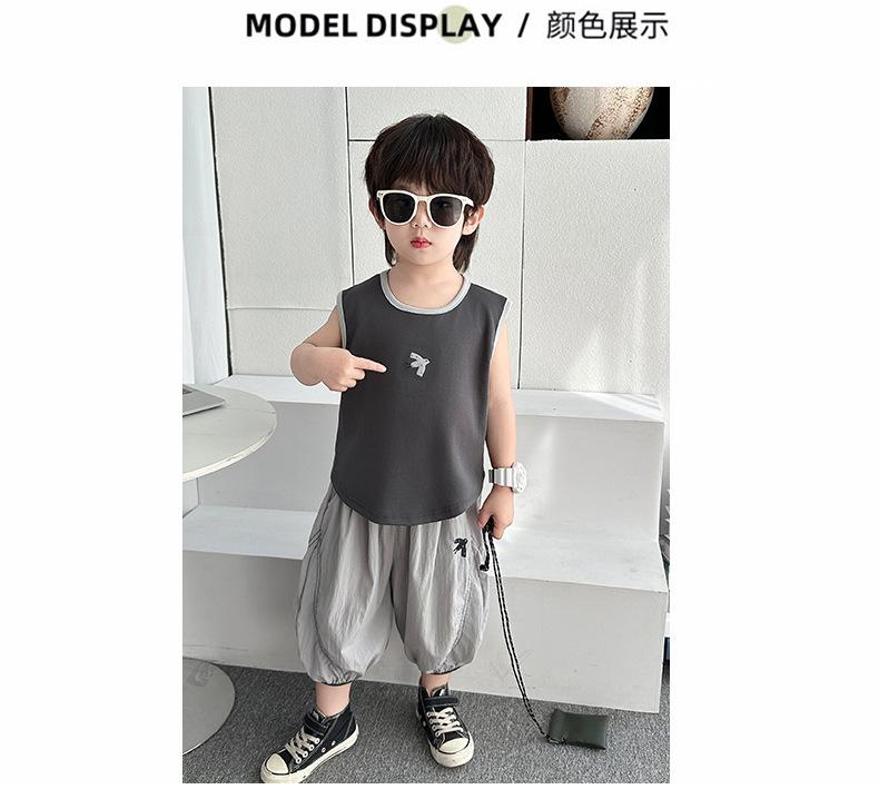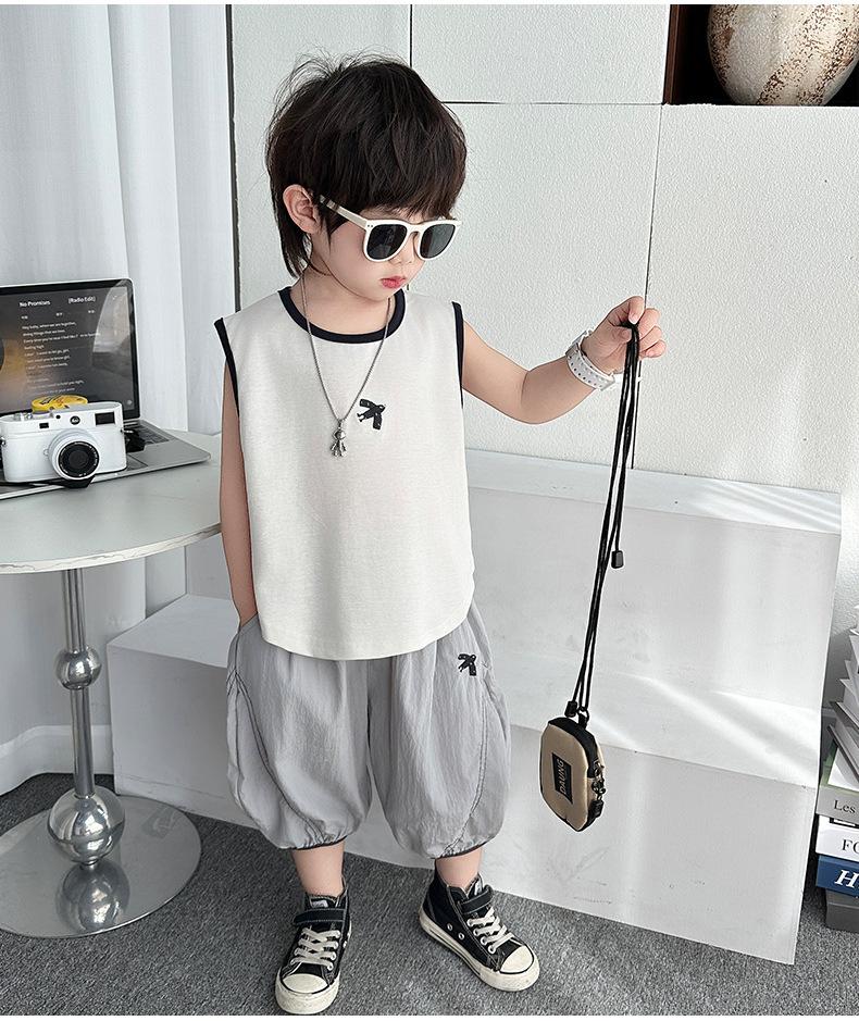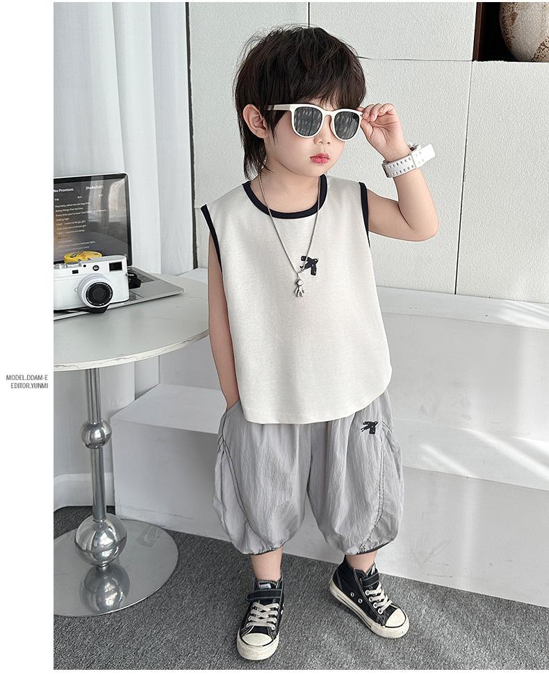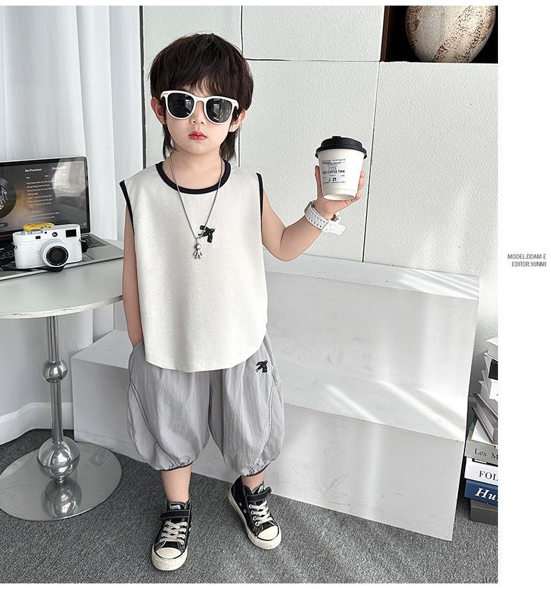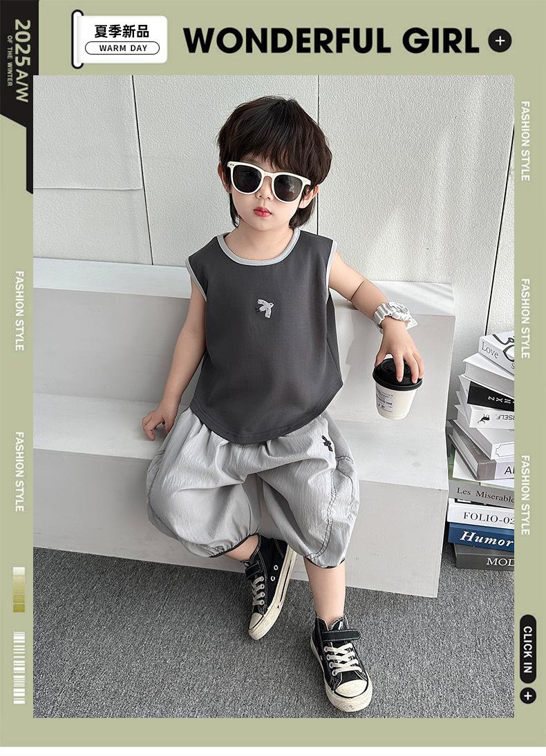 Ropa para niños Traje de verano para niños 2025 Nuevo estilo Bebé Traje de verano sin mangas Delgado Niño Fresco y guapo Conjunto de dos piezas