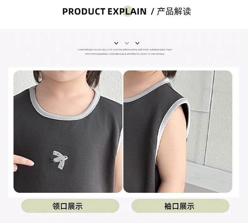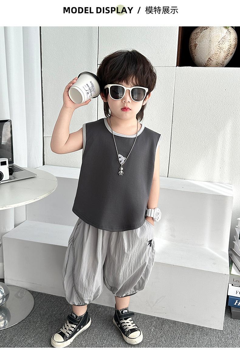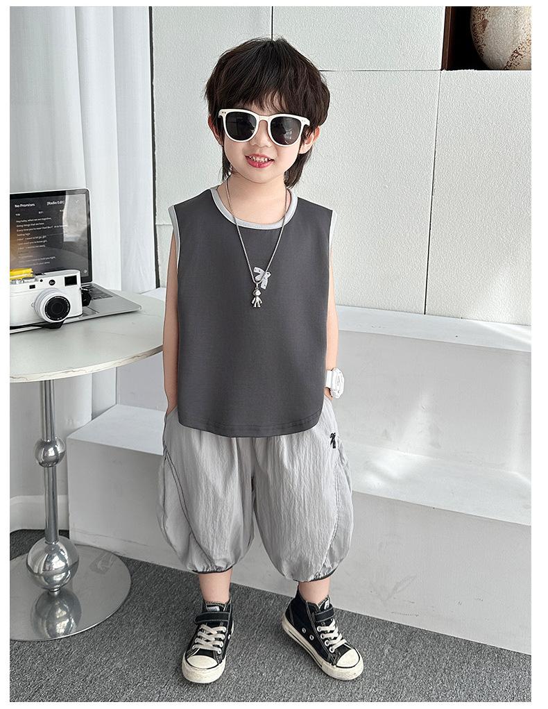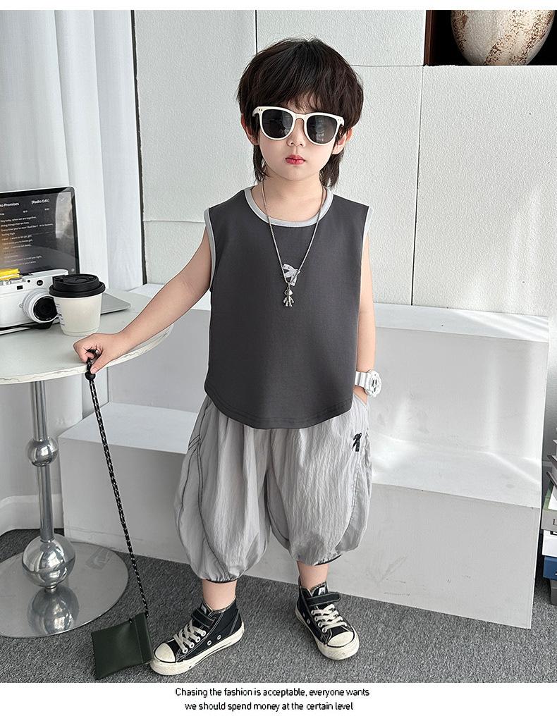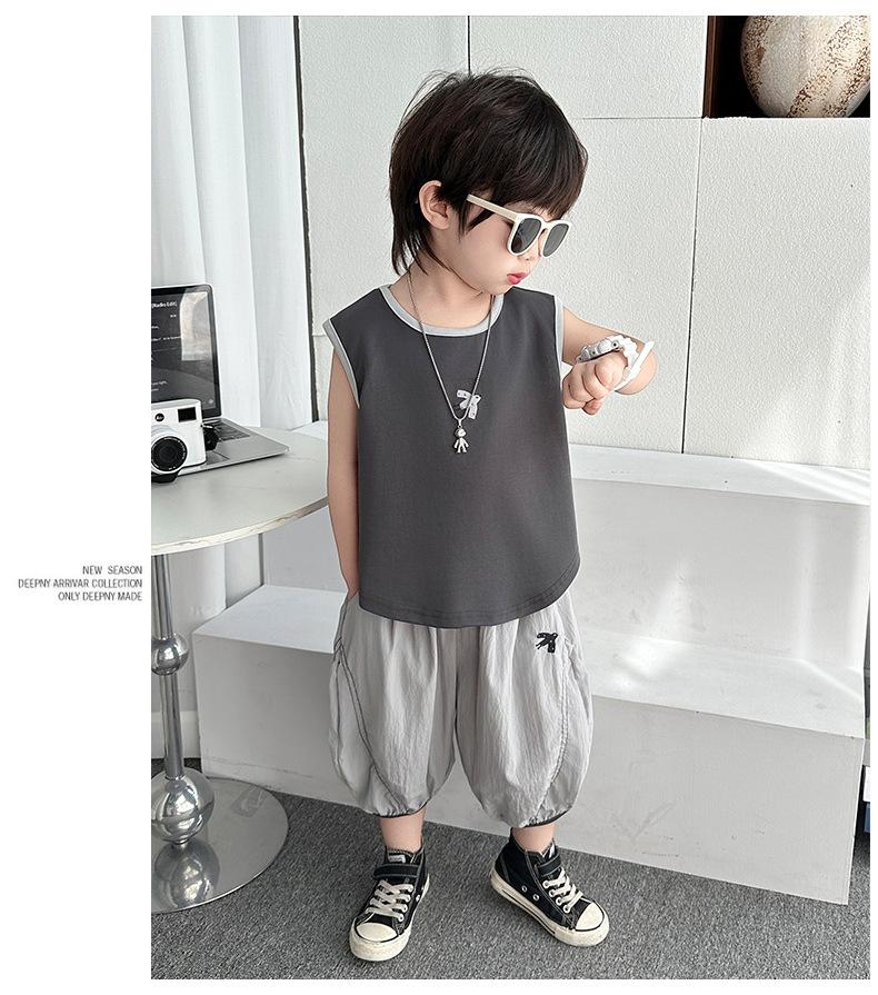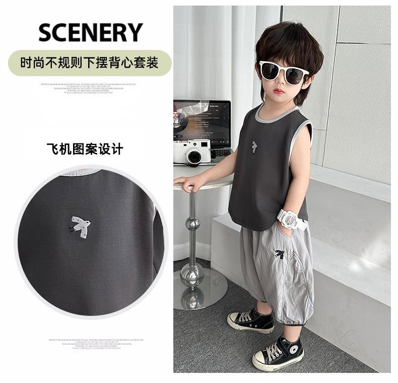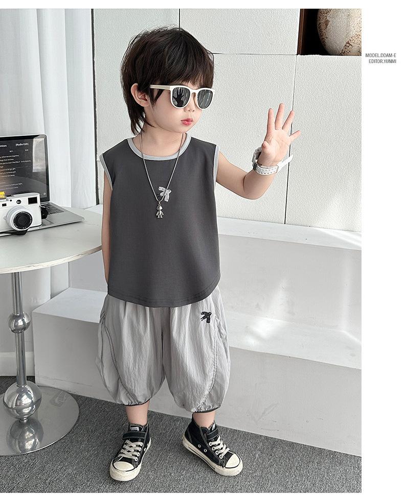 Ropa para niños Traje de verano para niños 2025 Nuevo estilo Bebé Traje de verano sin mangas Delgado Niño Fresco y guapo Conjunto de dos piezas