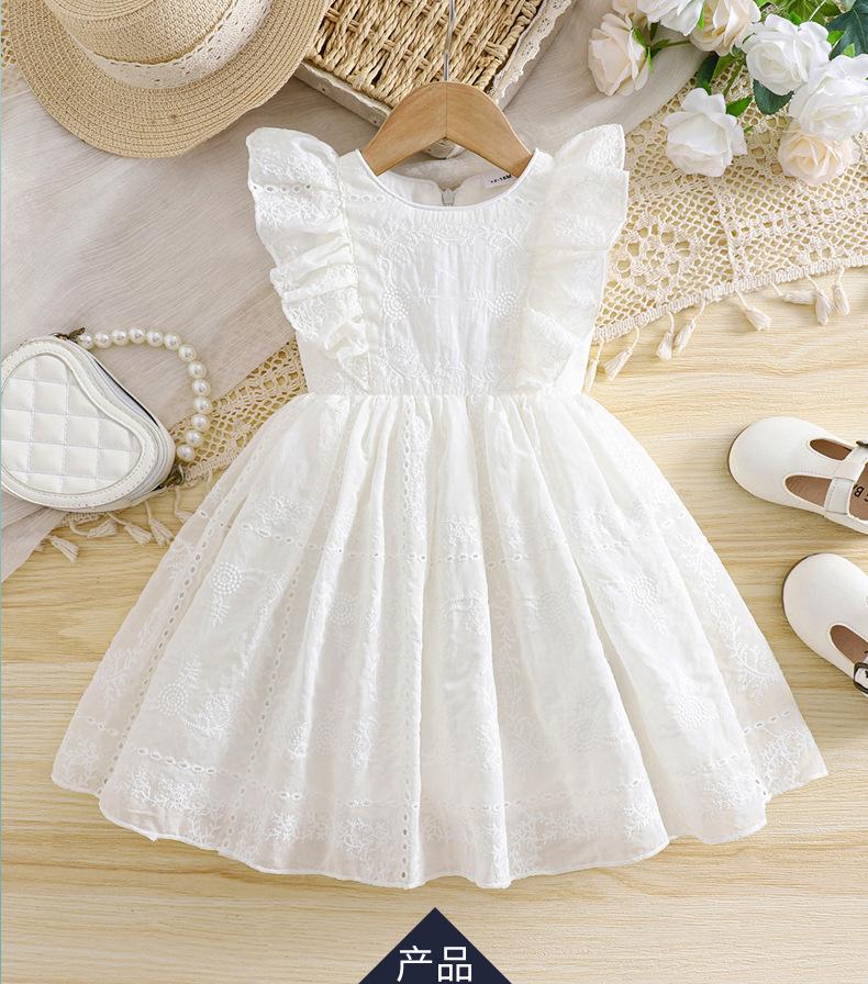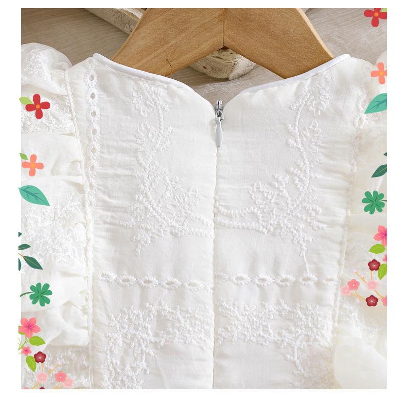 Vestido de Princesa para Bebé Niña Estilo Ins Blanco Fiesta de Cumpleaños Un Año Vestido de Princesa Moda Infantil Sencillo Vestido de Dama de Honor con Flores