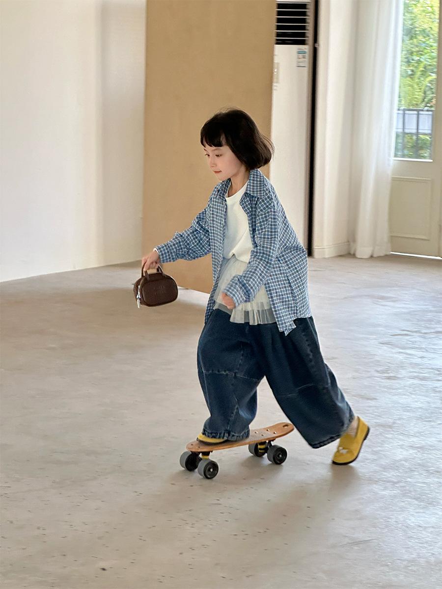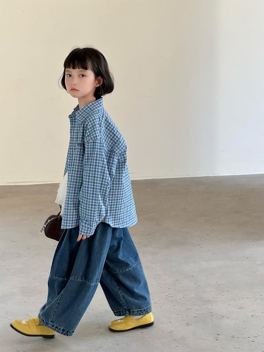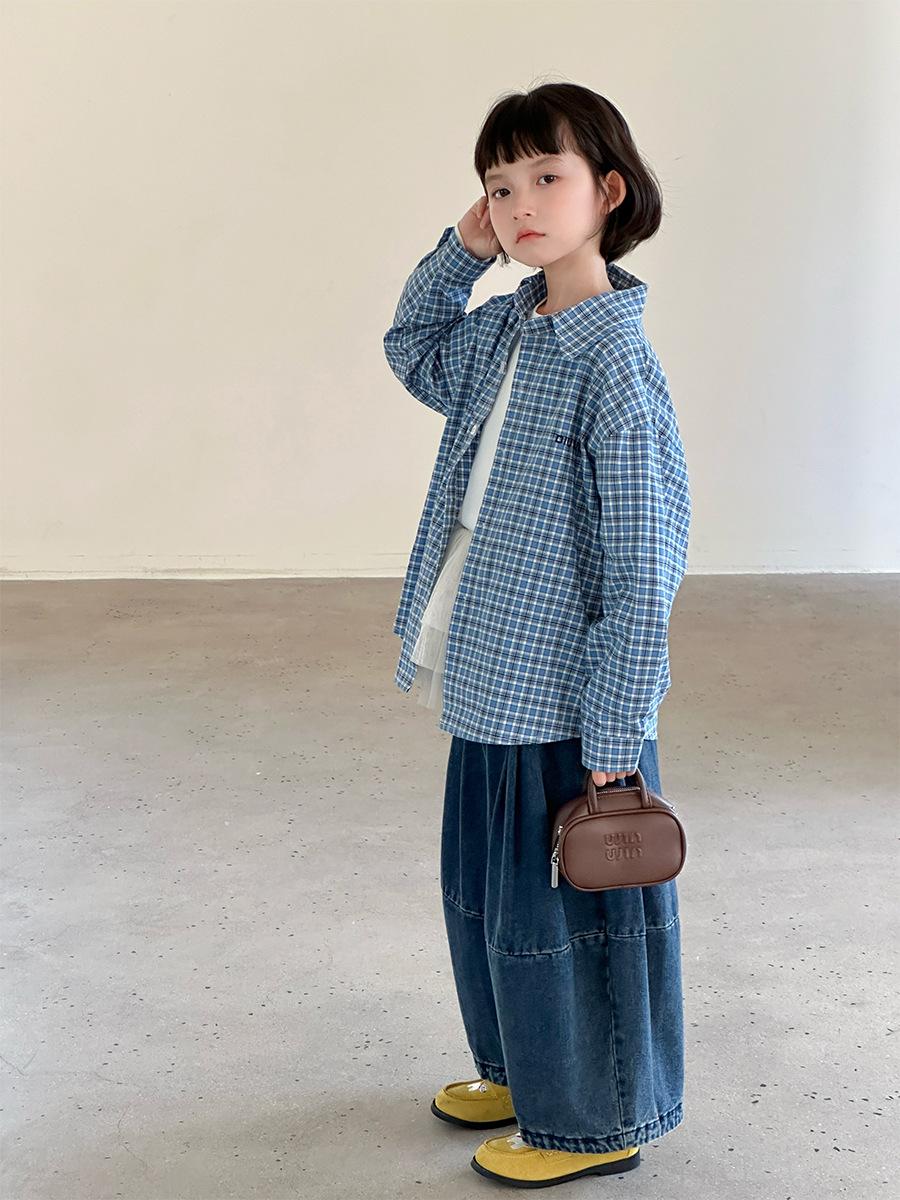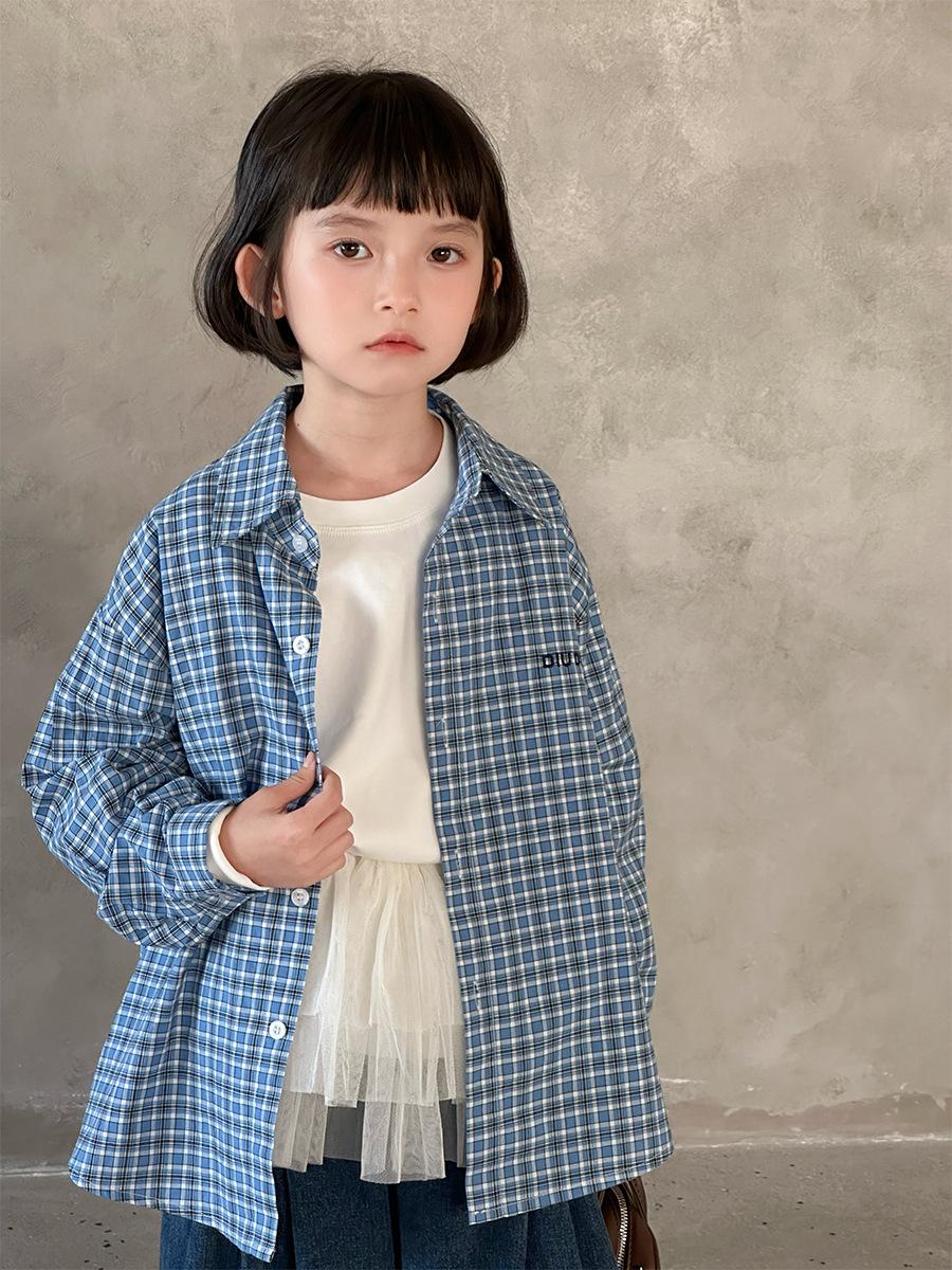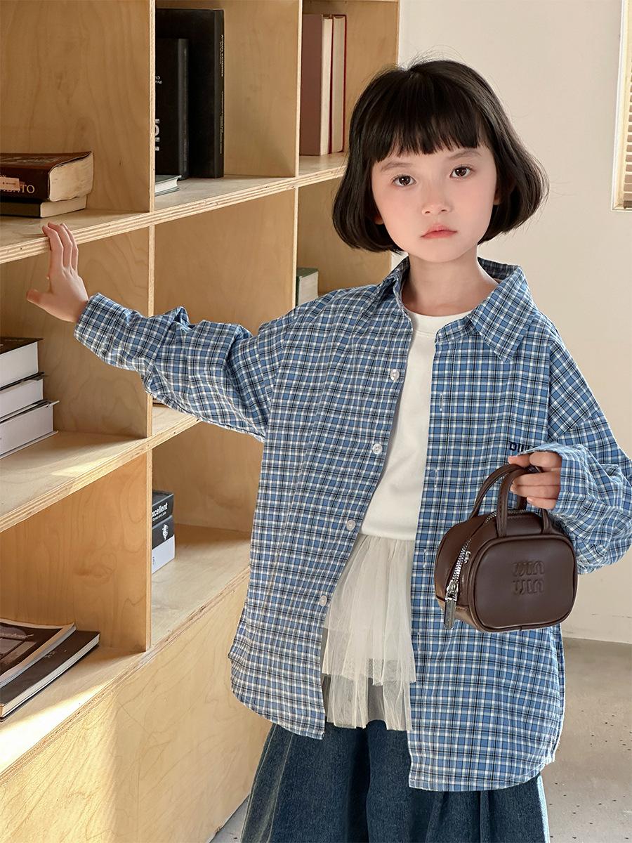 2025 Nuevo Otoño Estilo Coreano Camisas de Cuadros Azules para Niños y Niñas, Camisas de Solapa Casuales y Versátiles, Modernas y a la Moda