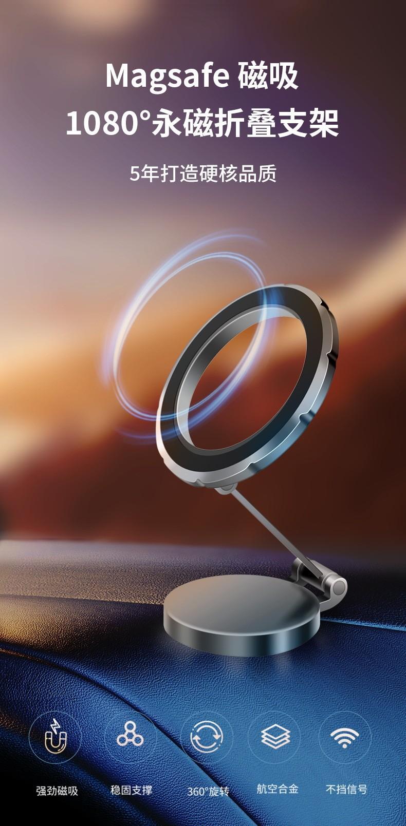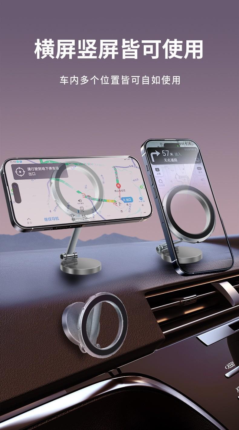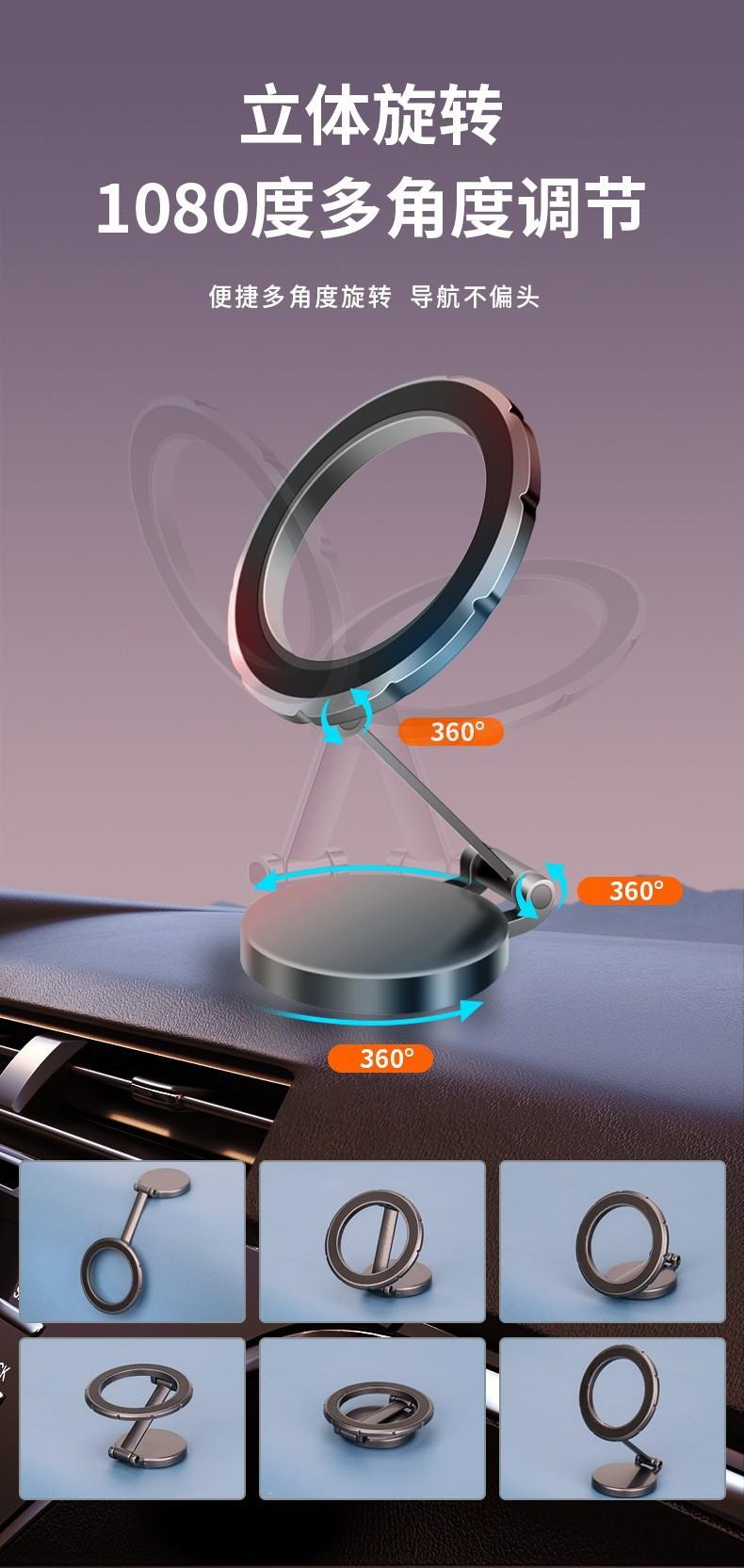 Soporte para teléfono móvil de coche Plegable Magnético Magnético Fuerte Rotación de 360 Grados Marco de Soporte para Navegación de Tablero Silencioso Antivibración