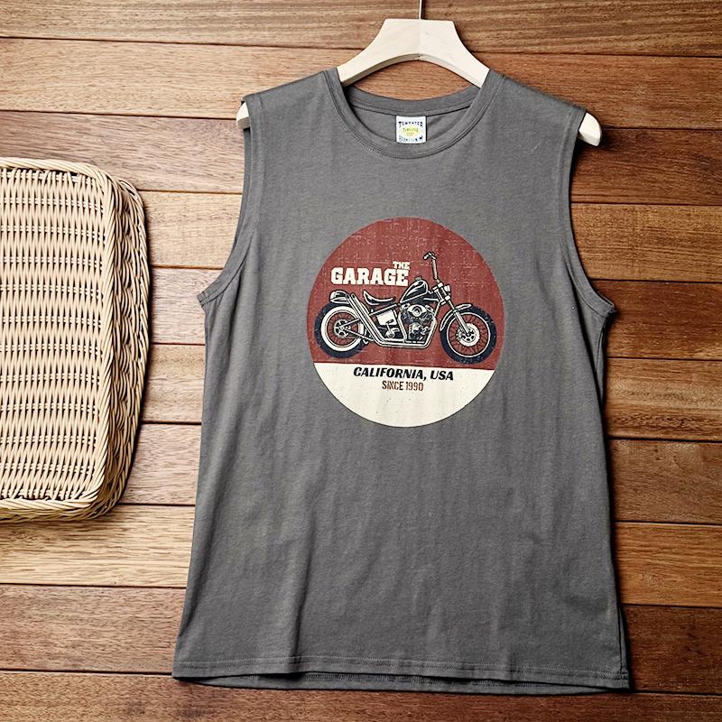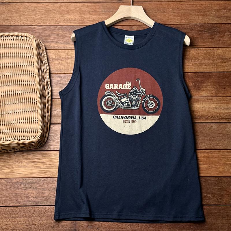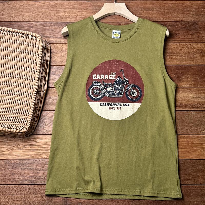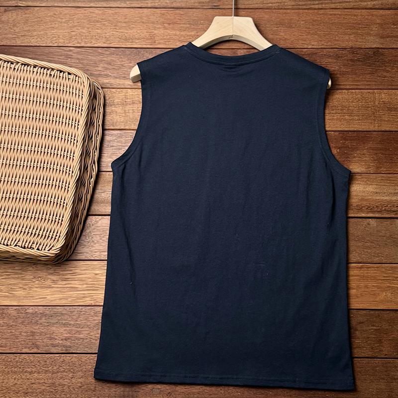 American Single Ami Khaki Lavado Verano Hombre Camiseta sin Mangas de Cuello Redondo Estampada de Alta Calidad