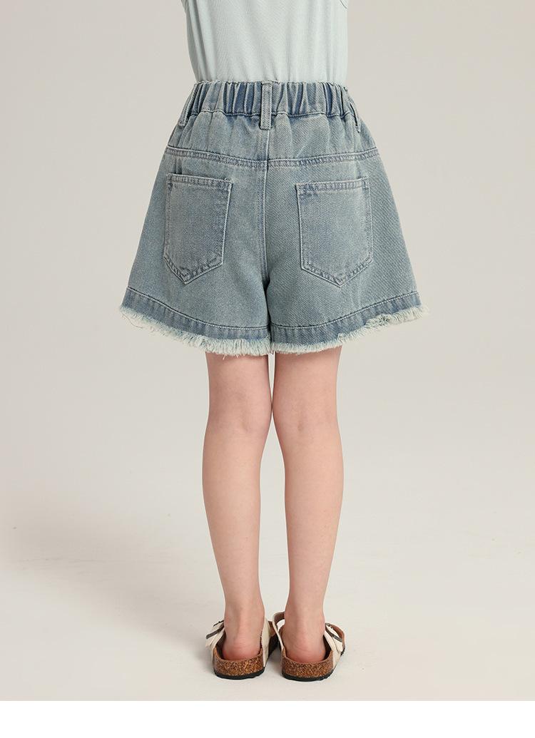 Pudding Haru Ropa de Verano para Niños Pantalones Elegantes para Niñas Verano 2025 Nuevo Shorts de Mezclilla Versátiles con Borlas para Niños
