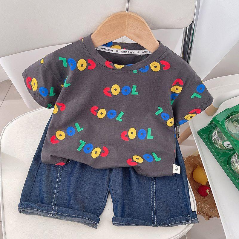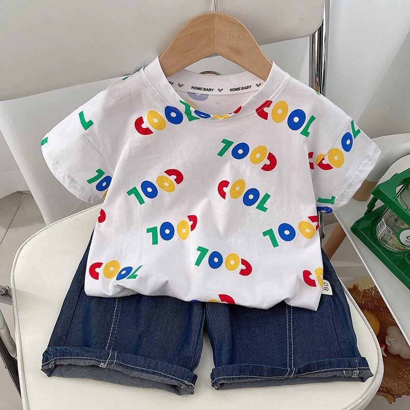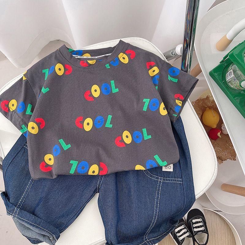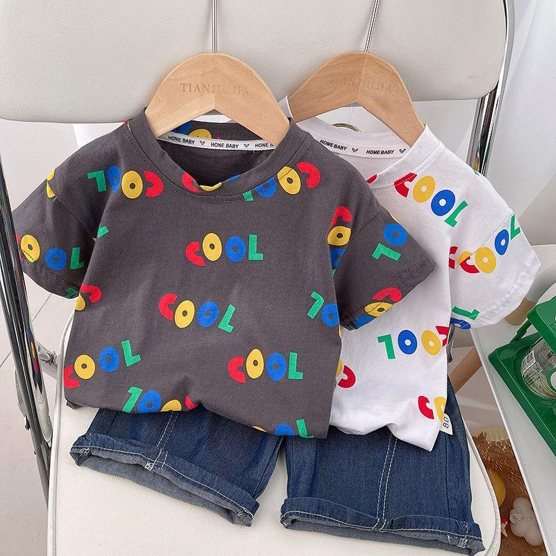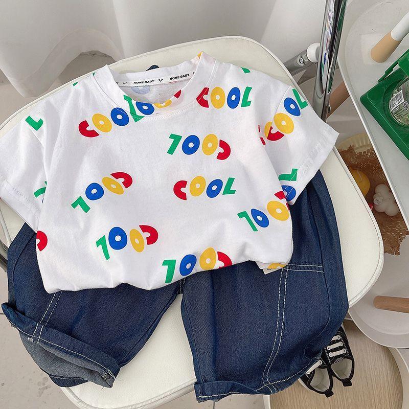 Playeras de Verano de Manga Corta para Niños y Niñas, Moda para Bebés, Elegantes y Modernas para Niños, Estilo Coreano, Bloques de Color, Estampado de Letras, Tops de Media Manga