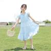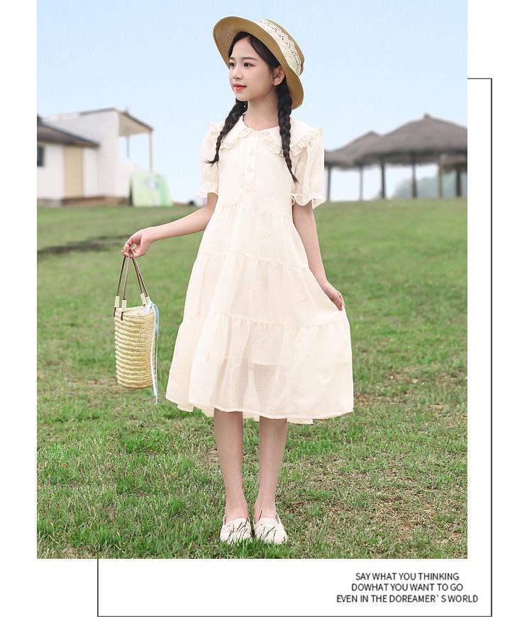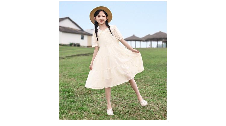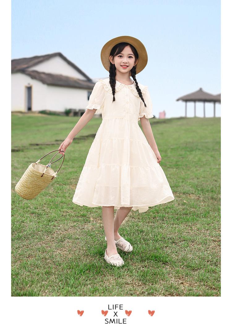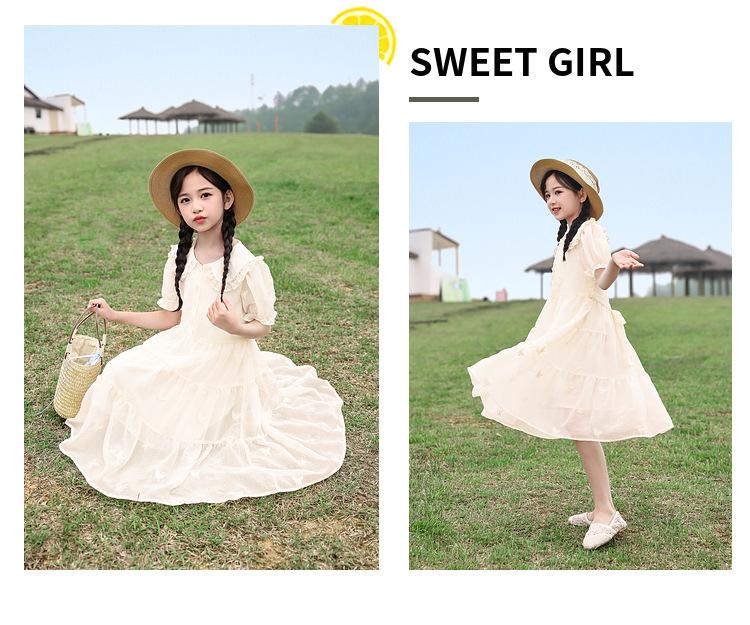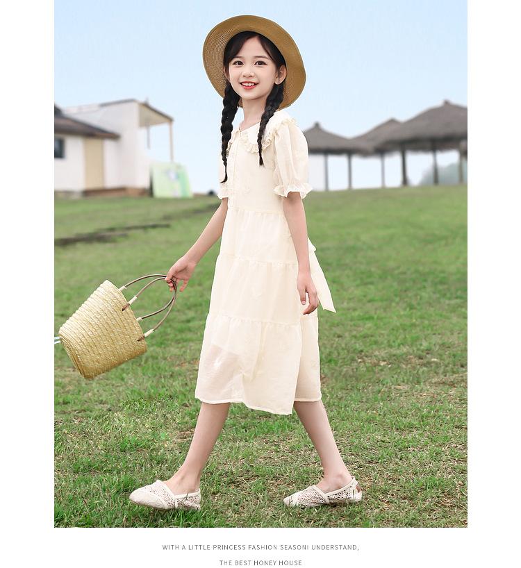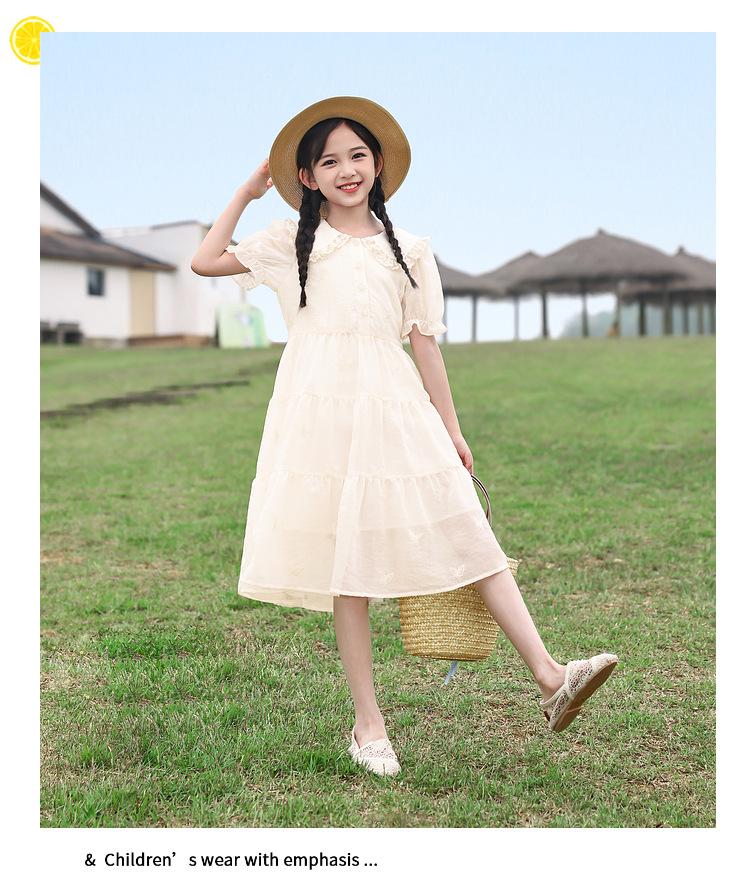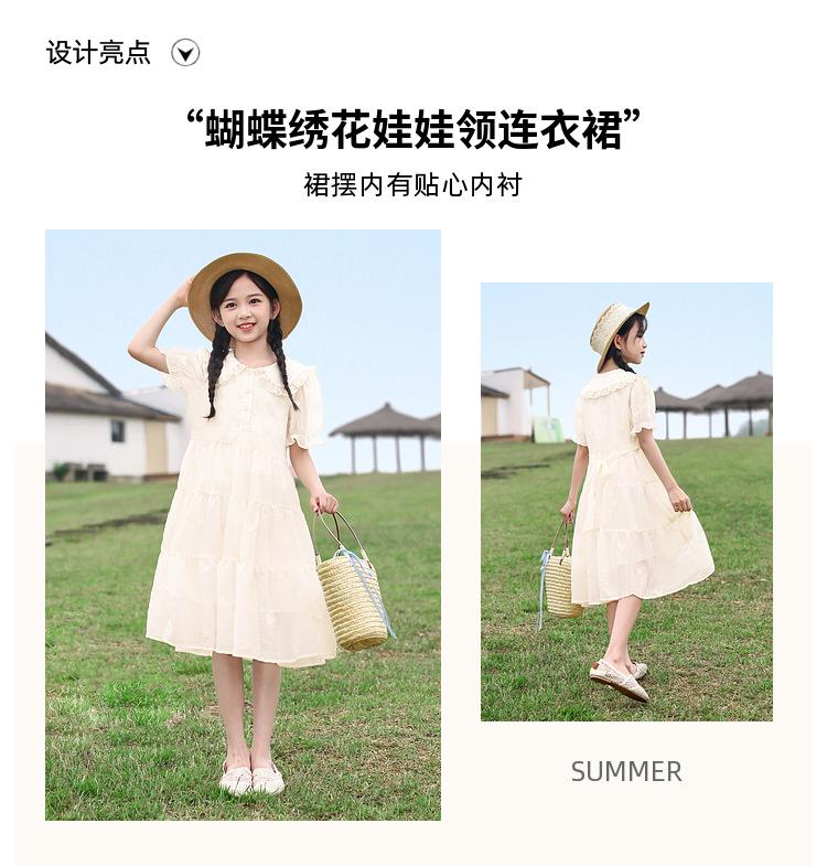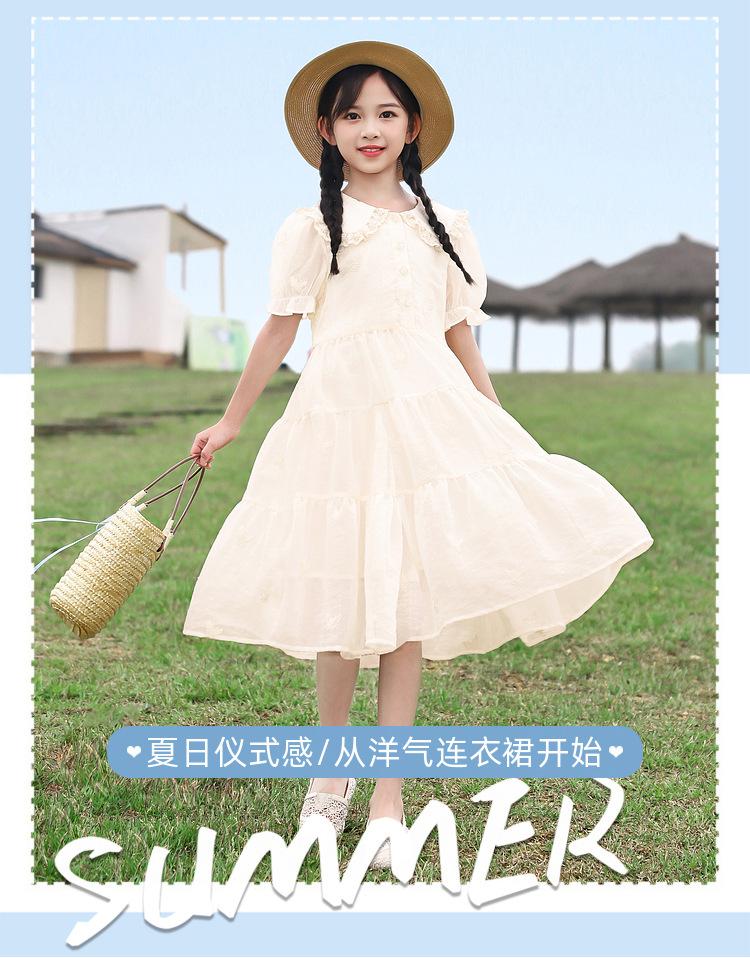 Vestido de Gasa para Niñas Vestido de Verano 2025 Nuevo Niños Grandes Verano Vestido de Princesa de Manga Corta para Niños Vestido de Niña a la Moda