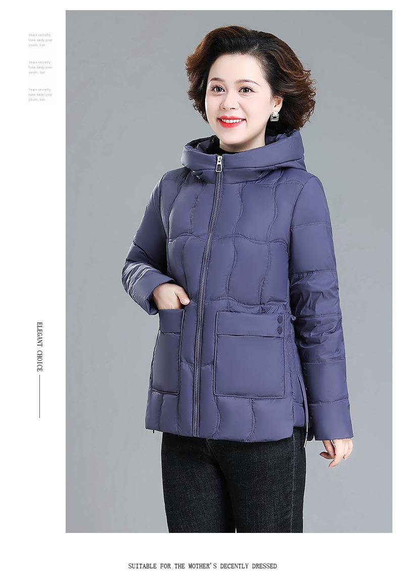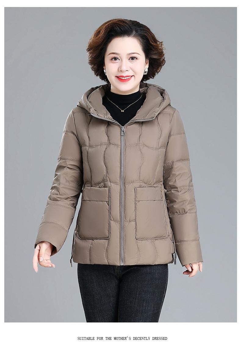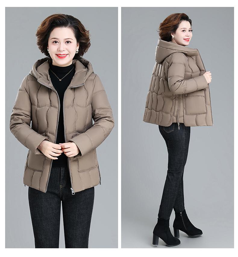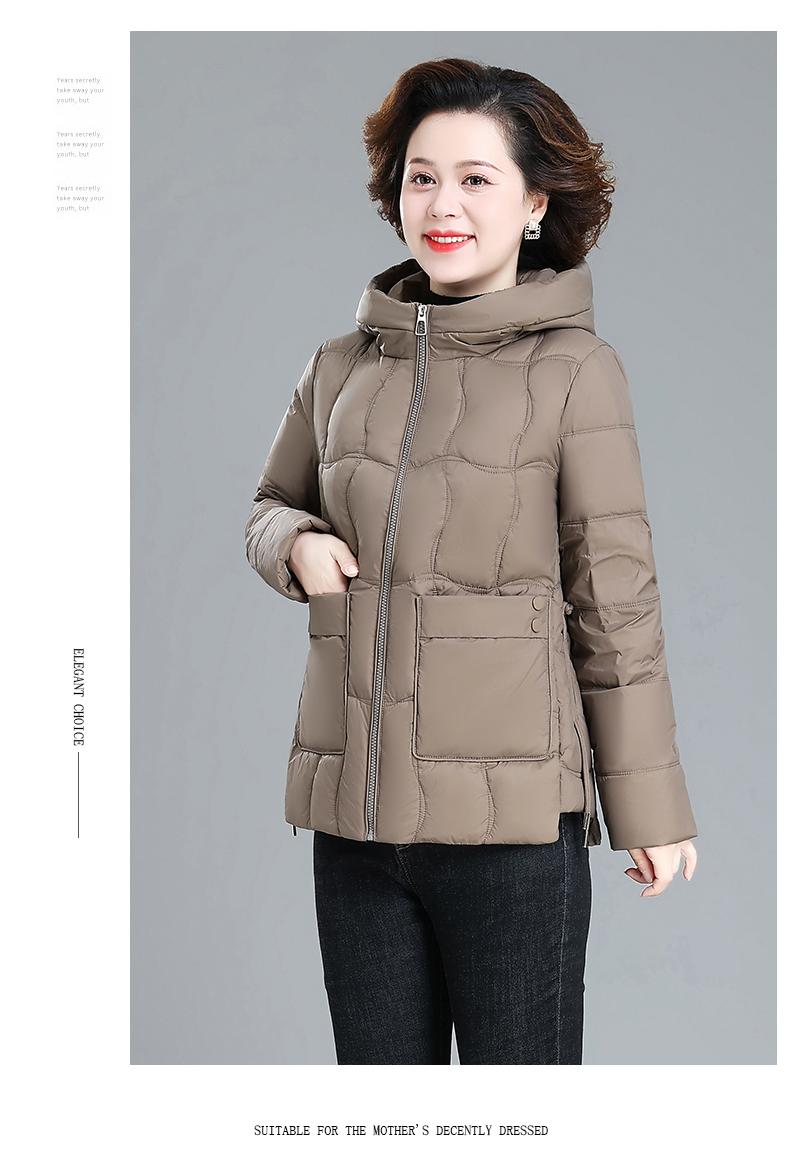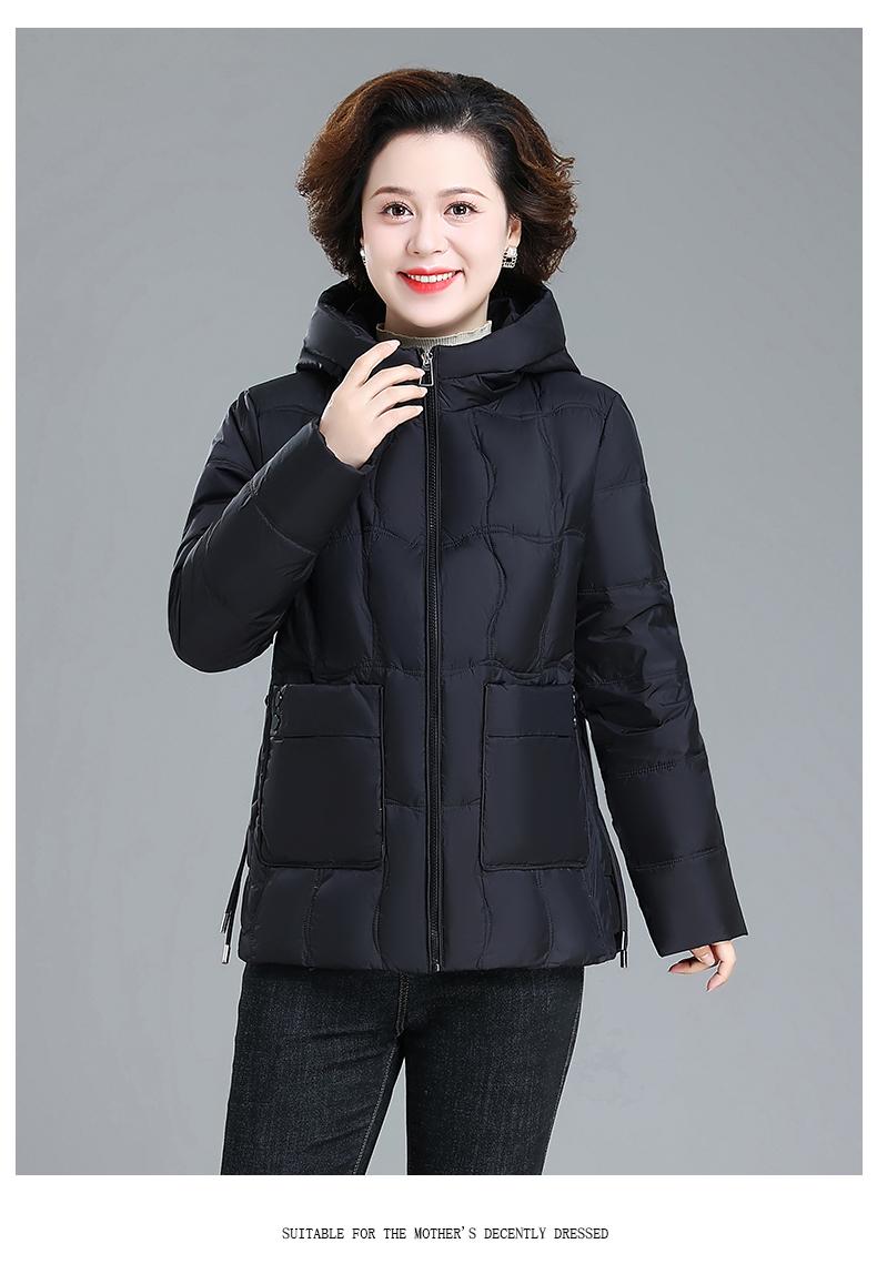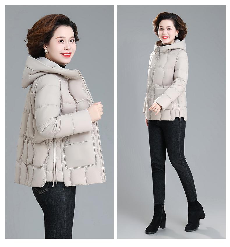 Chaqueta corta de plumón con capucha nueva para invierno 2024 para mujeres de mediana edad y mayores, estilo occidental, pequeña, para madre, abrigo cálido