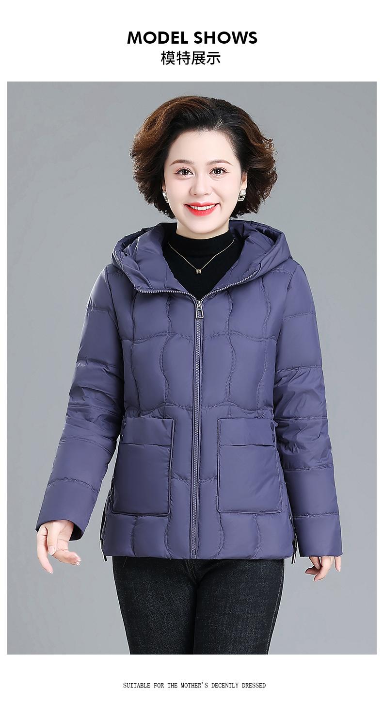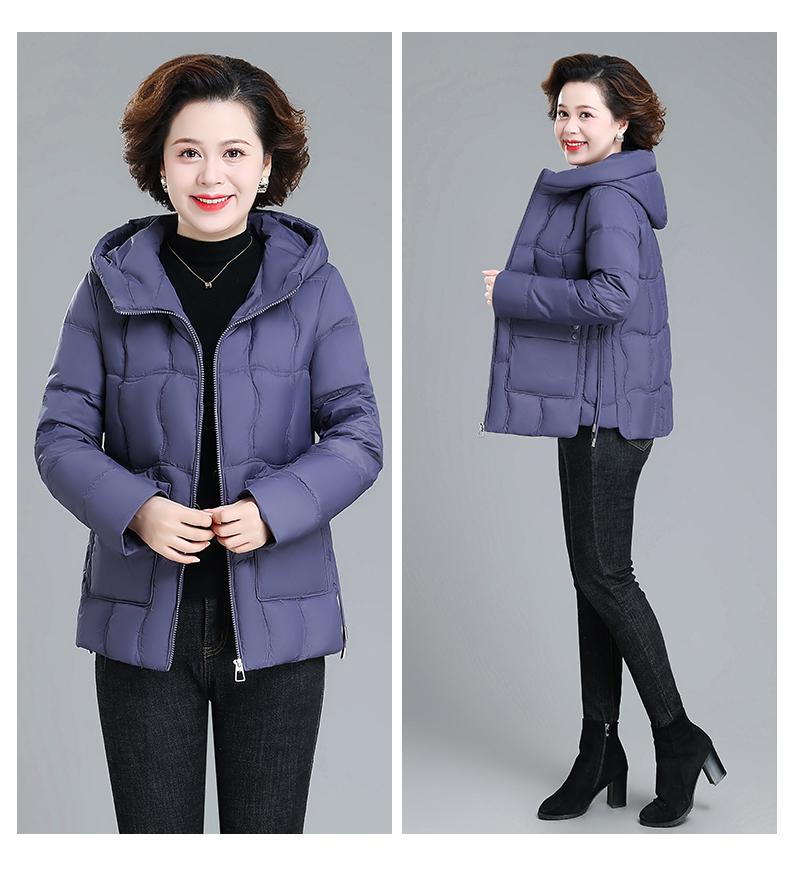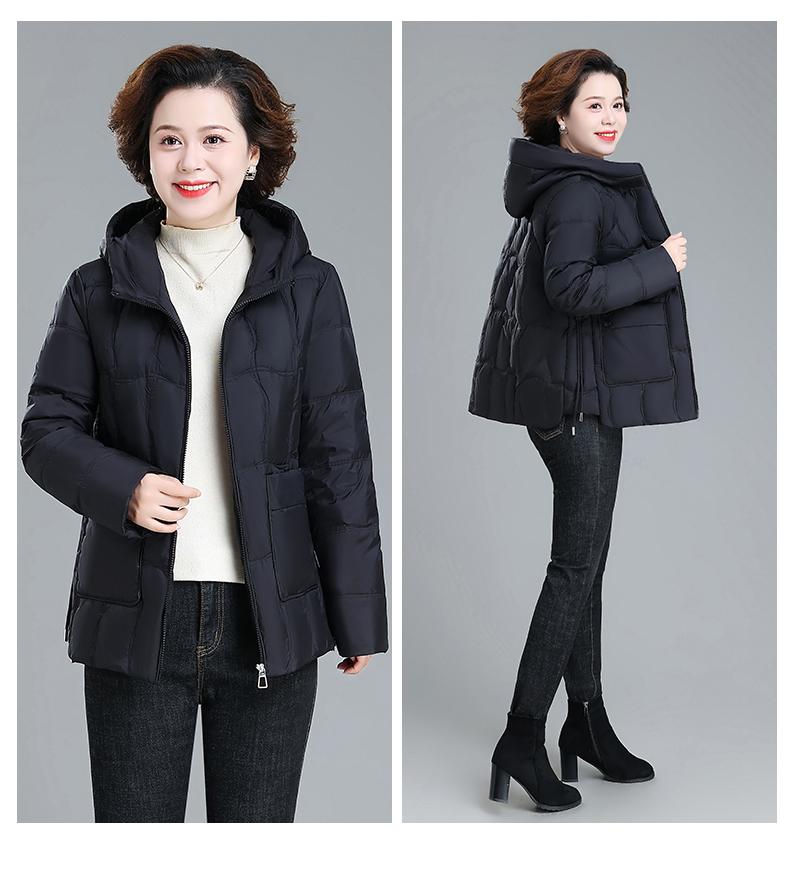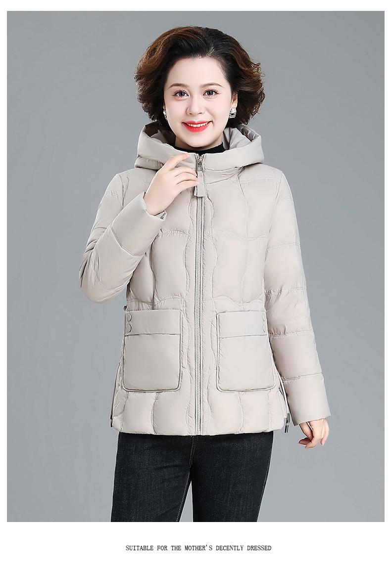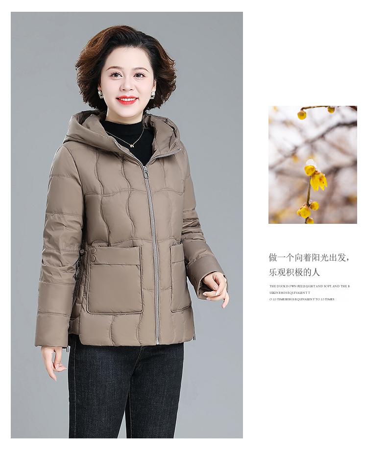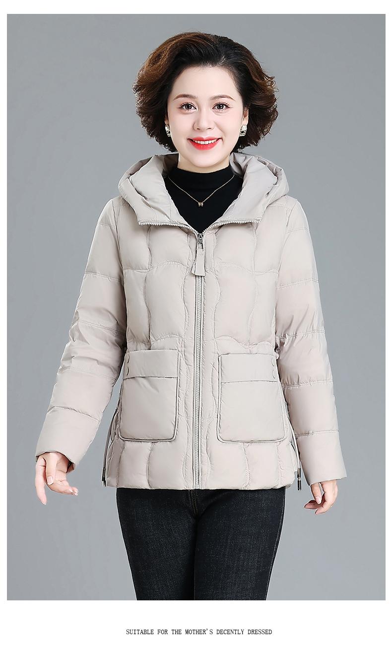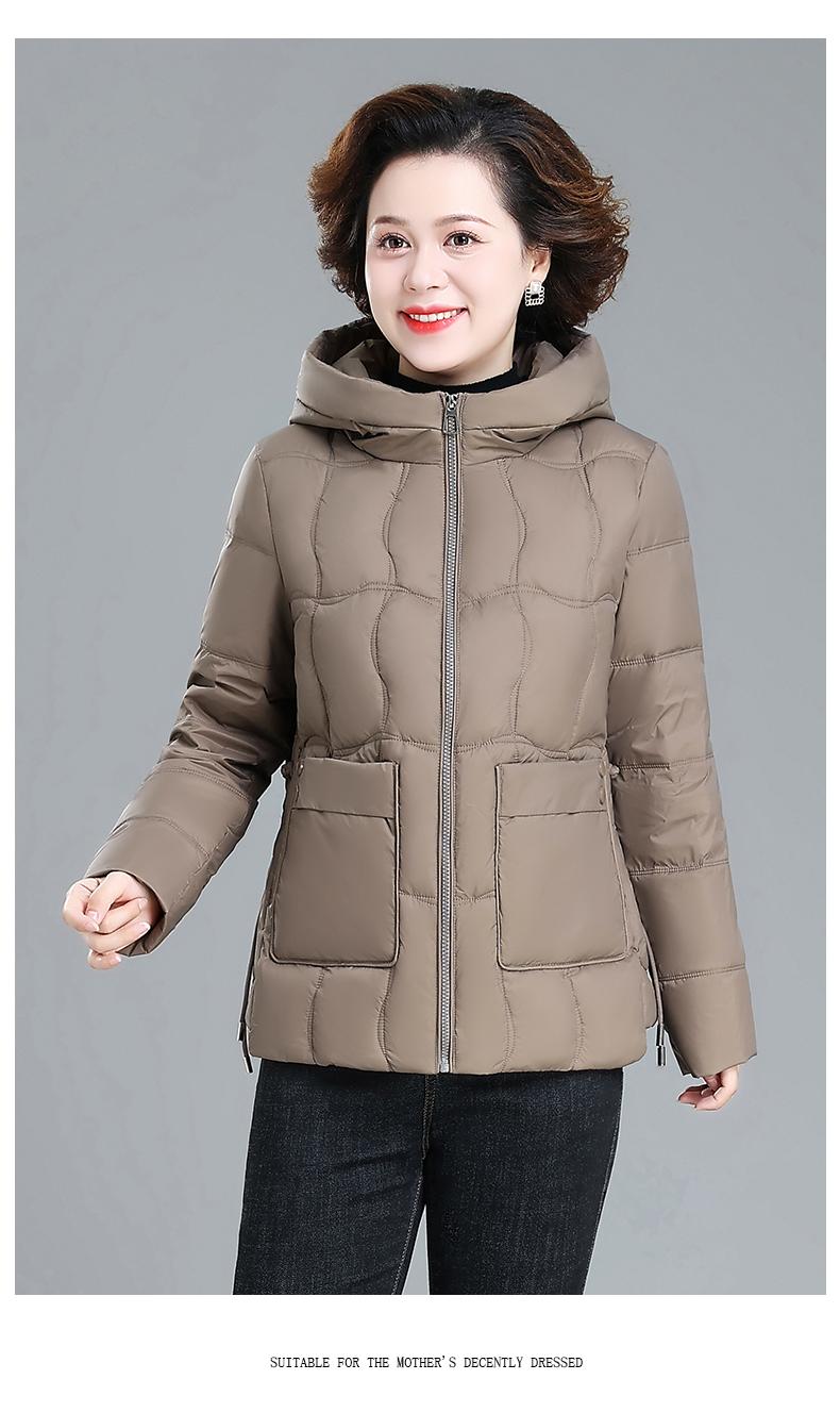Chaqueta corta de plumón con capucha nueva para invierno 2024 para mujeres de mediana edad y mayores, estilo occidental, pequeña, para madre, abrigo cálido