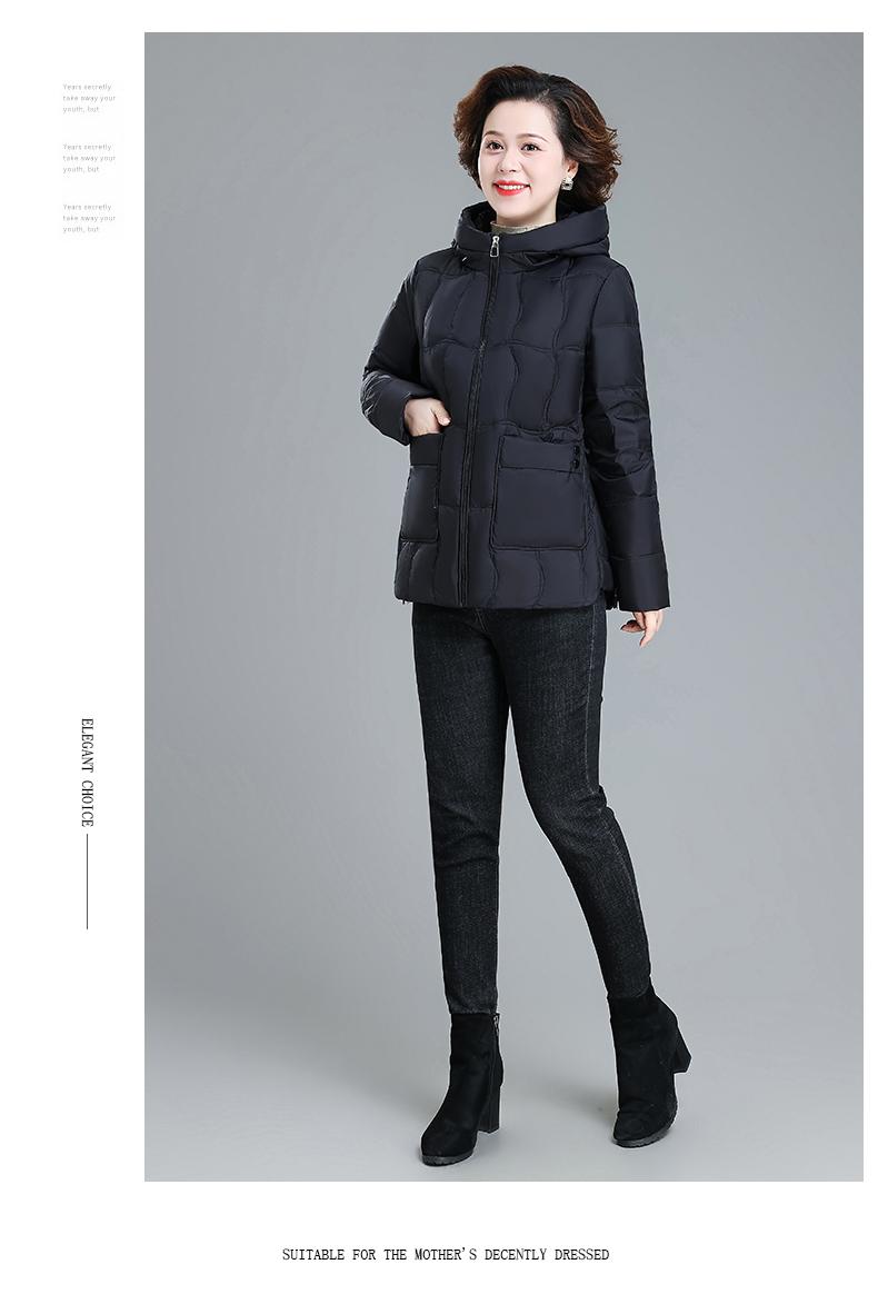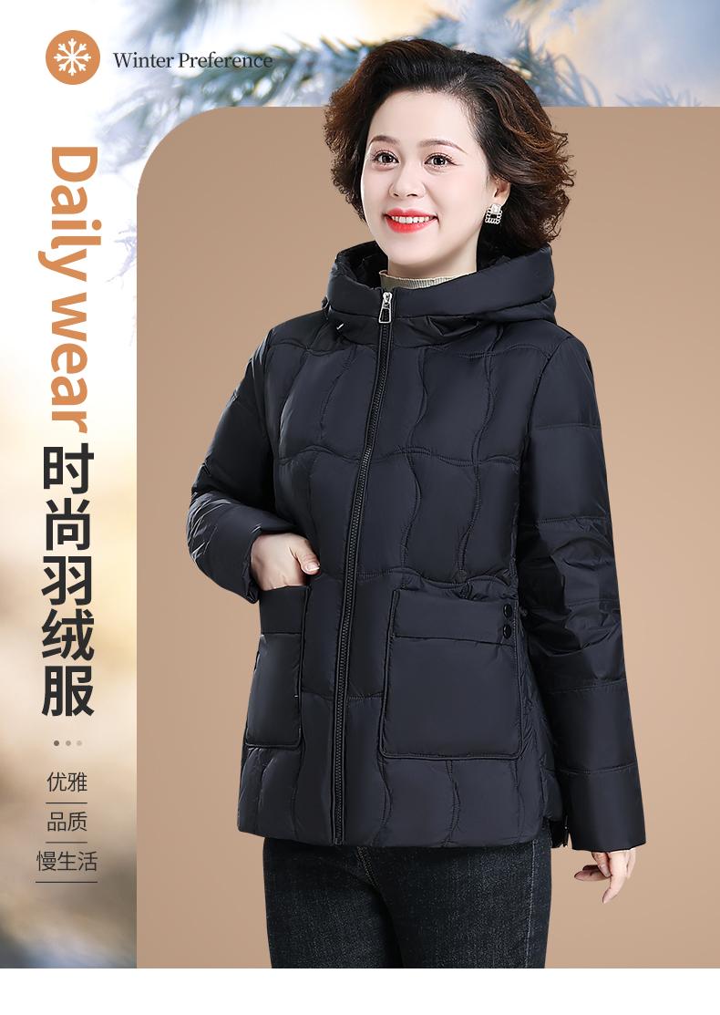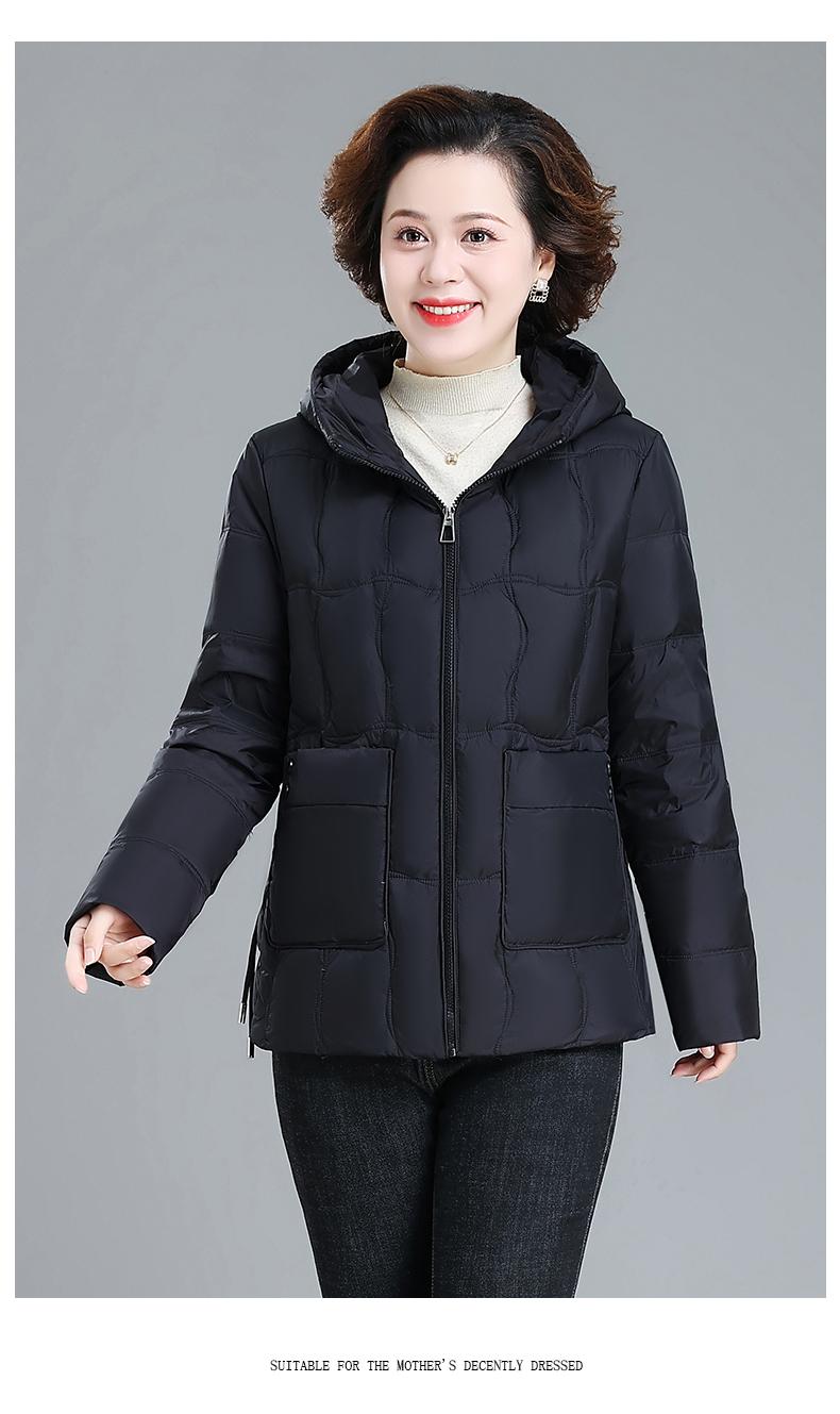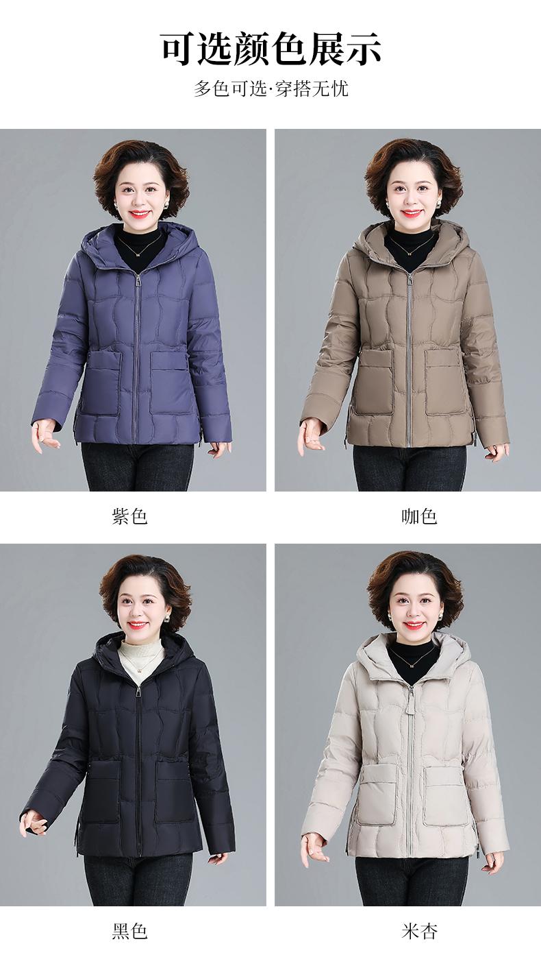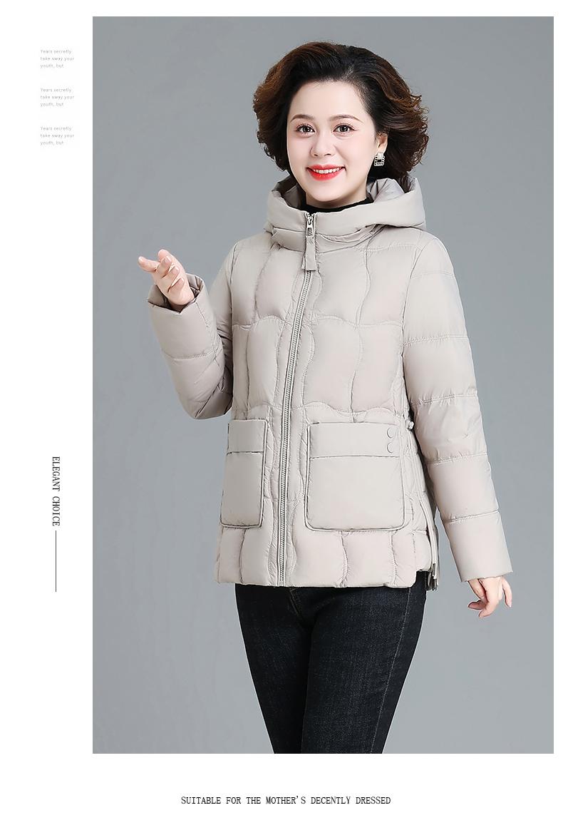 Chaqueta corta de plumón con capucha nueva para invierno 2024 para mujeres de mediana edad y mayores, estilo occidental, pequeña, para madre, abrigo cálido