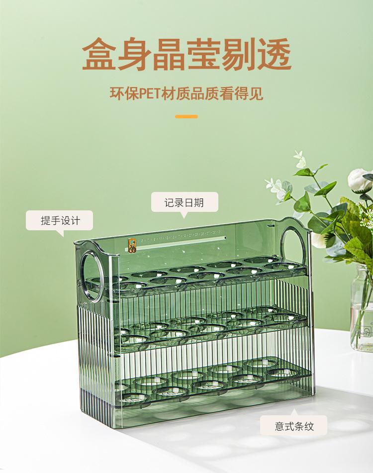 PP lujo ligero transparente puerta lateral de refrigerador abatible automático caja de huevos 30 compartimentos acabado en capas rejilla para huevos soporte para huevos frescos