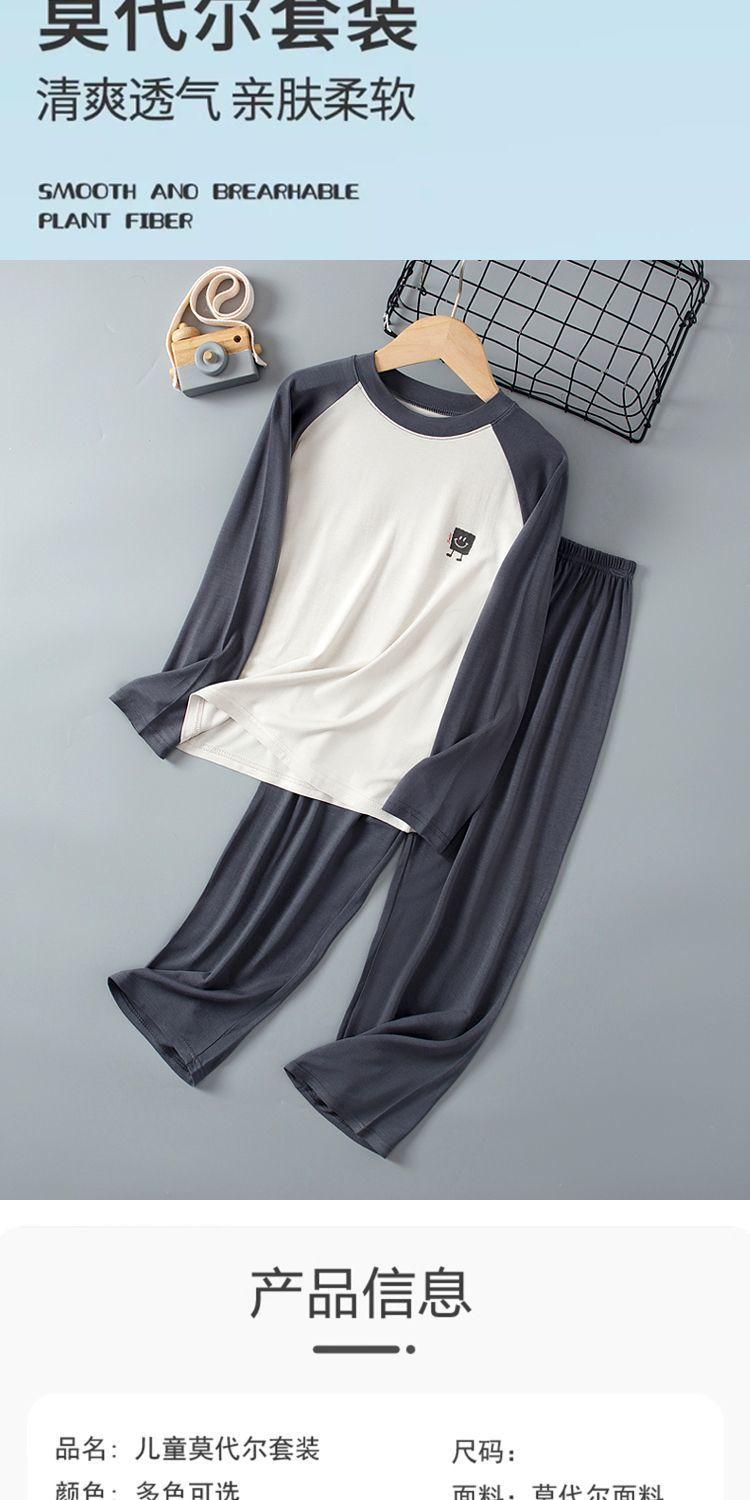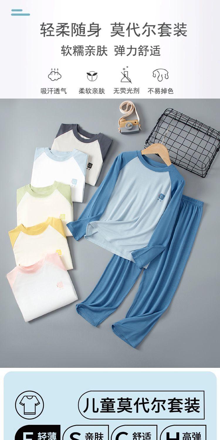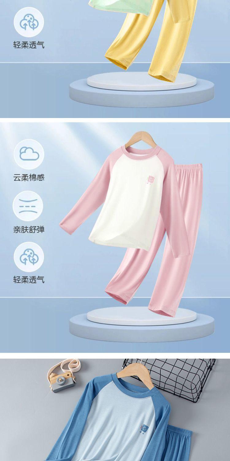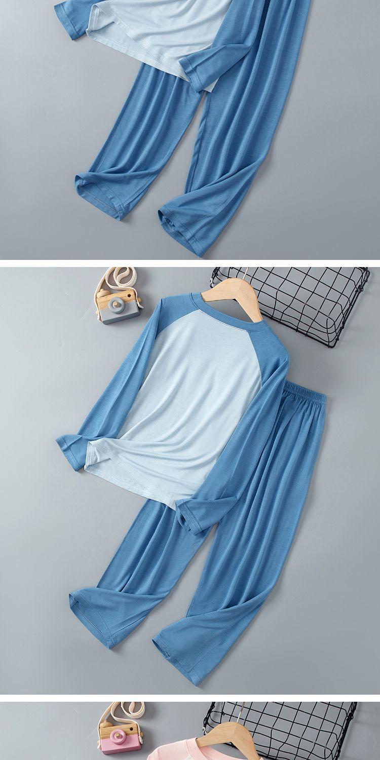 Pijama Fino de Modal de Manga Larga para Primavera y Verano para Niños y Niñas, Niños Medianos y Grandes, Ropa para el Hogar para Bebés y Niños, Acondicionado y Cómodo