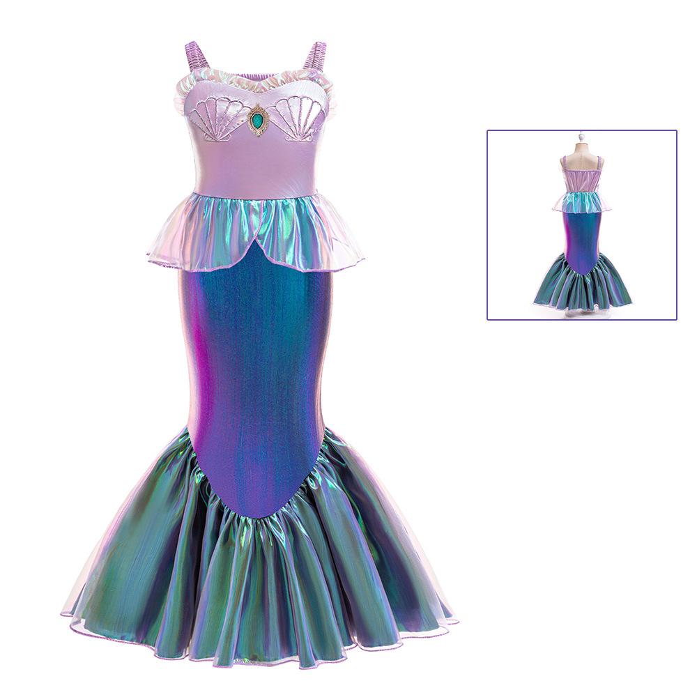 Vestido de princesa para niña, de comercio exterior, para cosplay, de sirena, con cola de pez, para fiesta