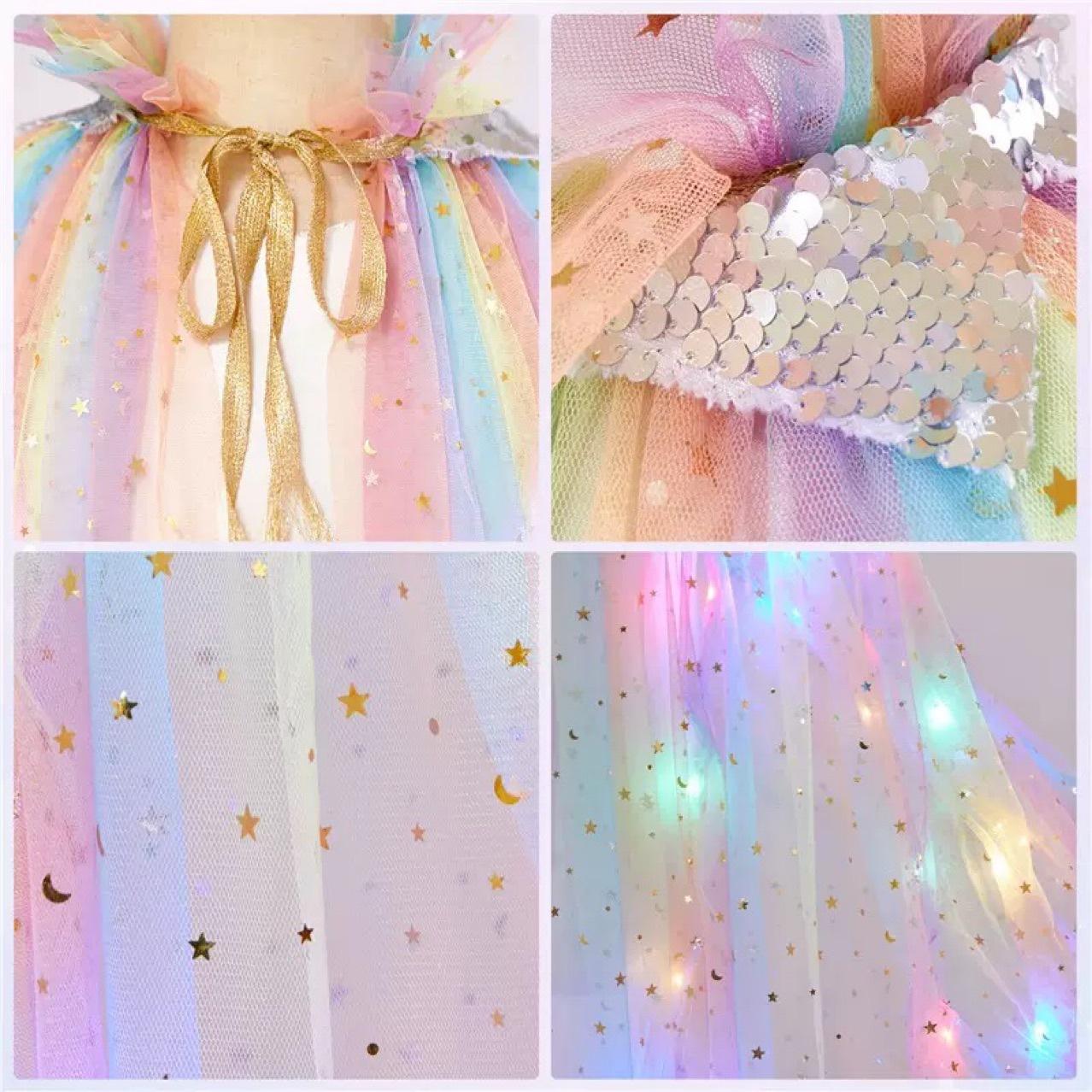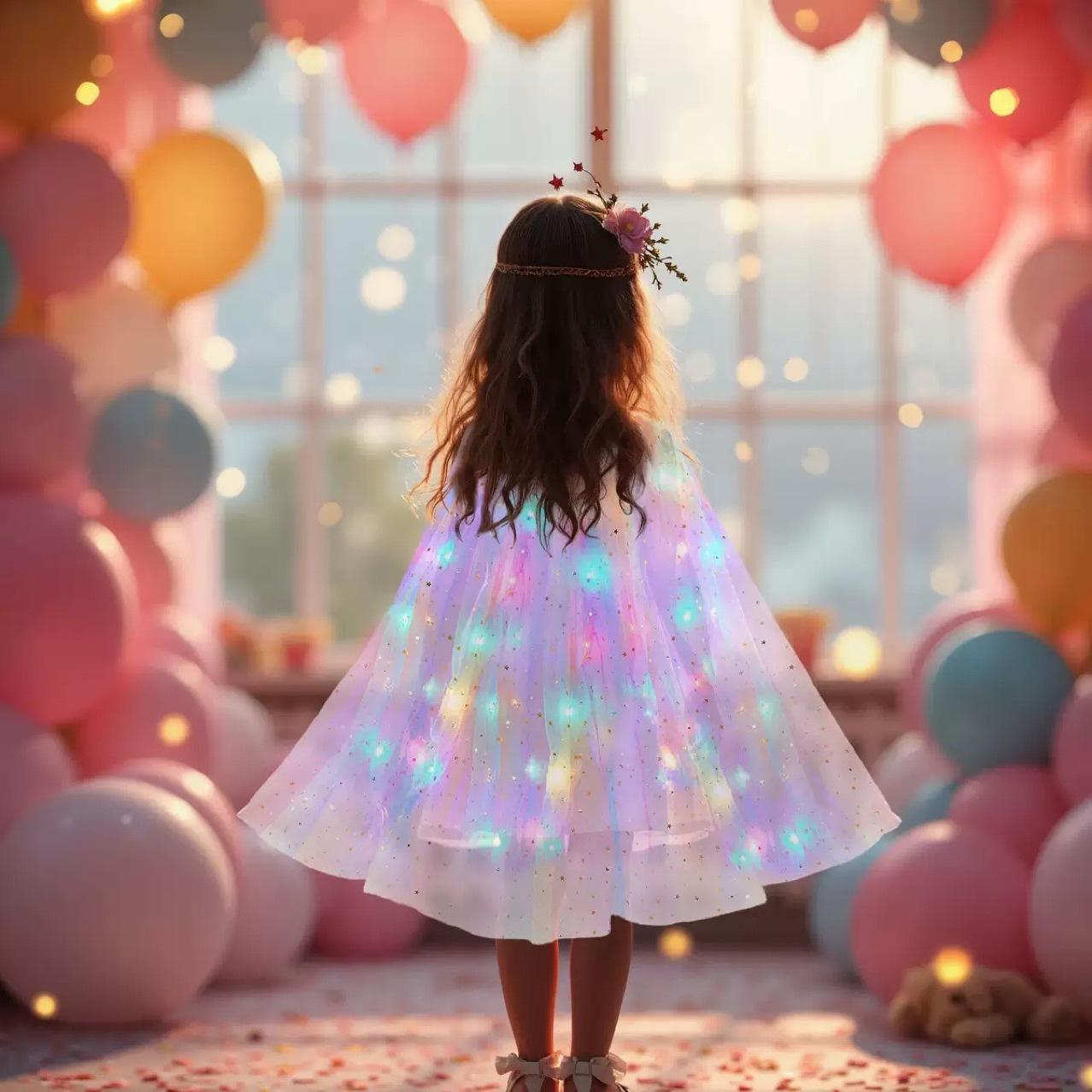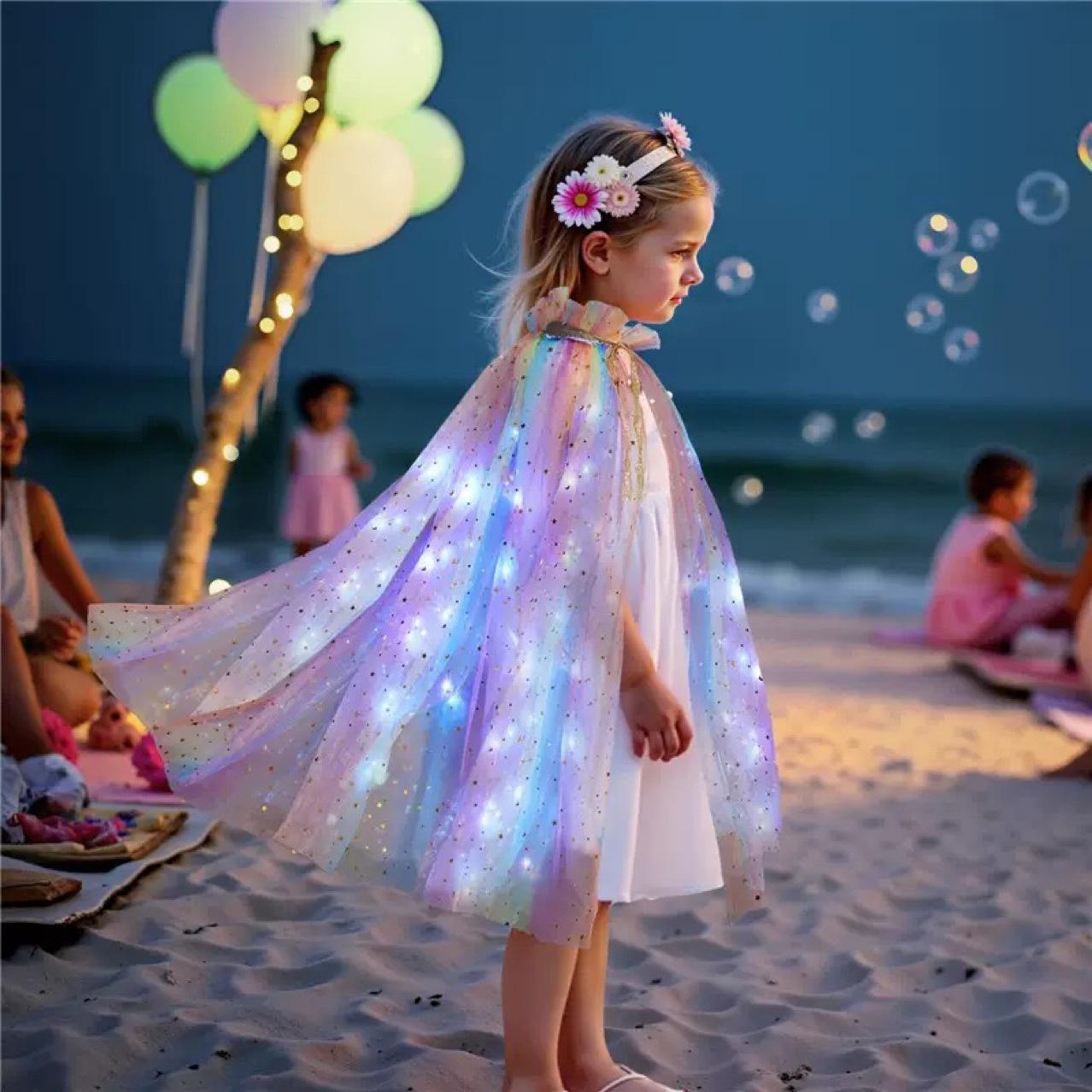 Día del Niño Disfraz para Actuación Fiesta Nocturna Disfraz de Fiesta Luz Led Luminoso Colorido Capa de Elsa Ligera Capa