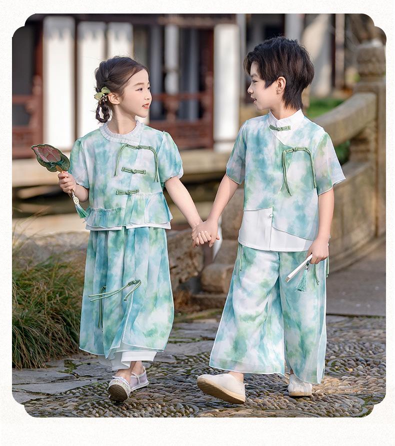 Traje Infantil Estilo Han Chino Nuevo Traje Estilo Han Chino para Niños y Niñas Traje de Verano Traje Antiguo Traje Tang Traje Chino para Actuación