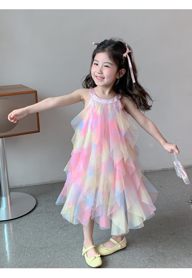 Vestido de niña Verano 2025 Nuevo Estilo Camisola de Bebé Vestido de Princesa Vestido de Malla de Verano para Niños
