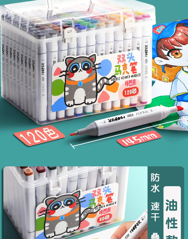 Plumones Lavables para Niños para Estudiantes de Primaria Plumones de Acuarela a Base de Agua 48 Colores 36 Colores 24 Set Colorido de Doble Punta Oleoso Hermoso